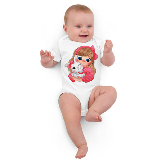 Girl Hugging Cute Bunny Bodysuit, No. 0050
