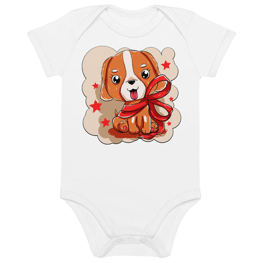 Cute Puppy Dog with Red Ribbon Bodysuit, No. 0374