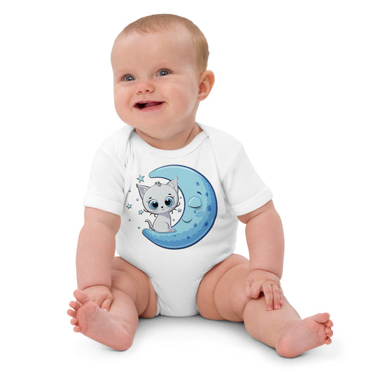 Funny Baby Cat Sitting on Moon Bodysuit, No. 0245