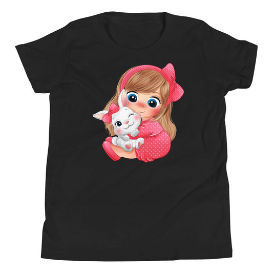 Girl Hugging Cute Bunny, T-shirts, No. 0050