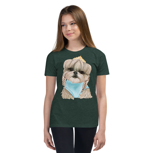 Adorable Dog with Hair Braids Crowns T-Shirt, No. 0563