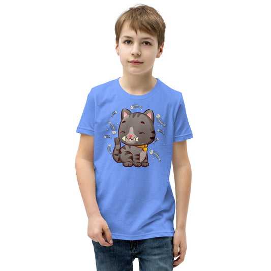 Cute Baby Cat Eating Fish Bone T-Shirt, No. 0138