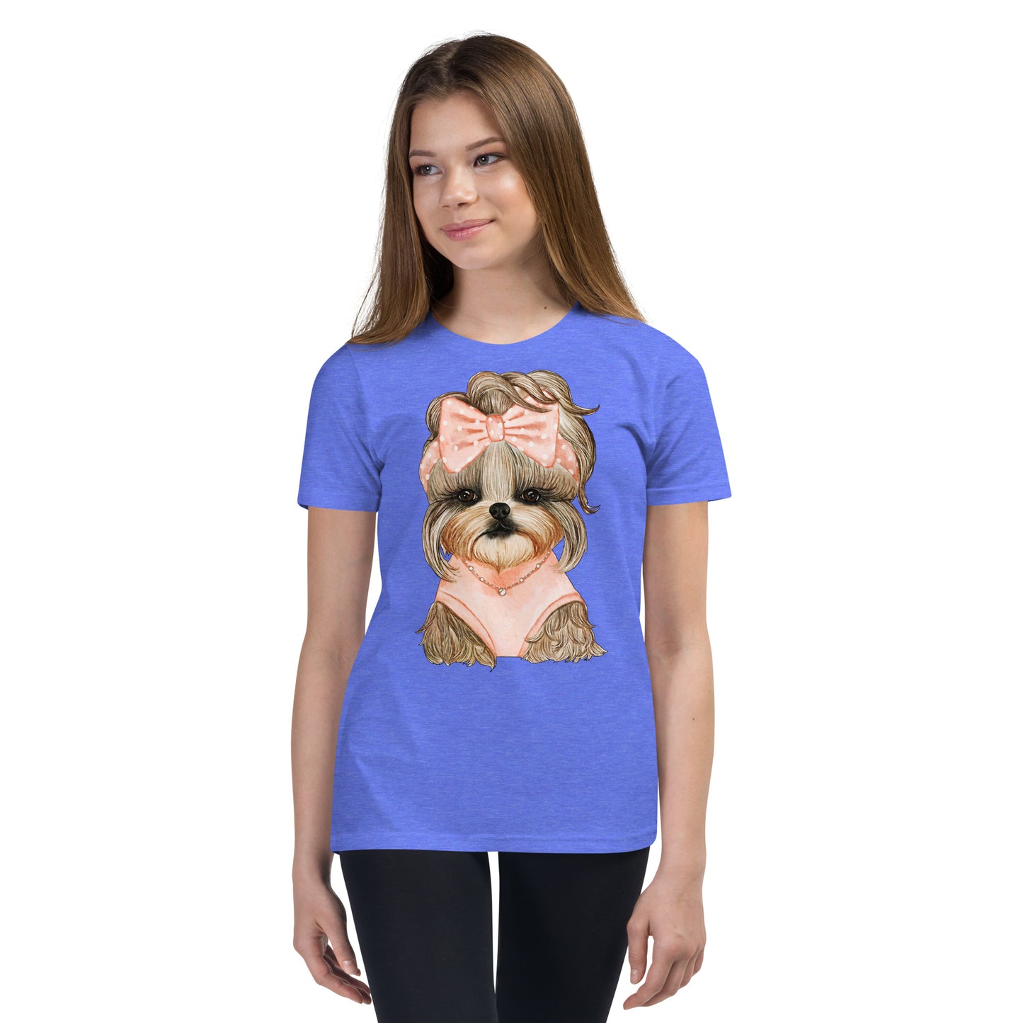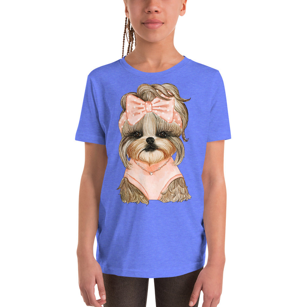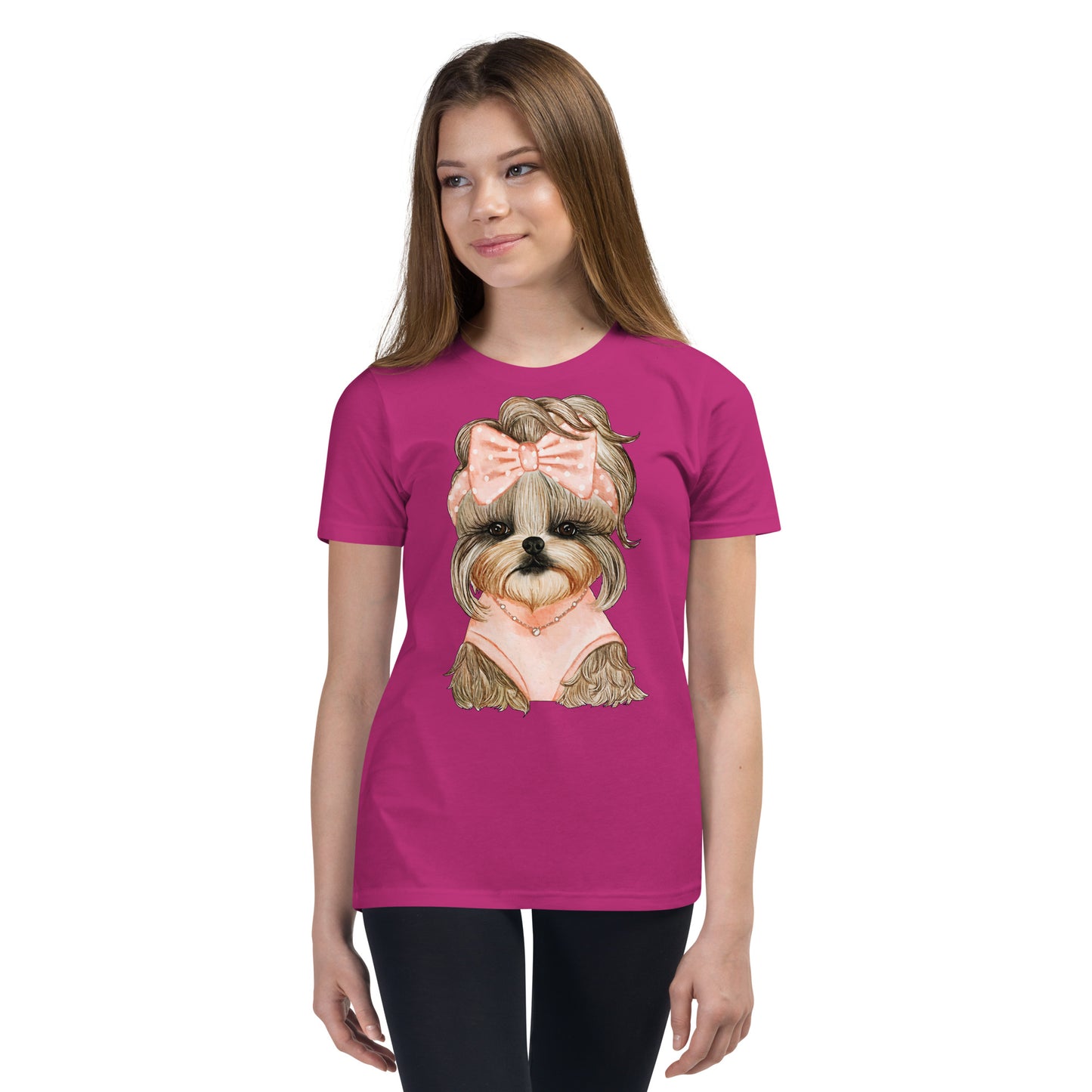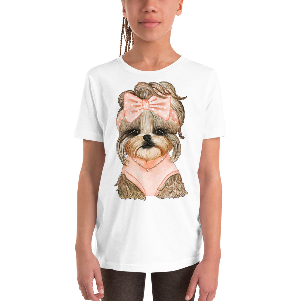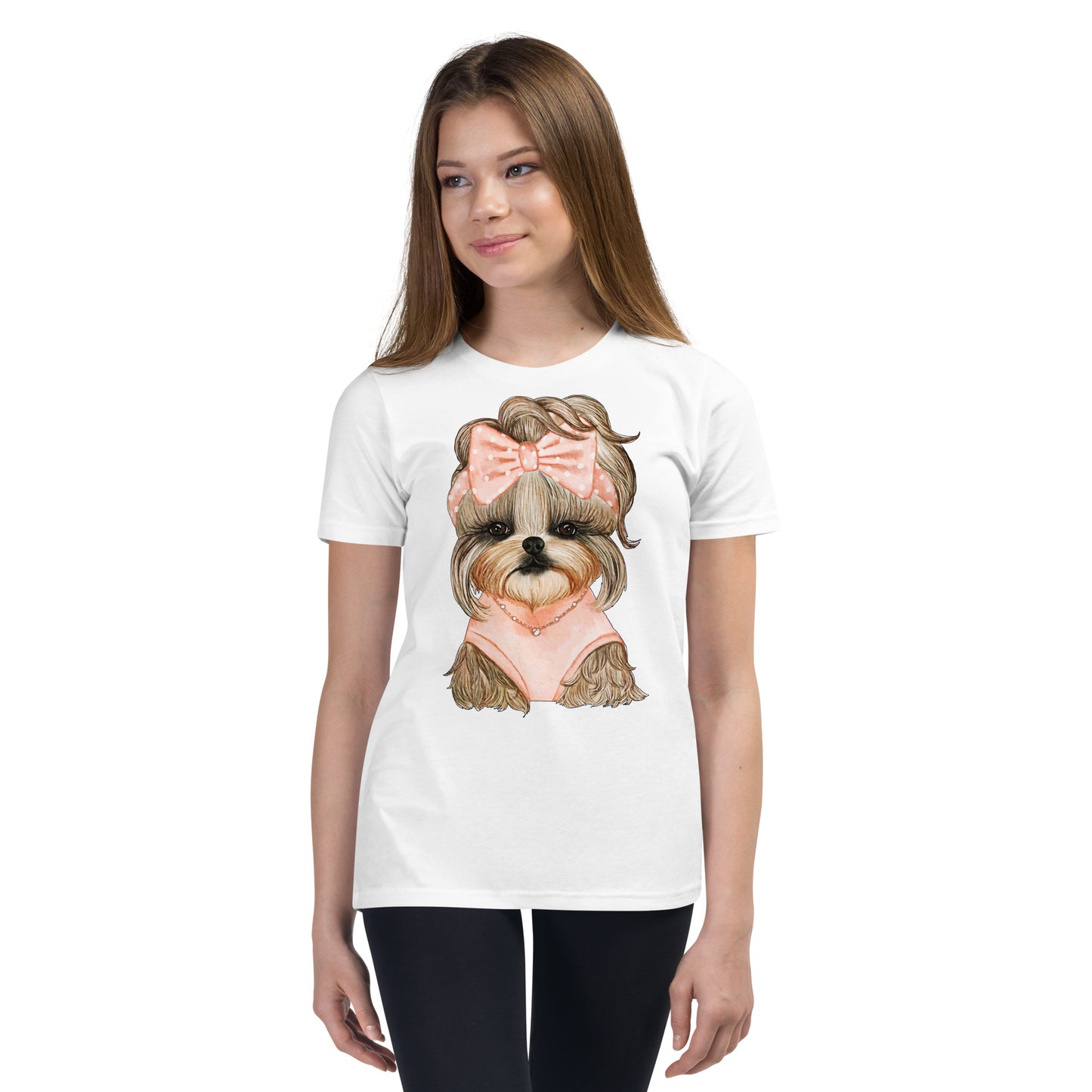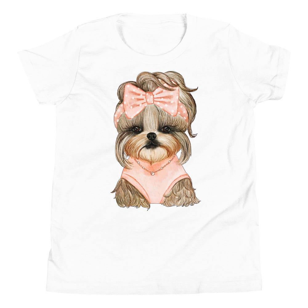 Adorable Dog with Cute Hair Ribbon T-shirt, No. 0561