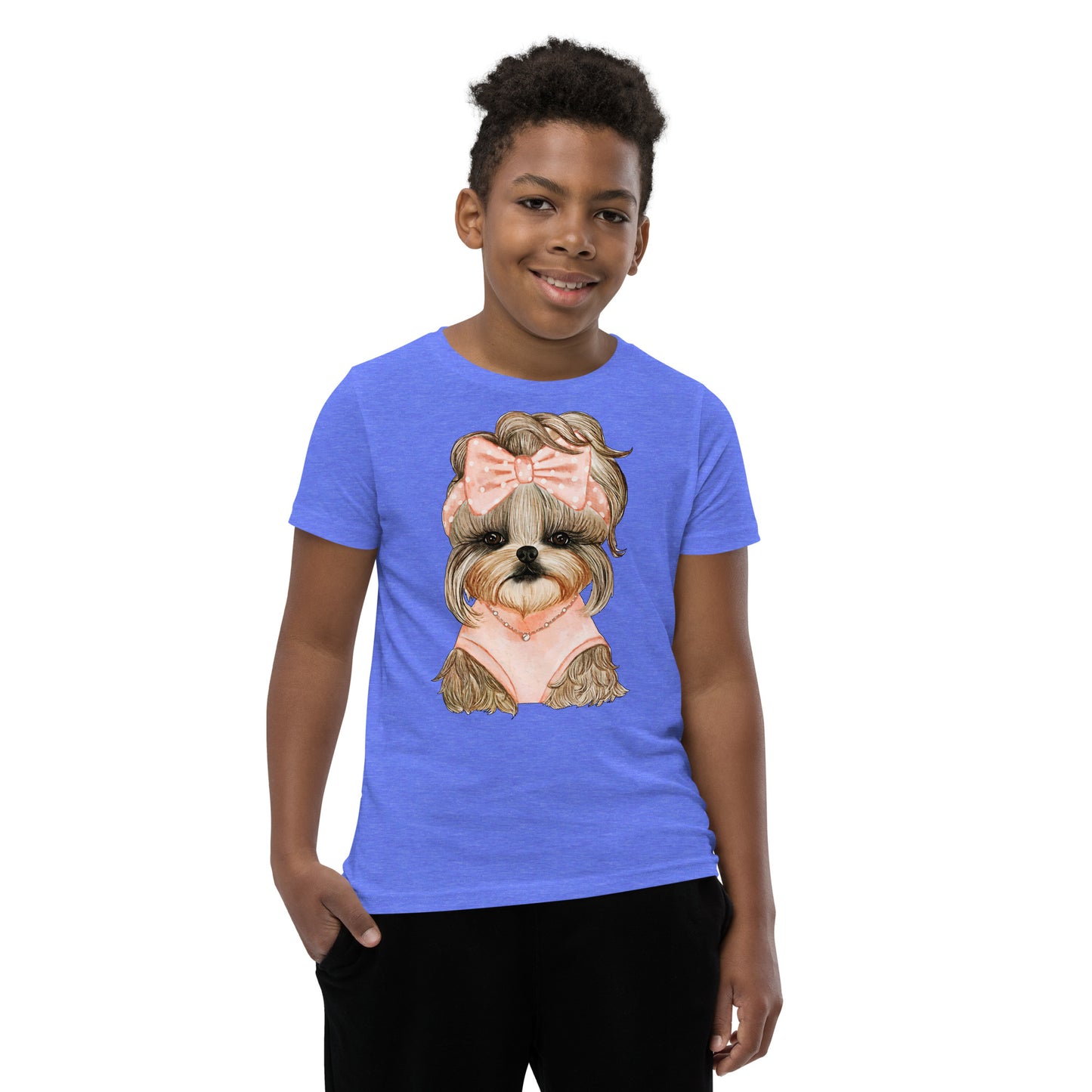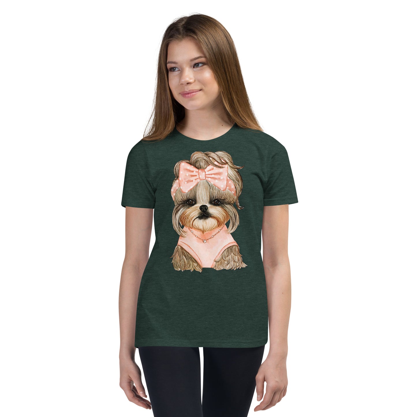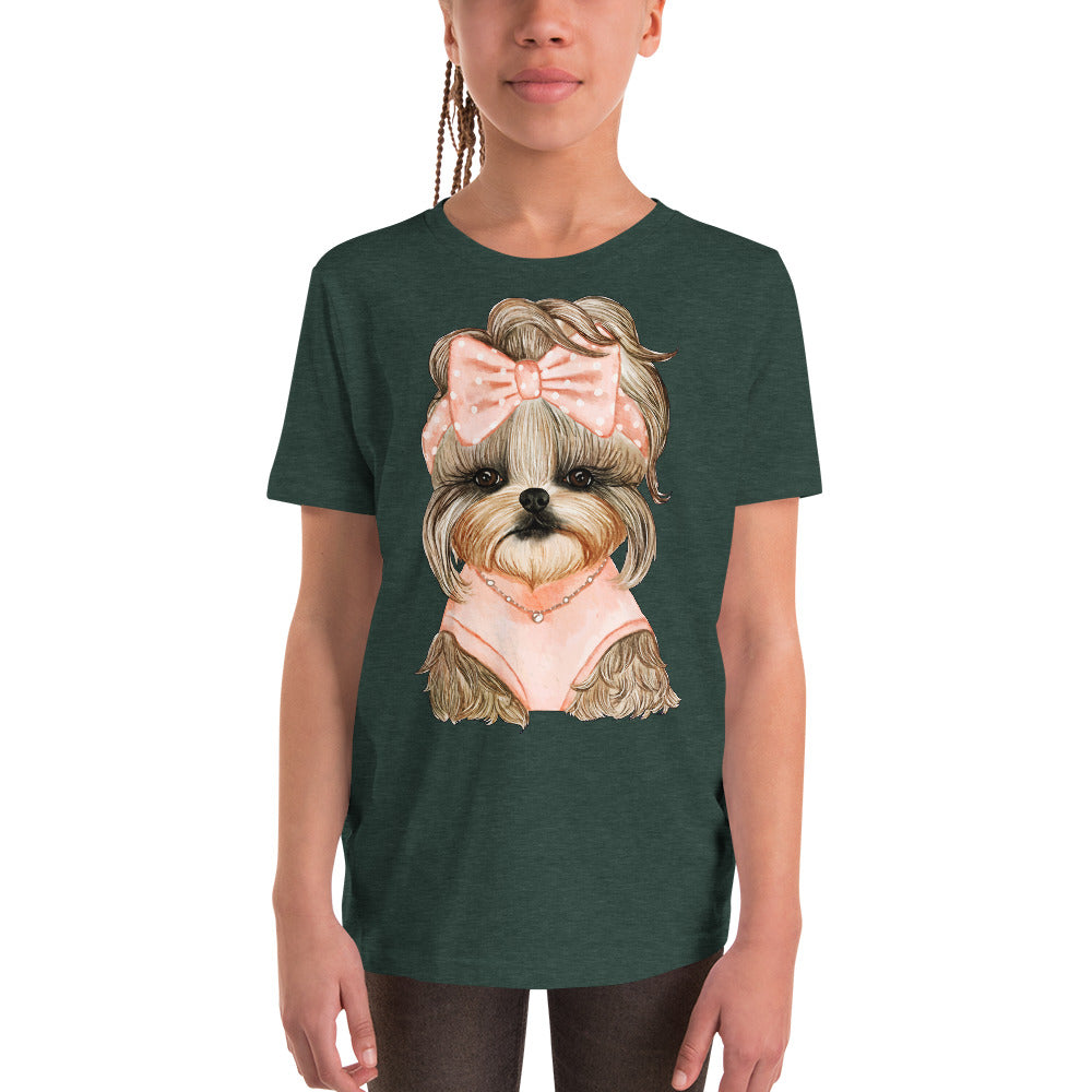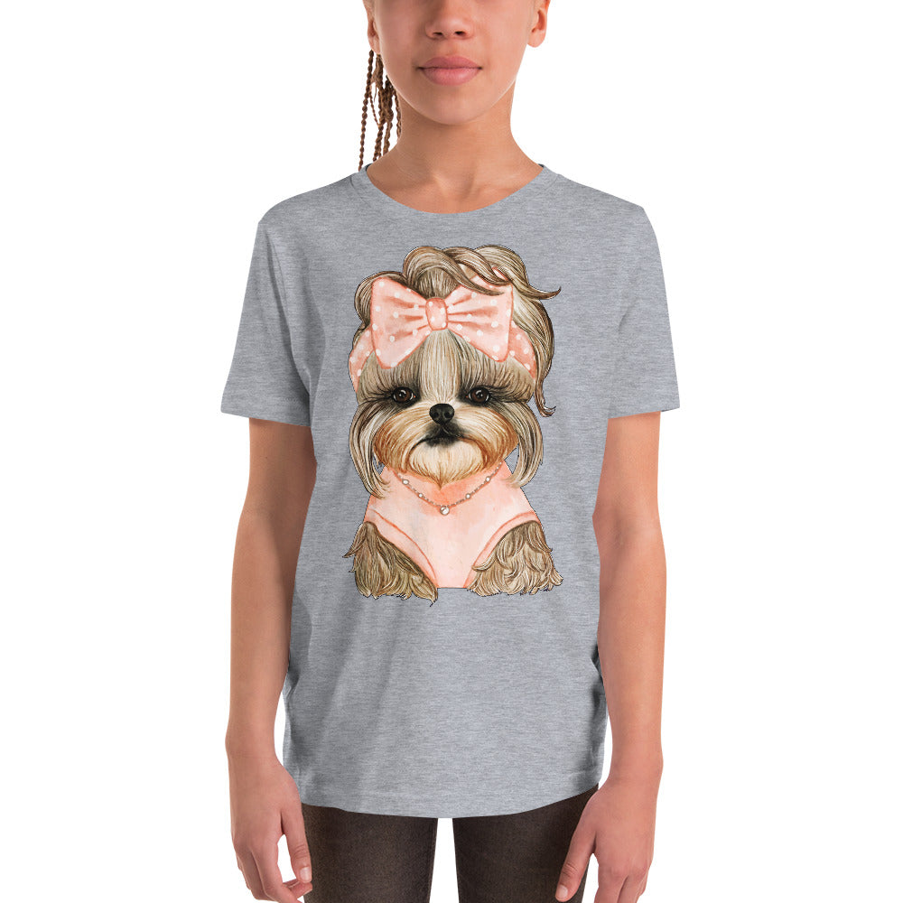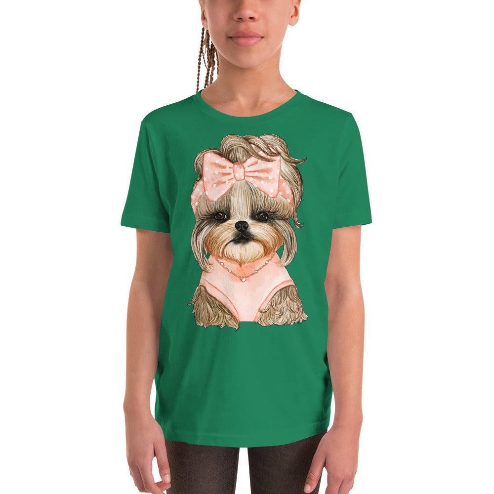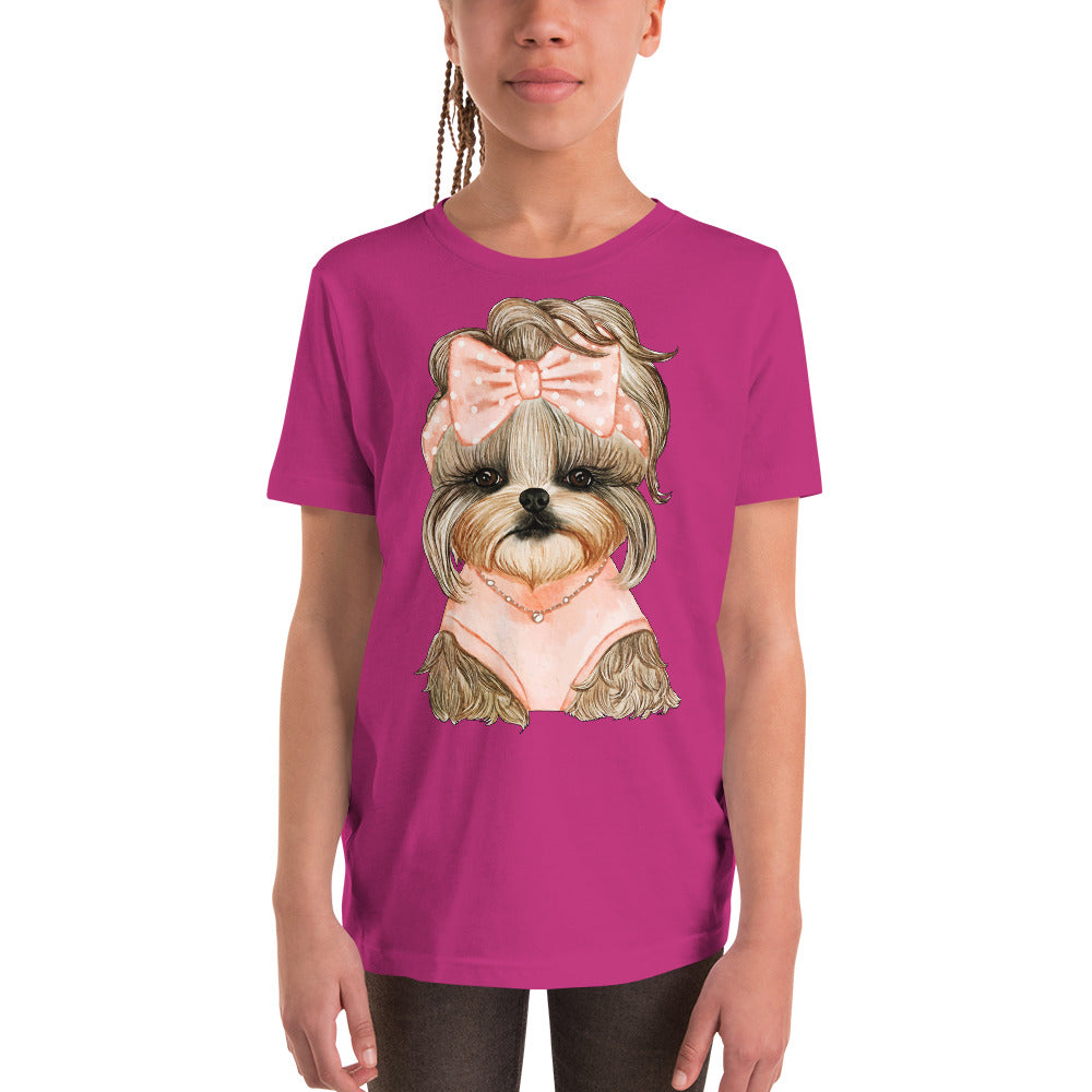 Adorable Dog with Cute Hair Ribbon T-shirt, No. 0561