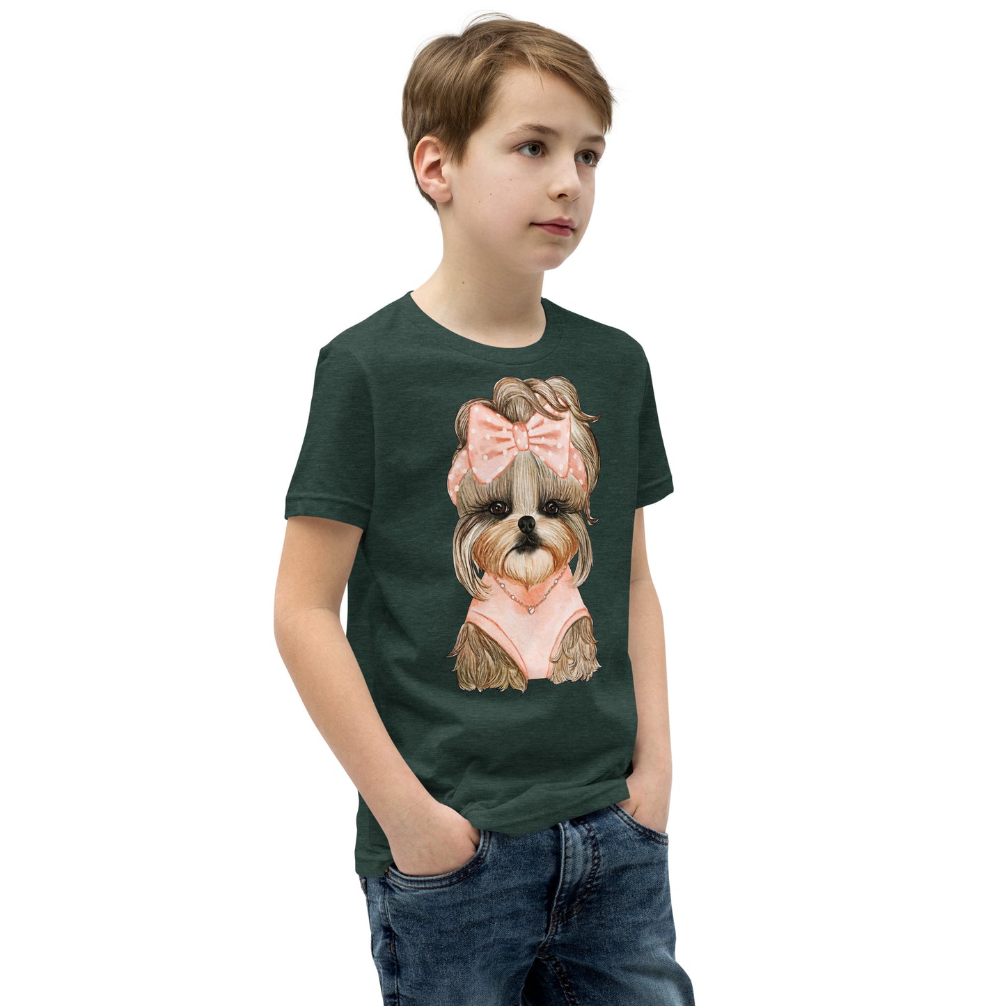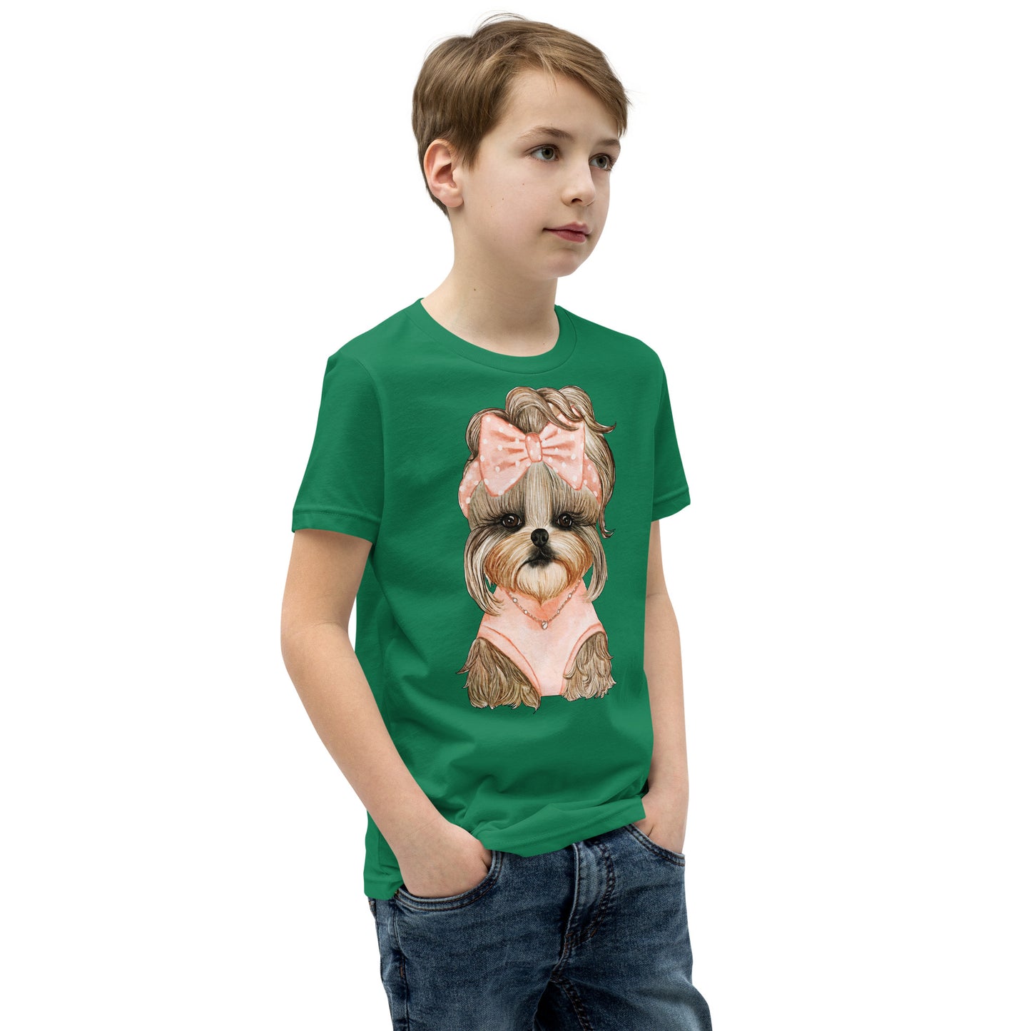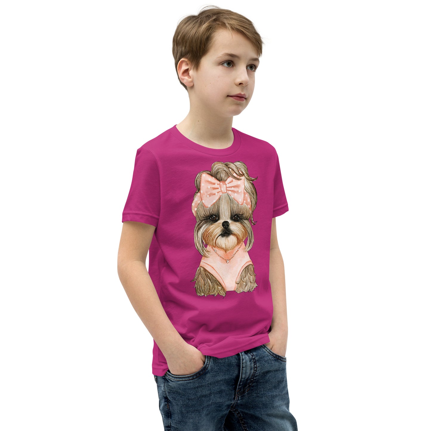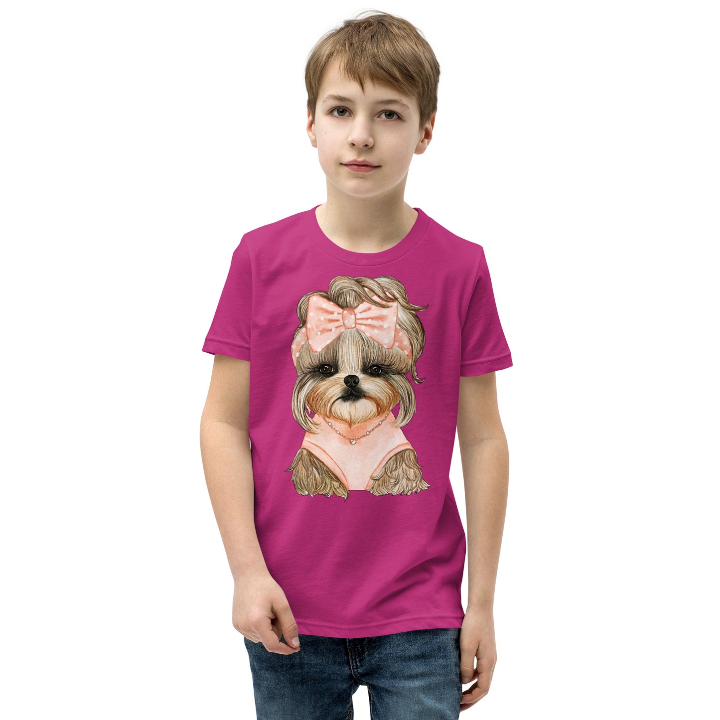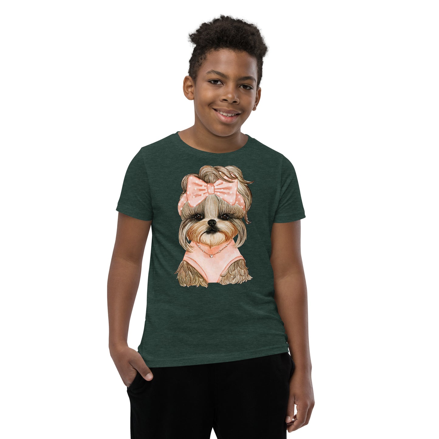 Adorable Dog with Cute Hair Ribbon T-shirt, No. 0561