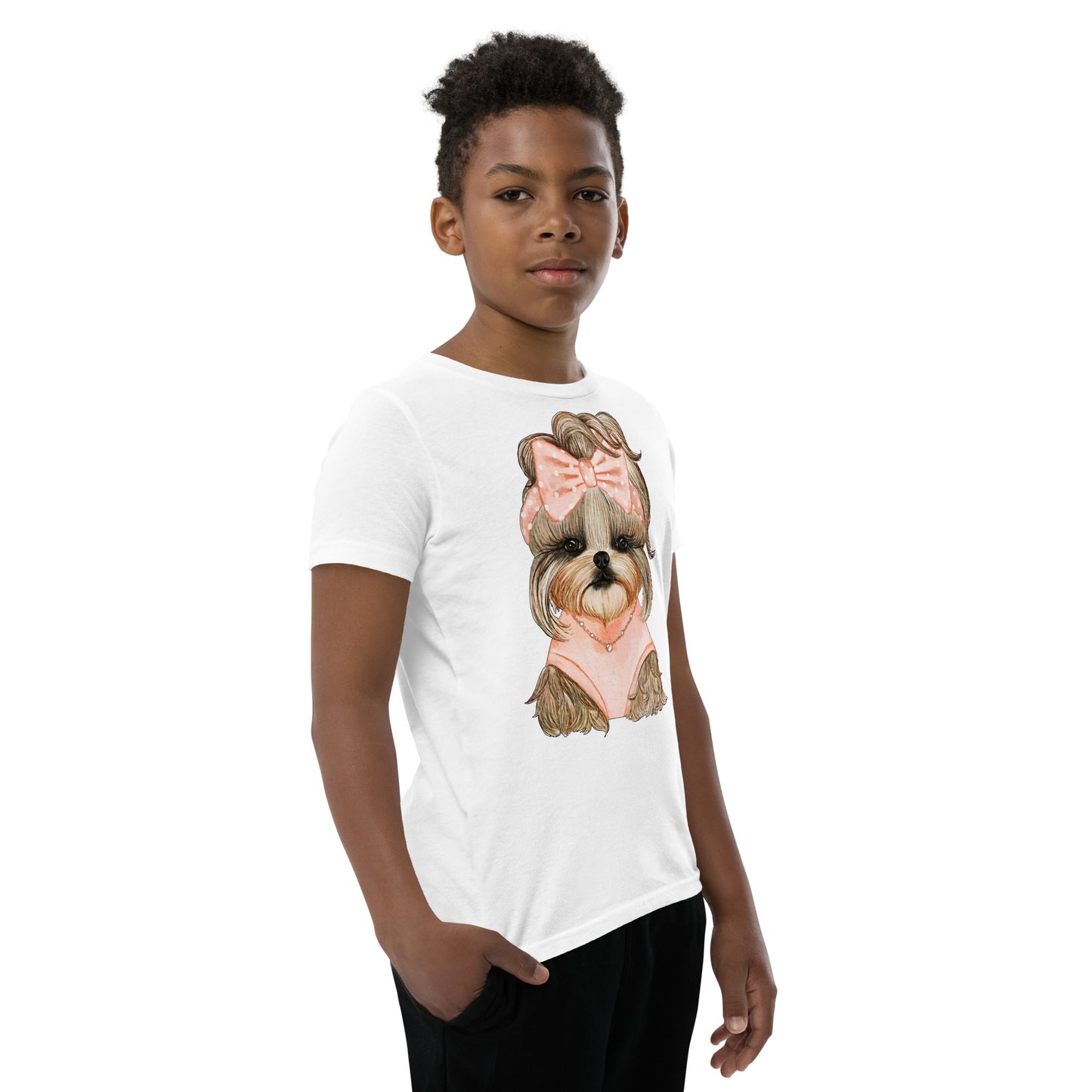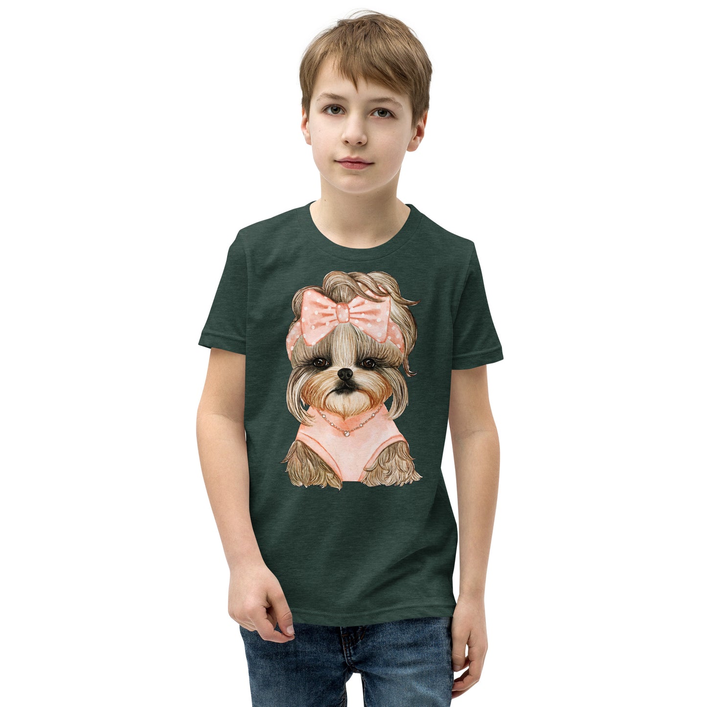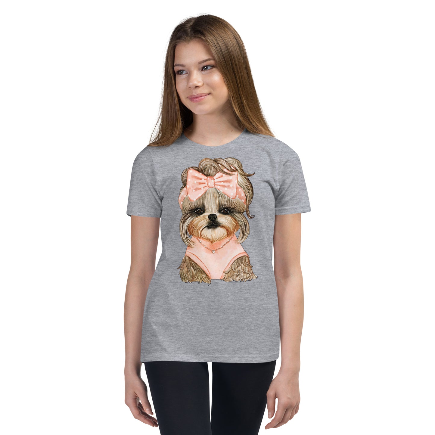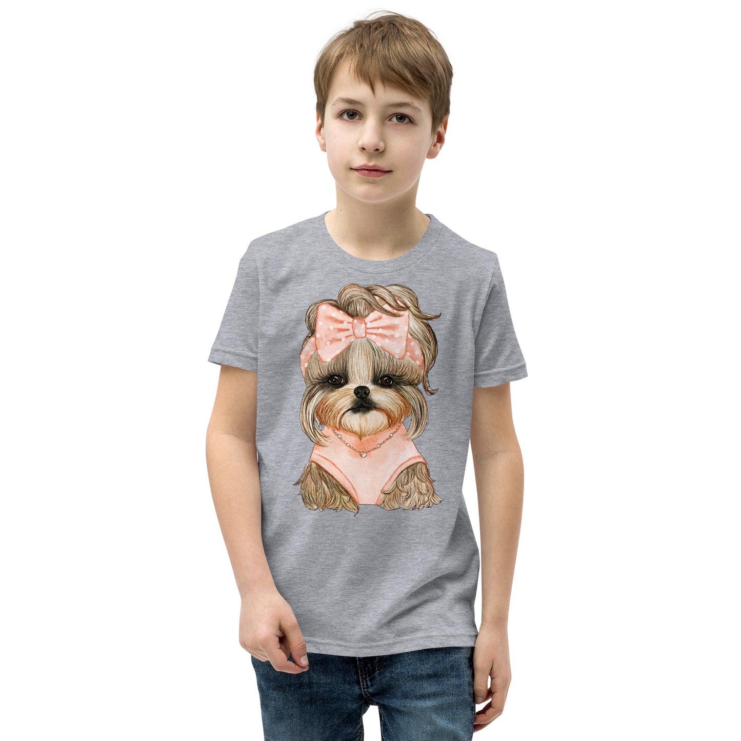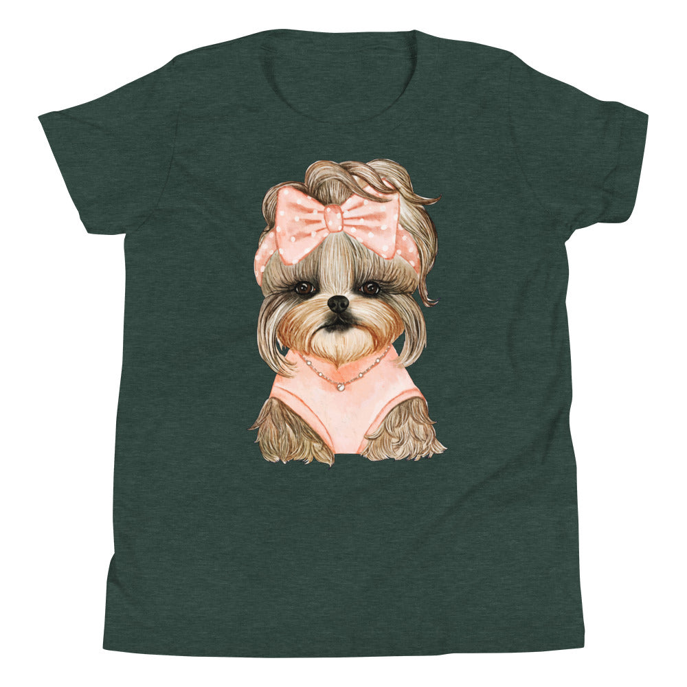 Adorable Dog with Cute Hair Ribbon T-shirt, No. 0561