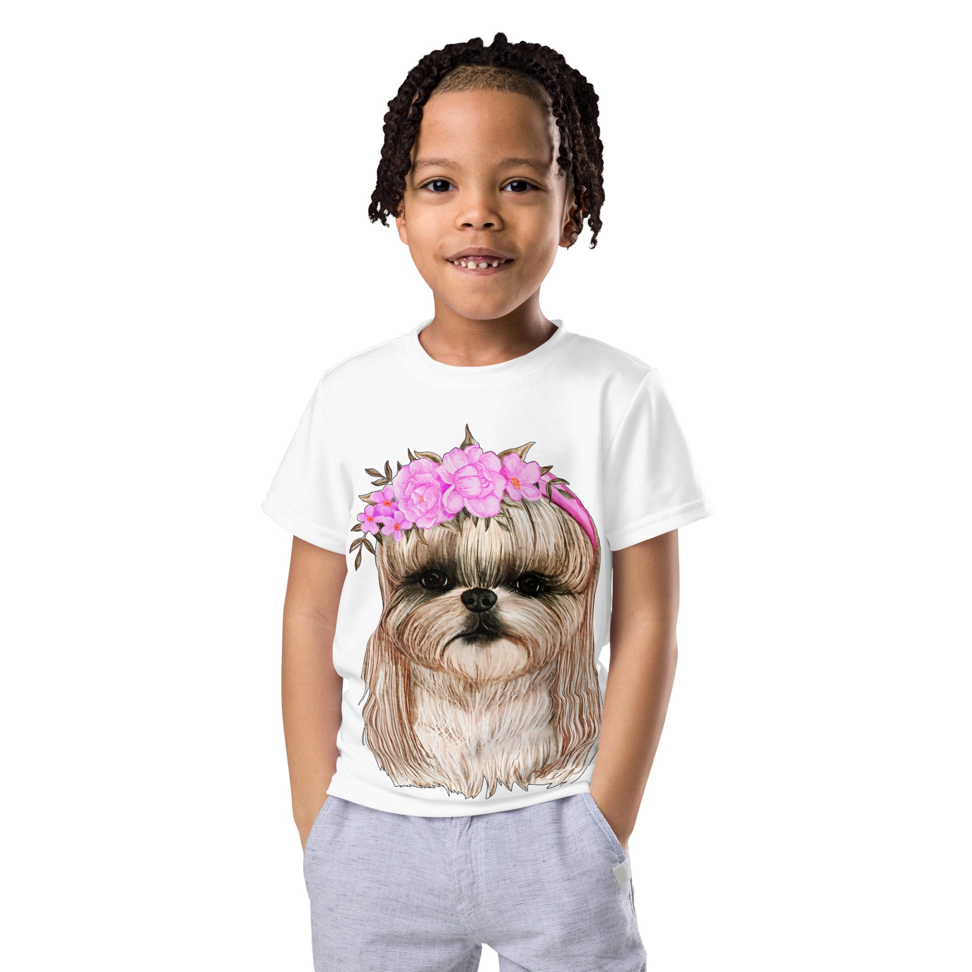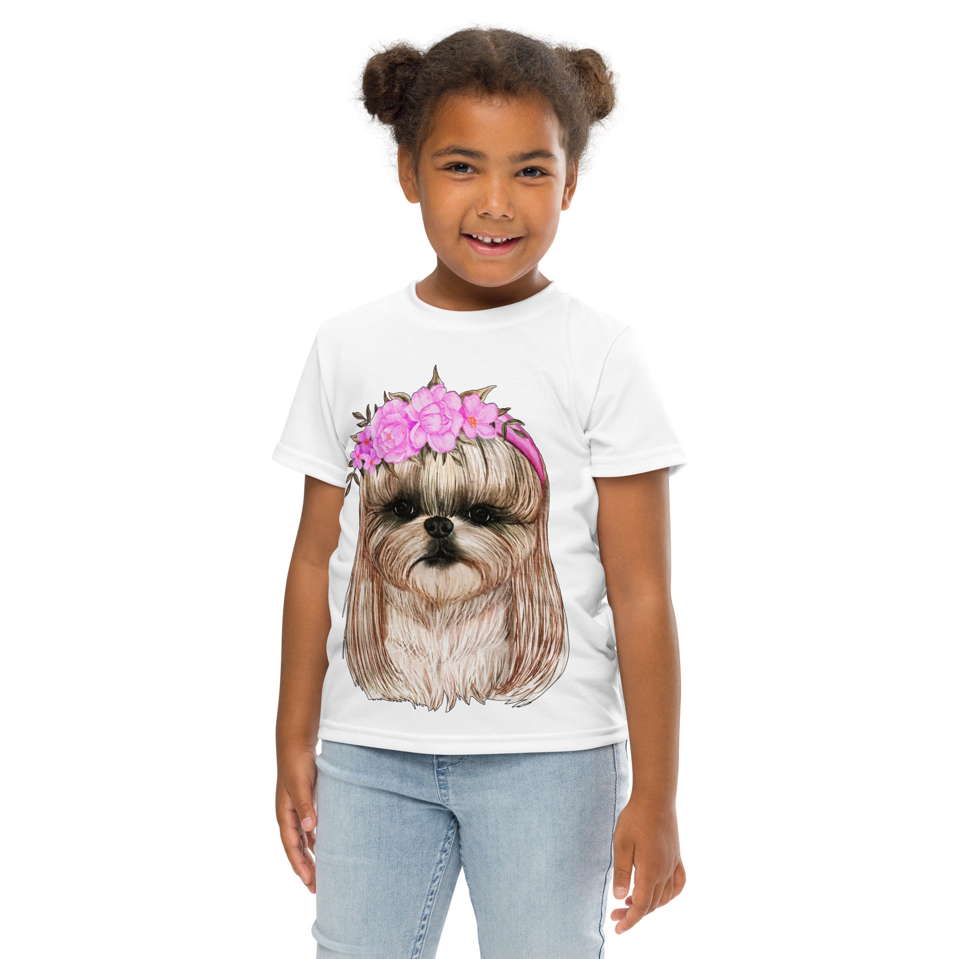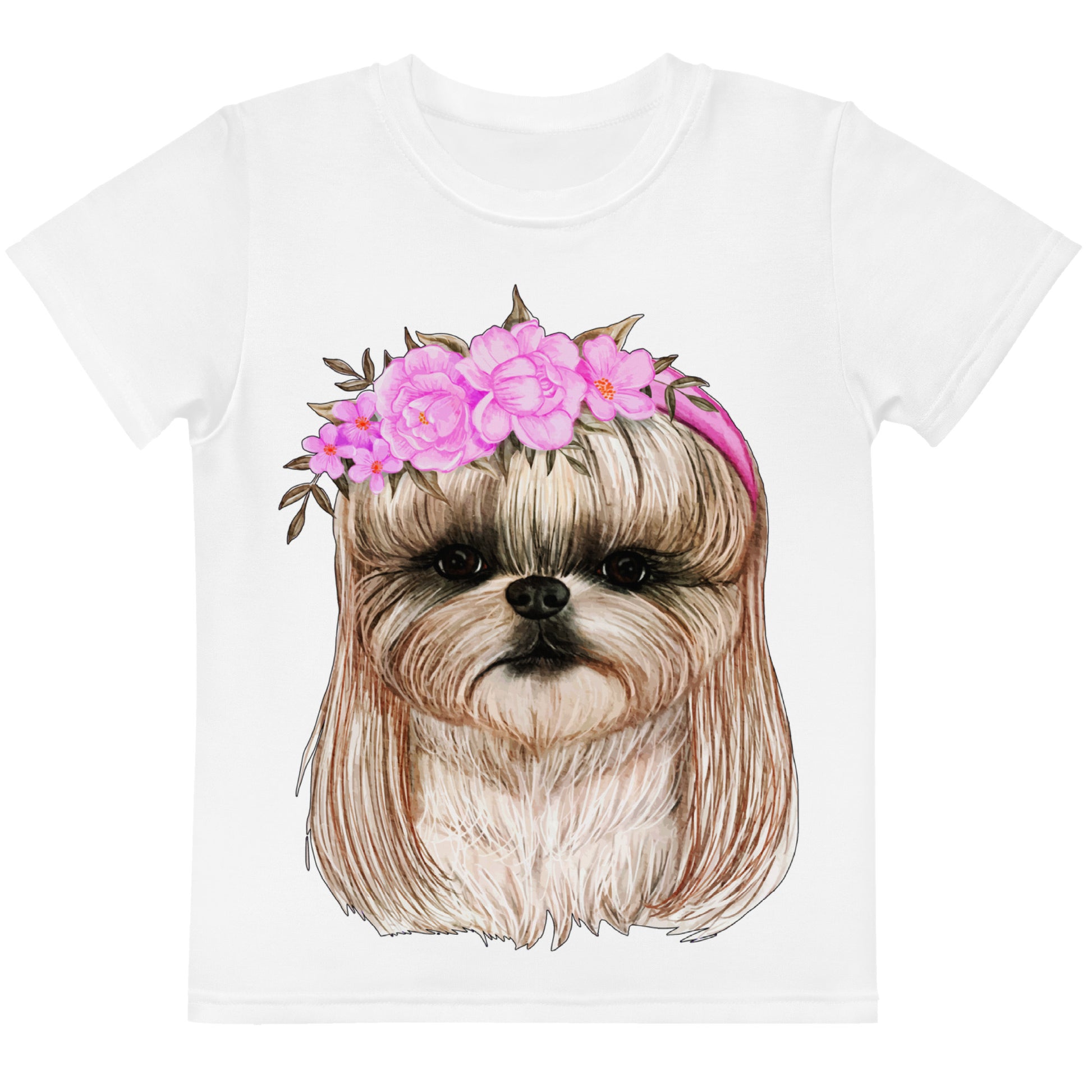 Adorable Dog with Flower Hair Crowns T-Shirt, No. 0562
