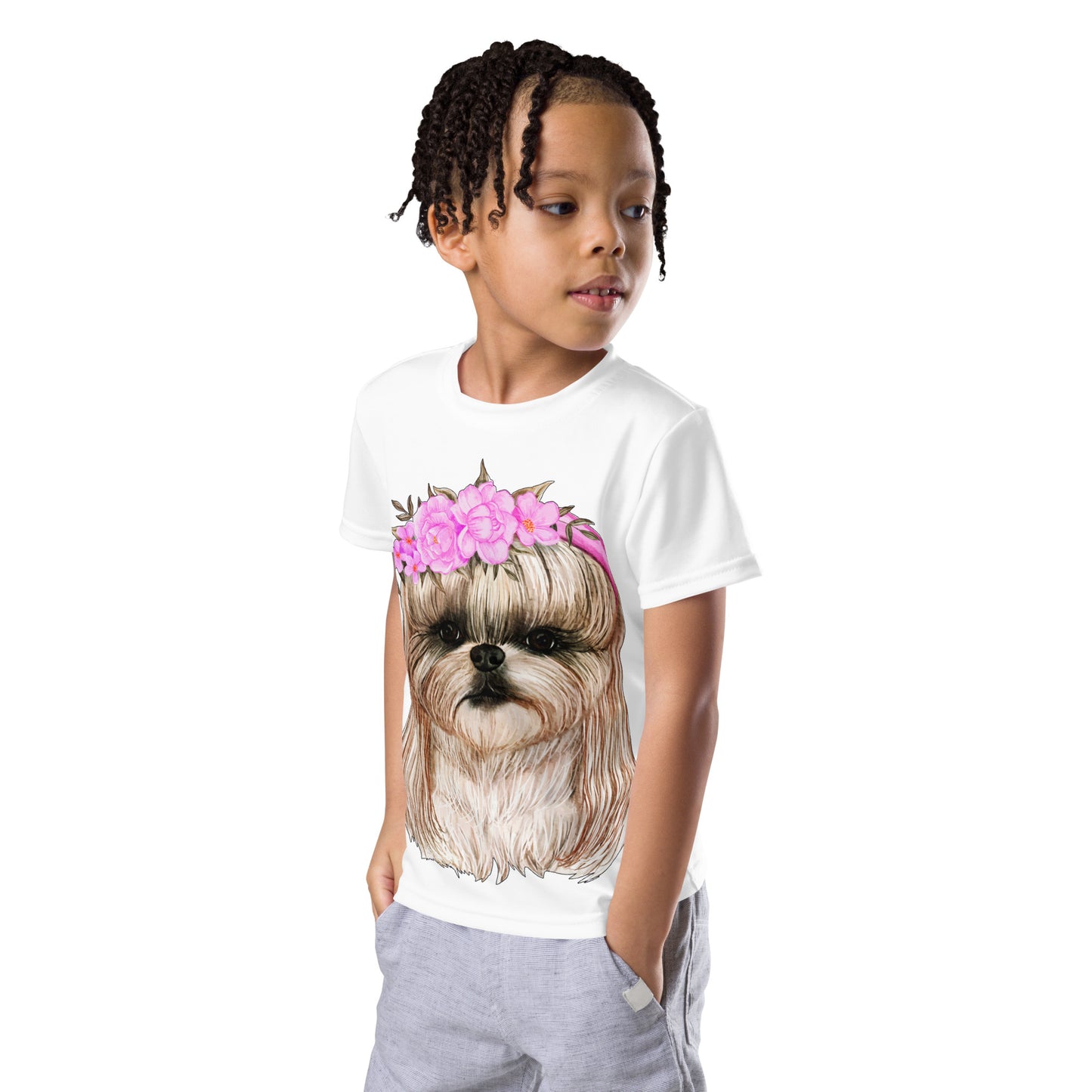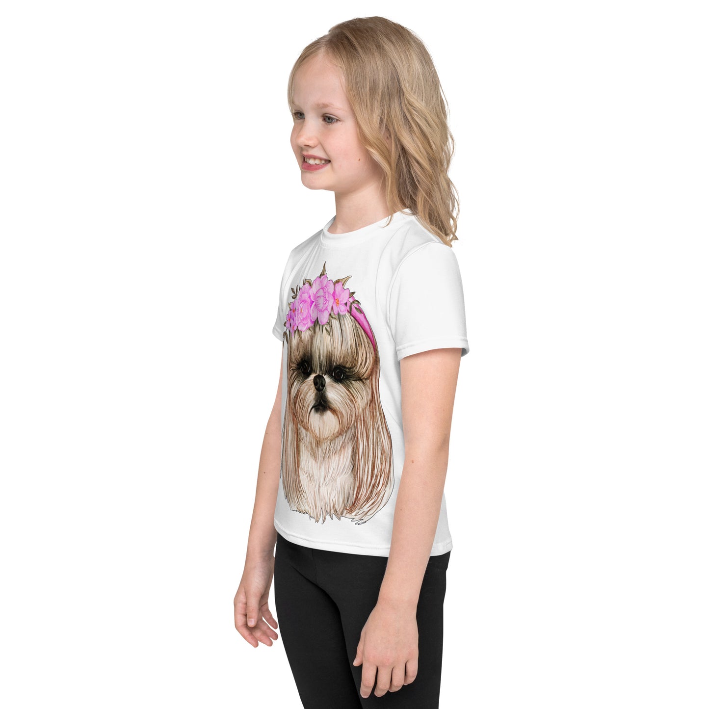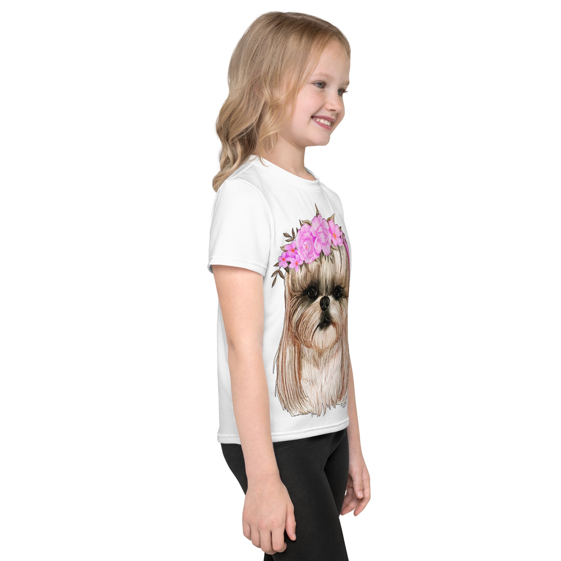 Adorable Dog with Flower Hair Crowns T-Shirt, No. 0562