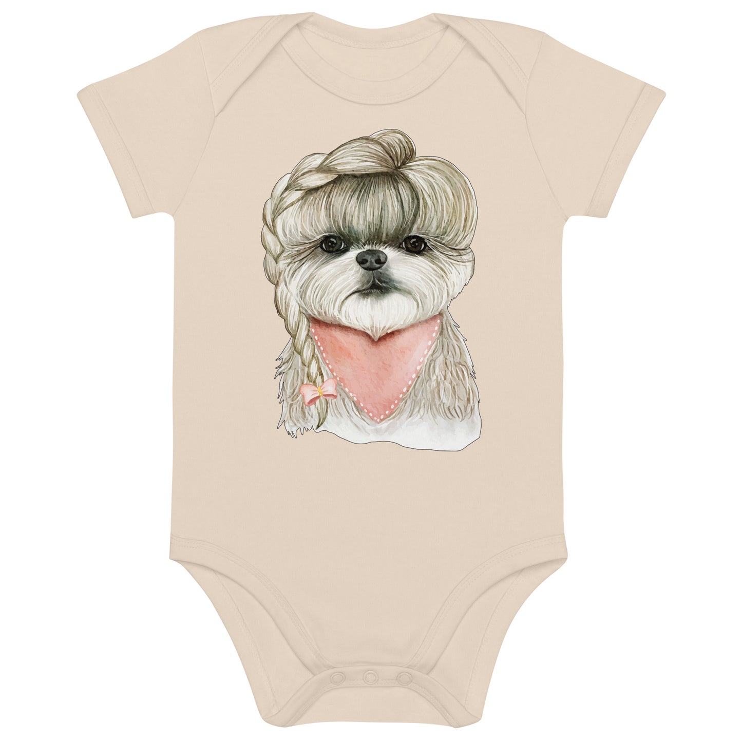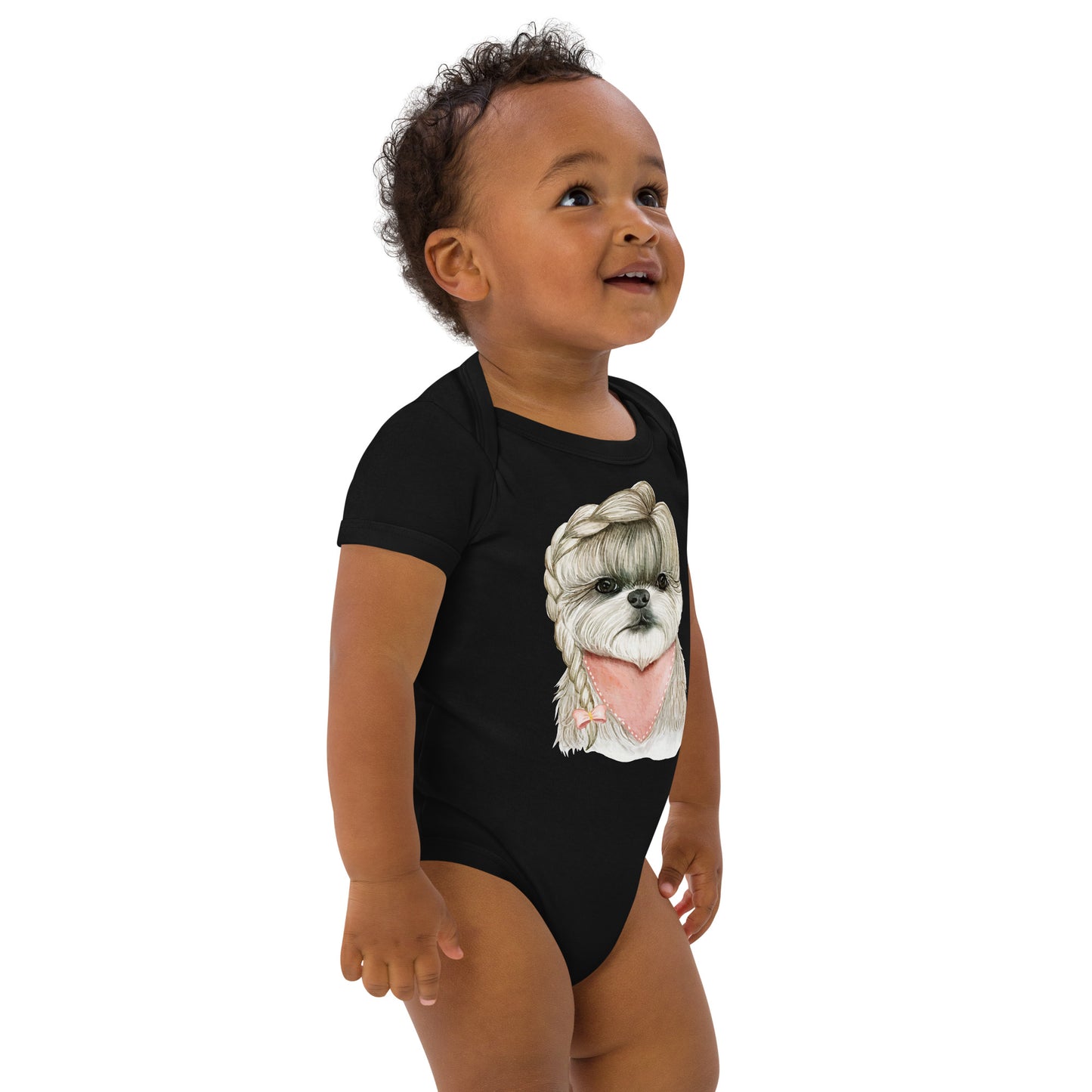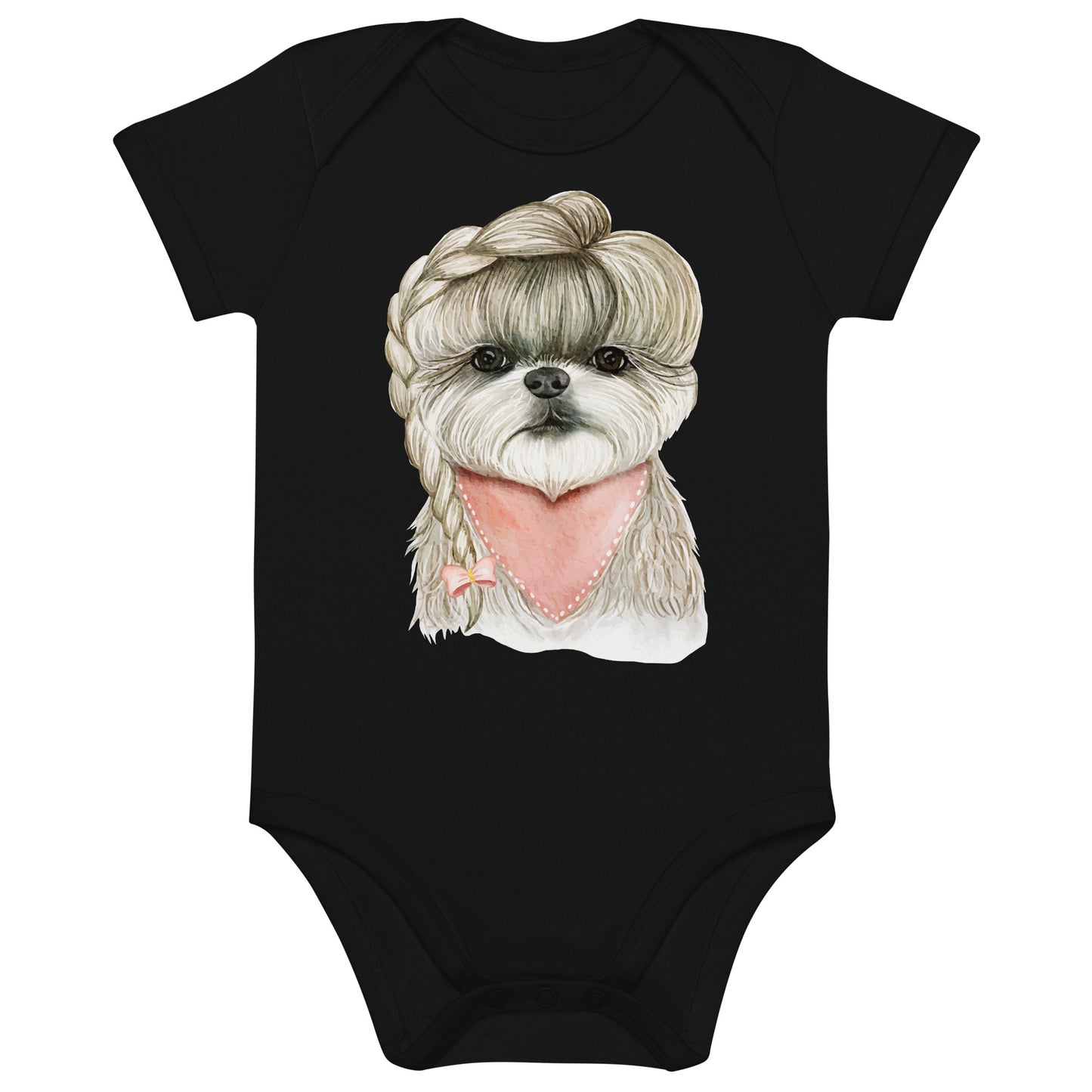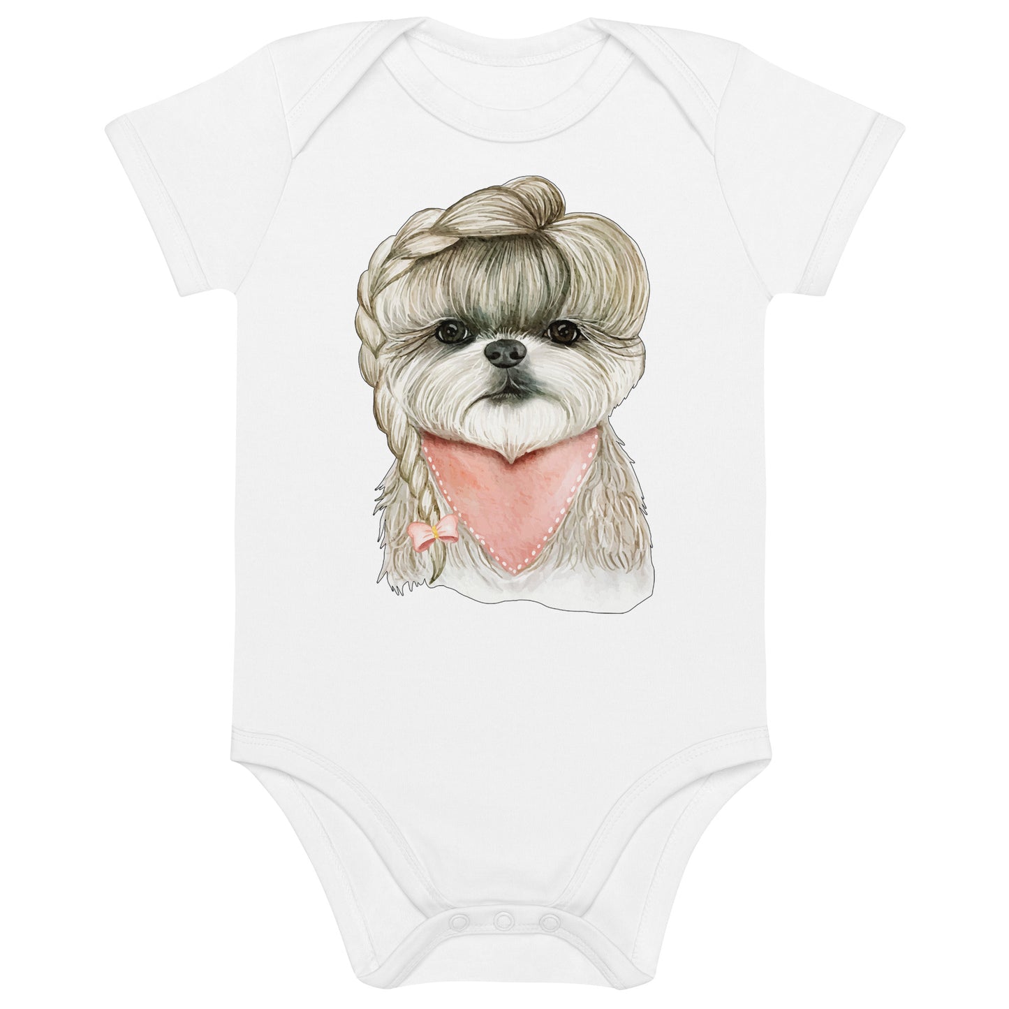 Adorable Dog with Hair Braids Ribbon Bodysuit, No. 0564