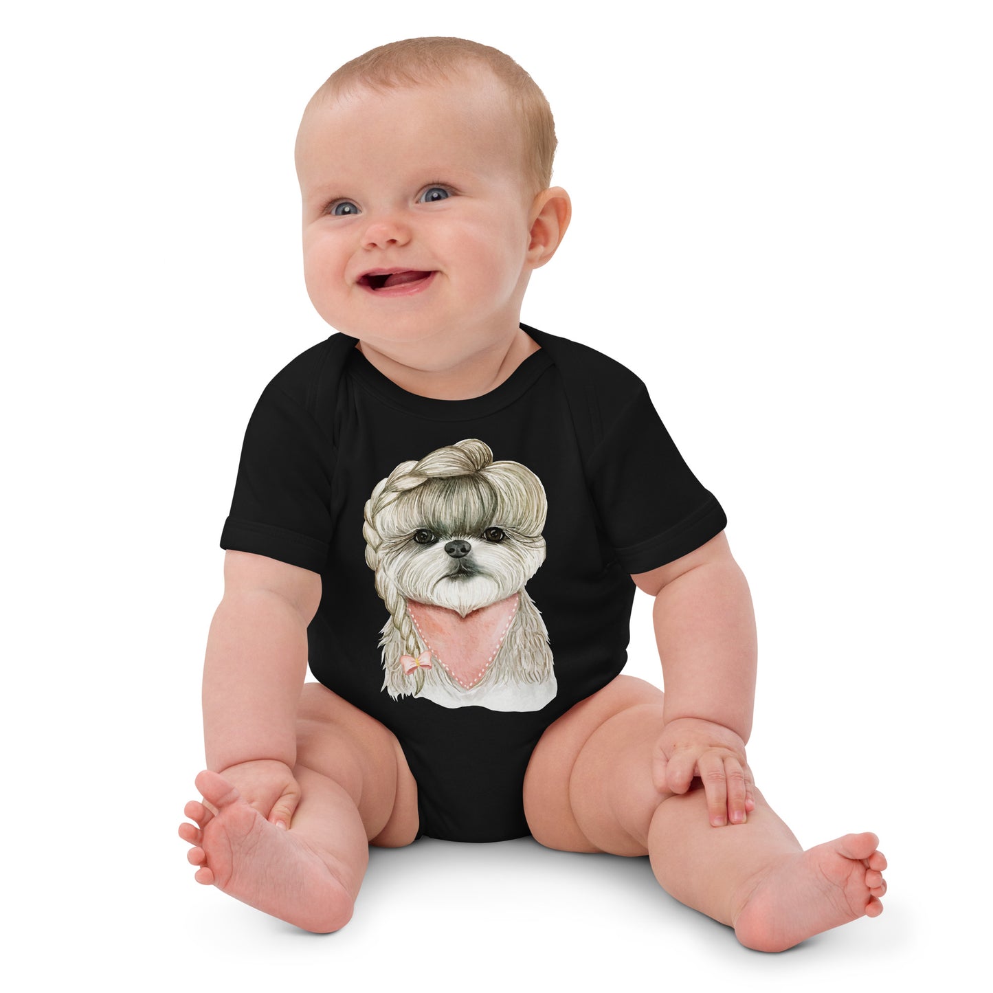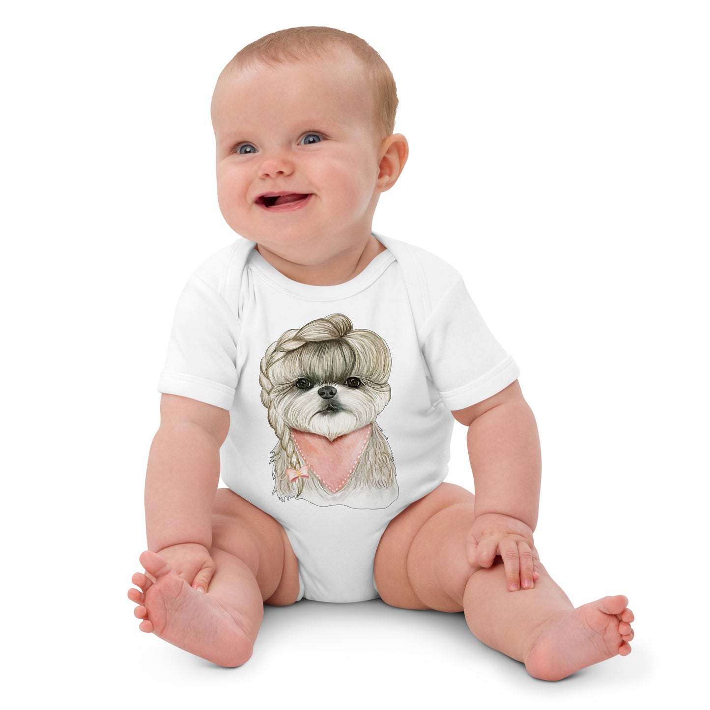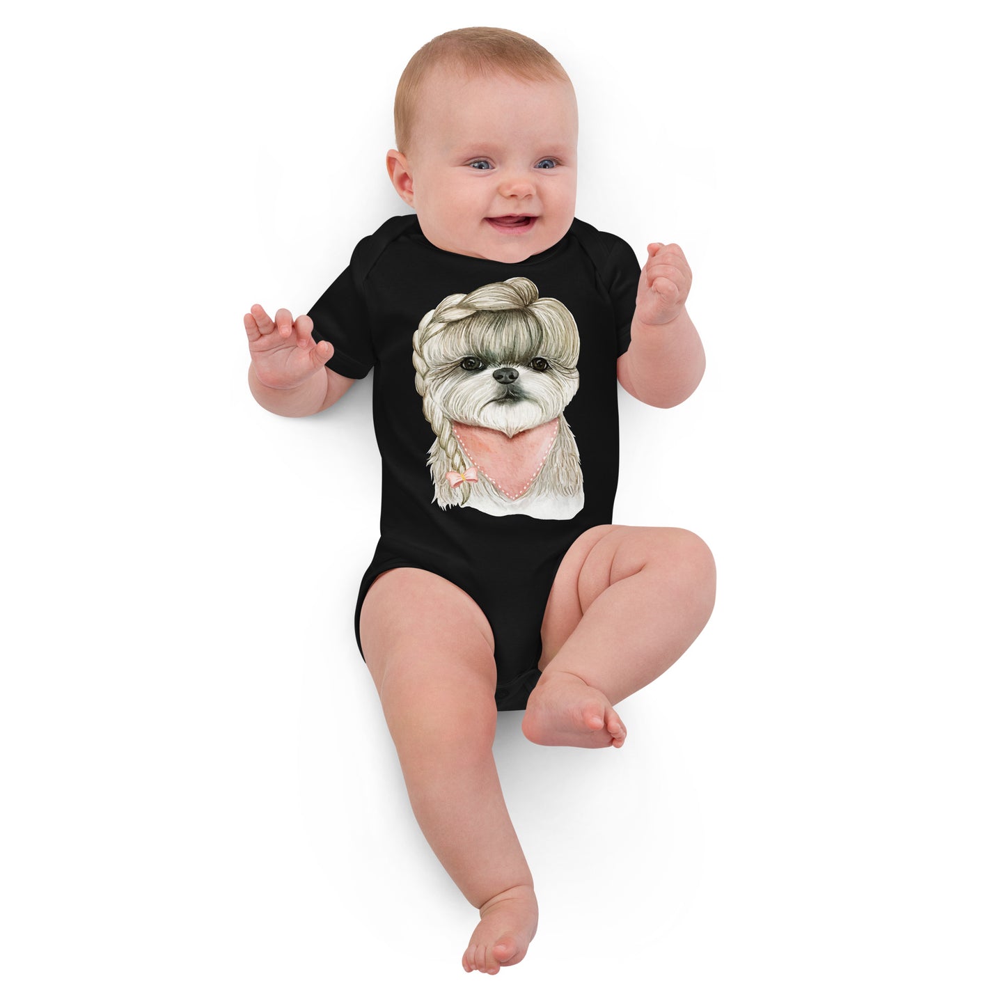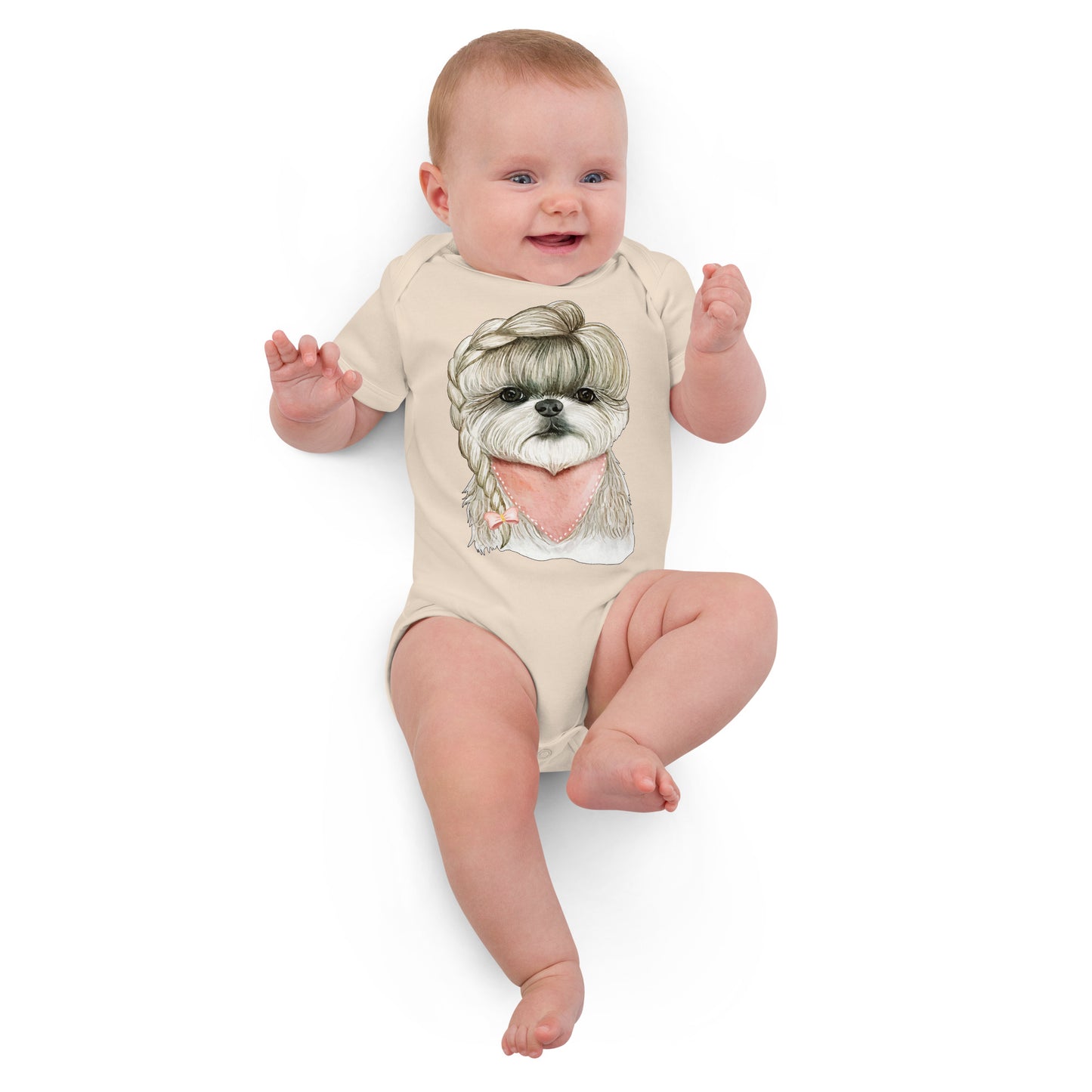 Adorable Dog with Hair Braids Ribbon Bodysuit, No. 0564