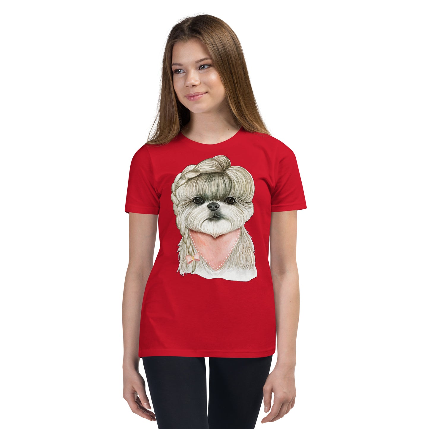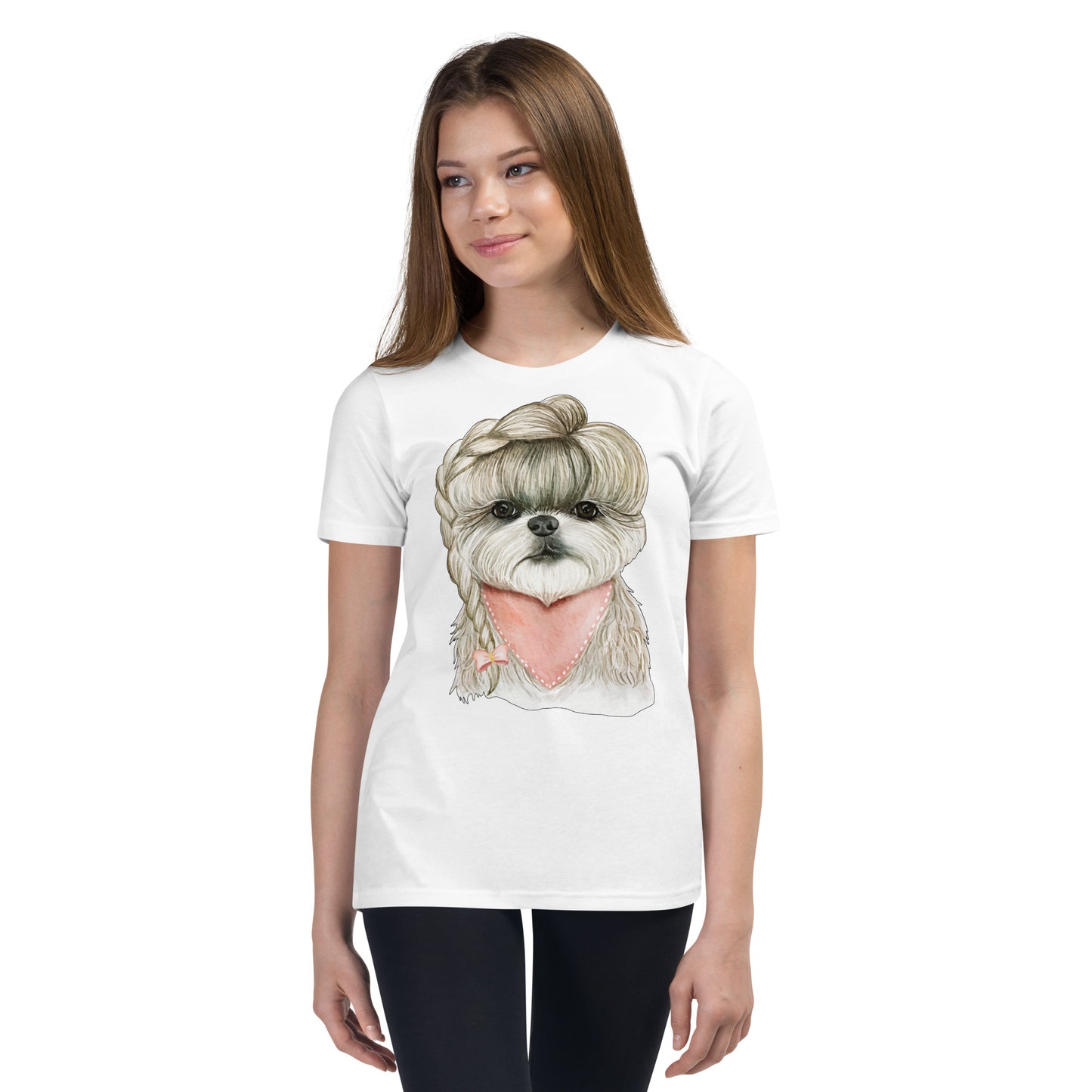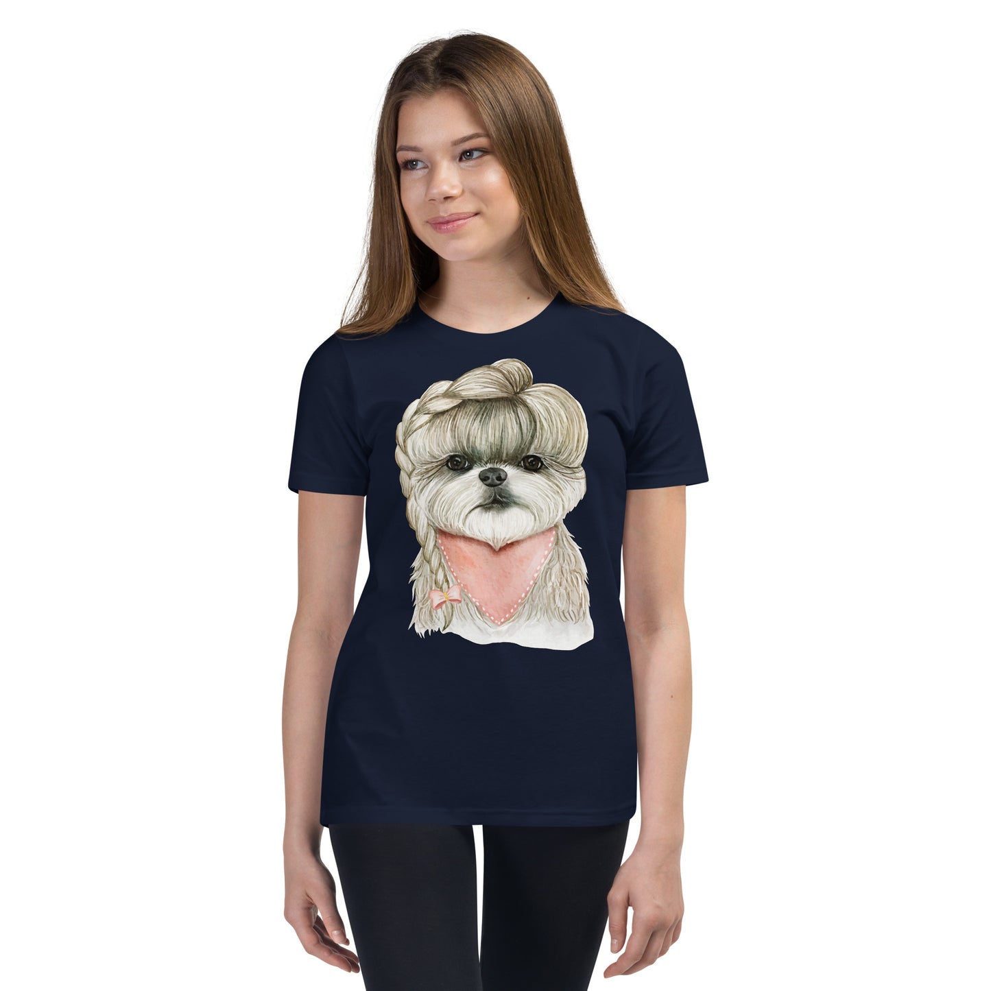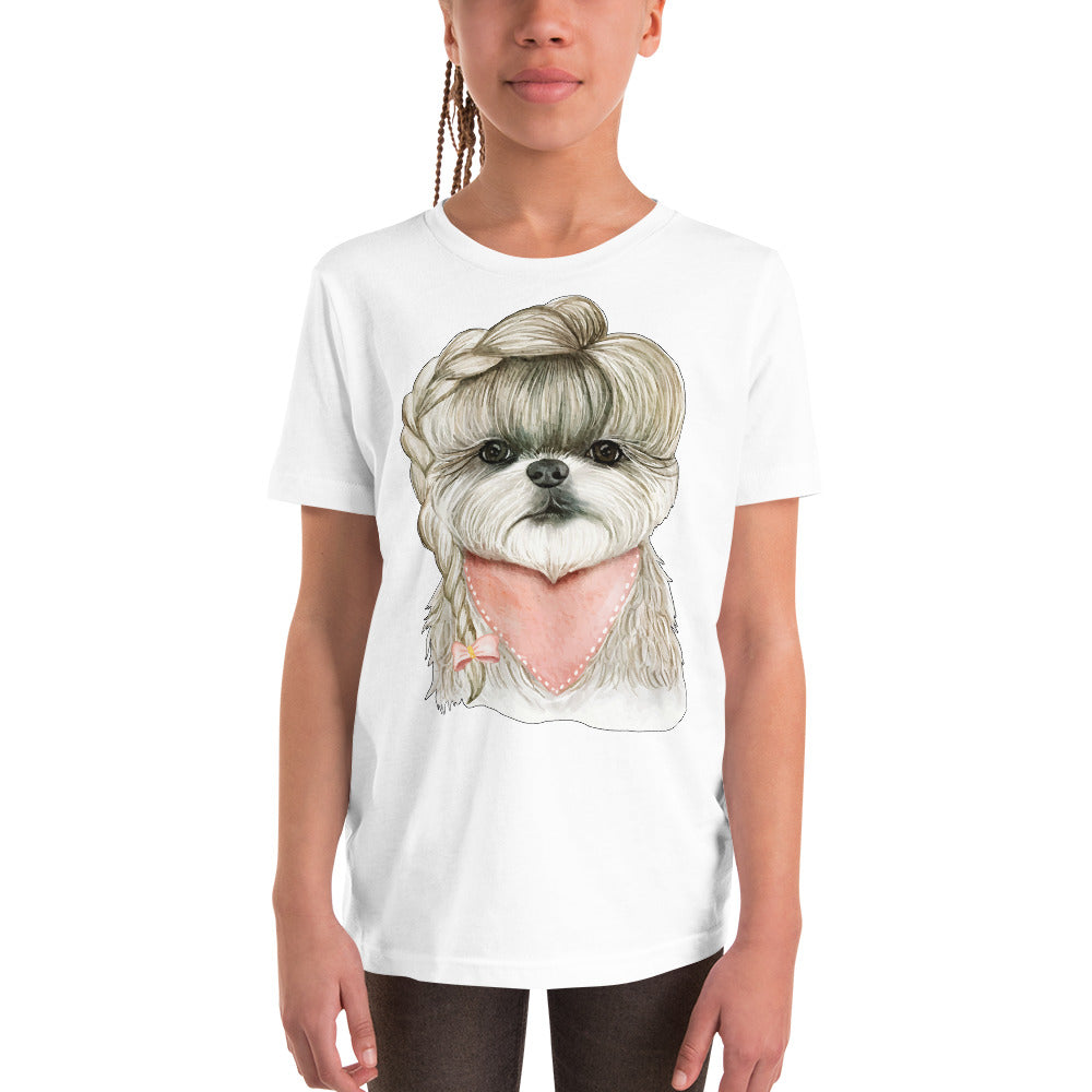 Adorable Dog with Hair Braids Ribbon T-shirt, No. 0564