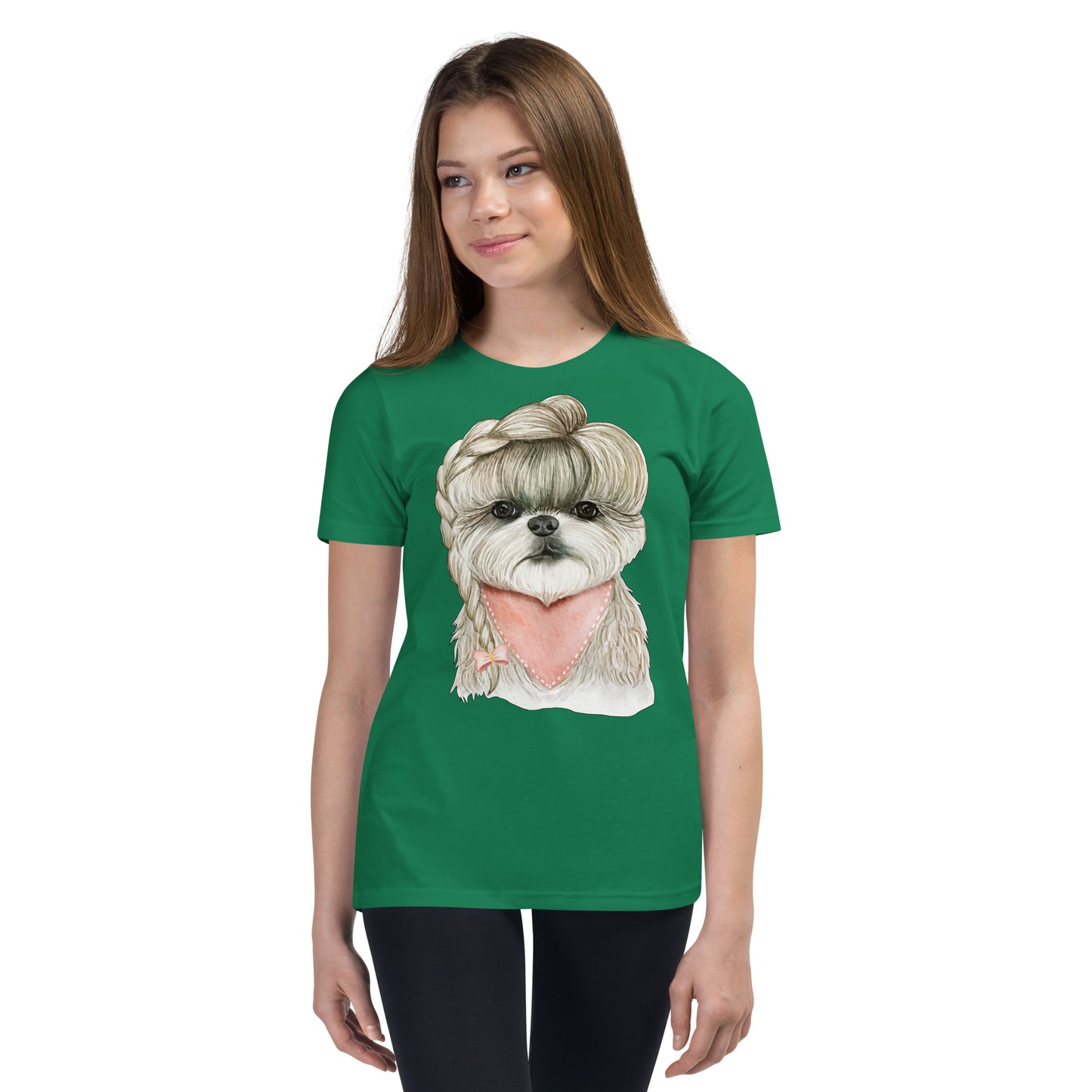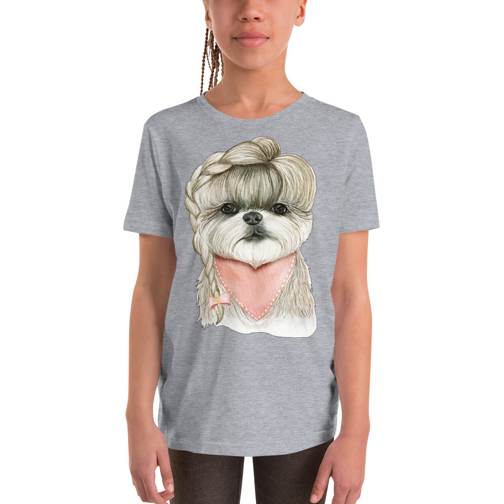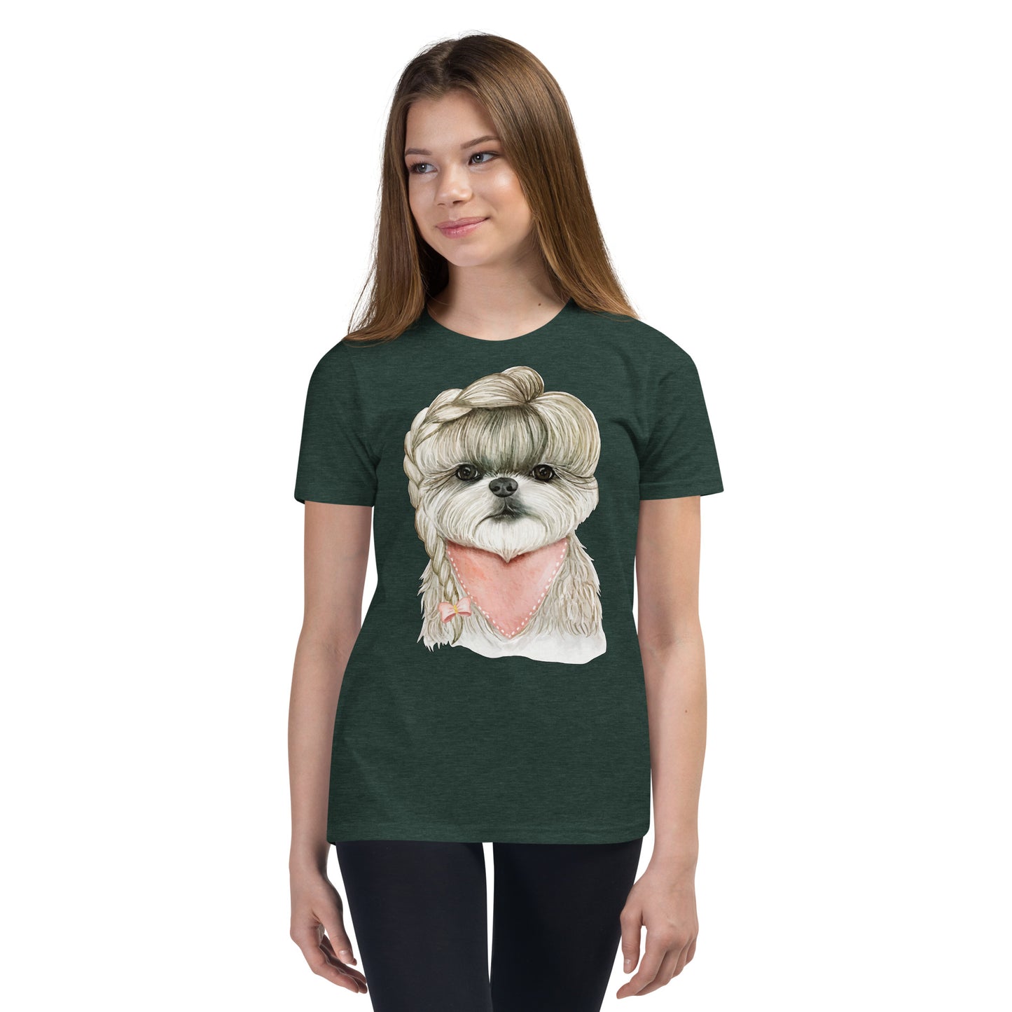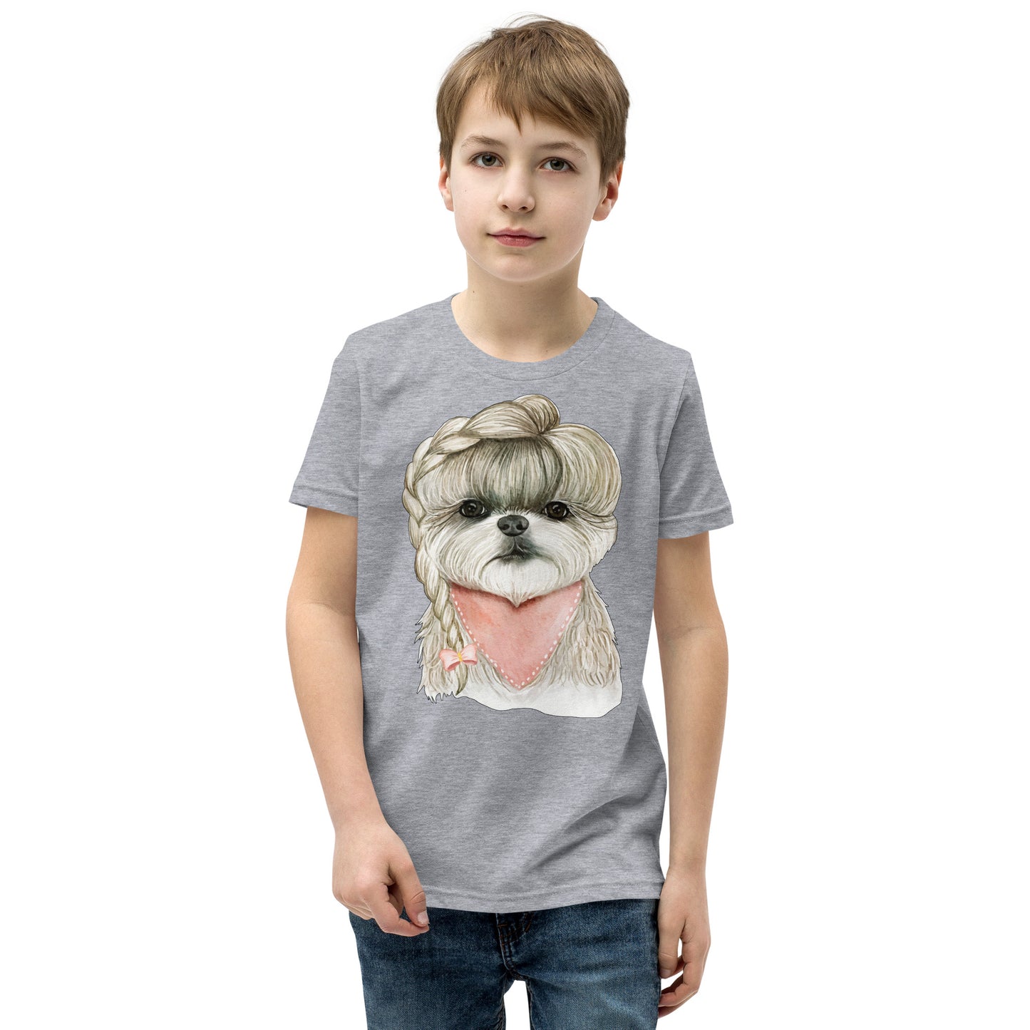 Adorable Dog with Hair Braids Ribbon T-shirt, No. 0564
