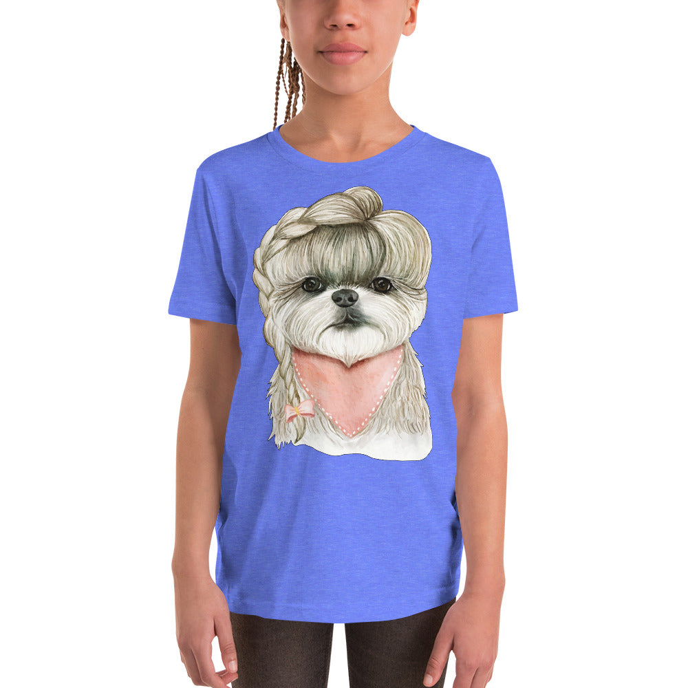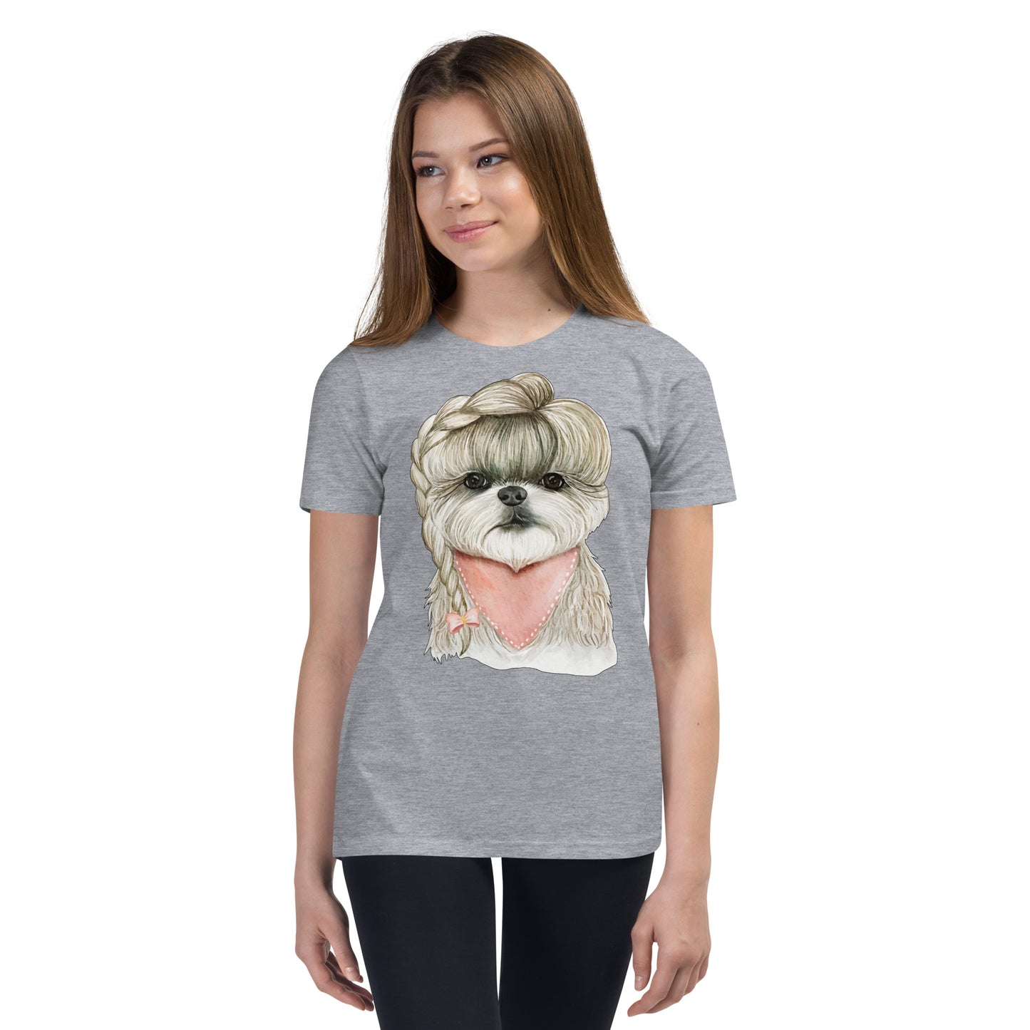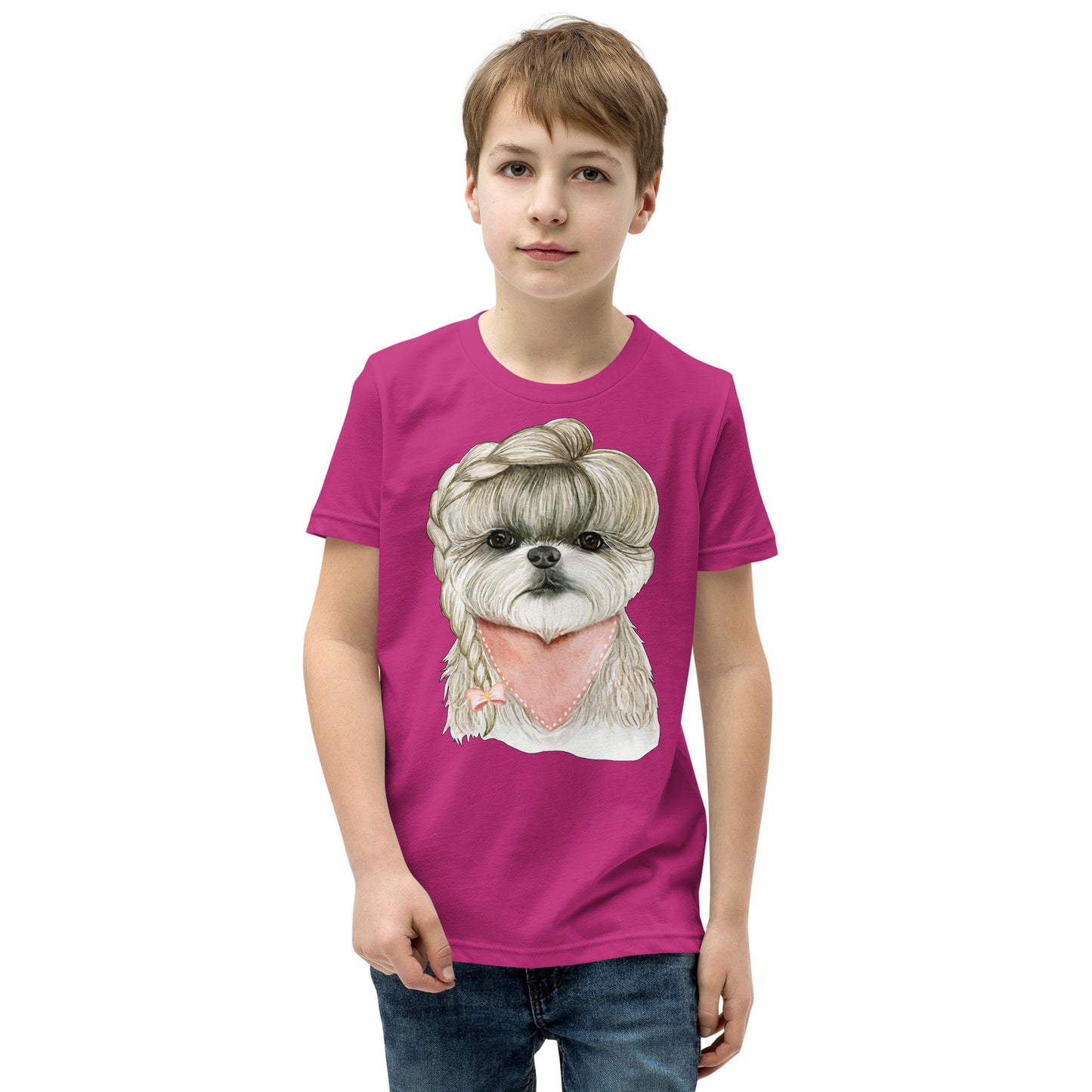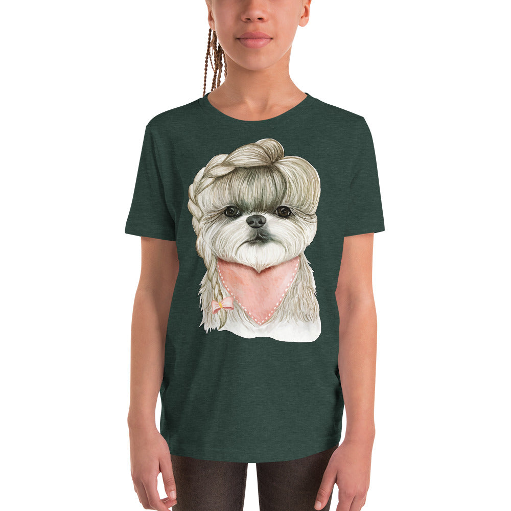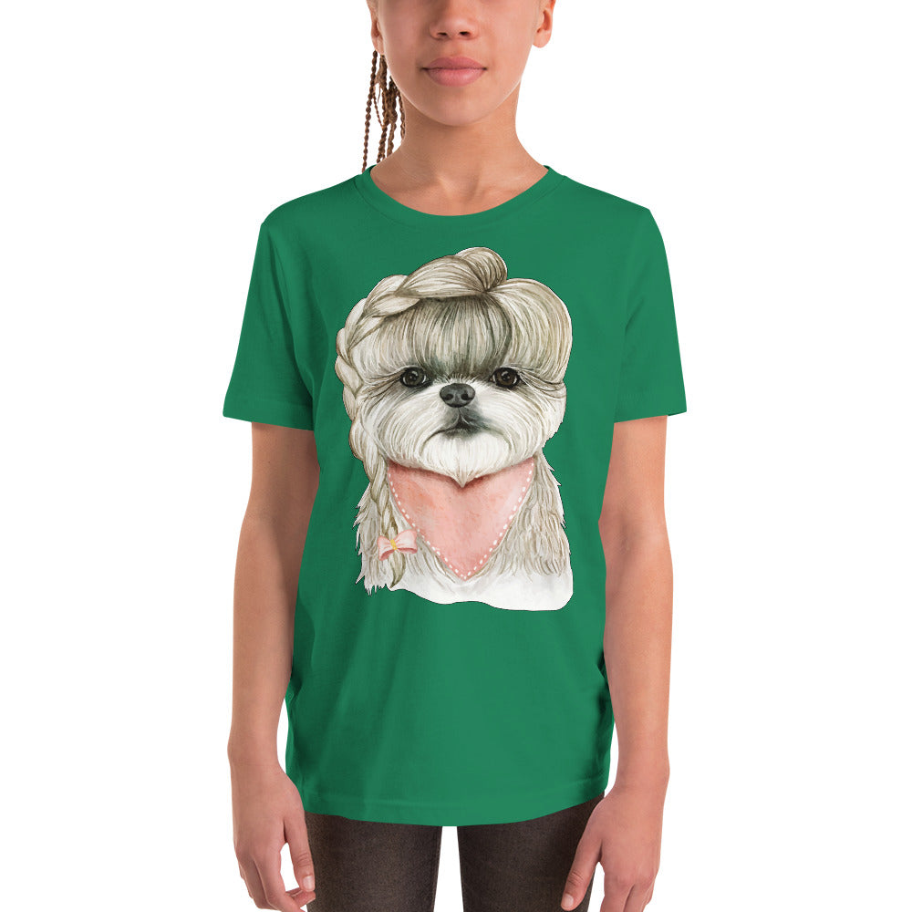 Adorable Dog with Hair Braids Ribbon T-shirt, No. 0564