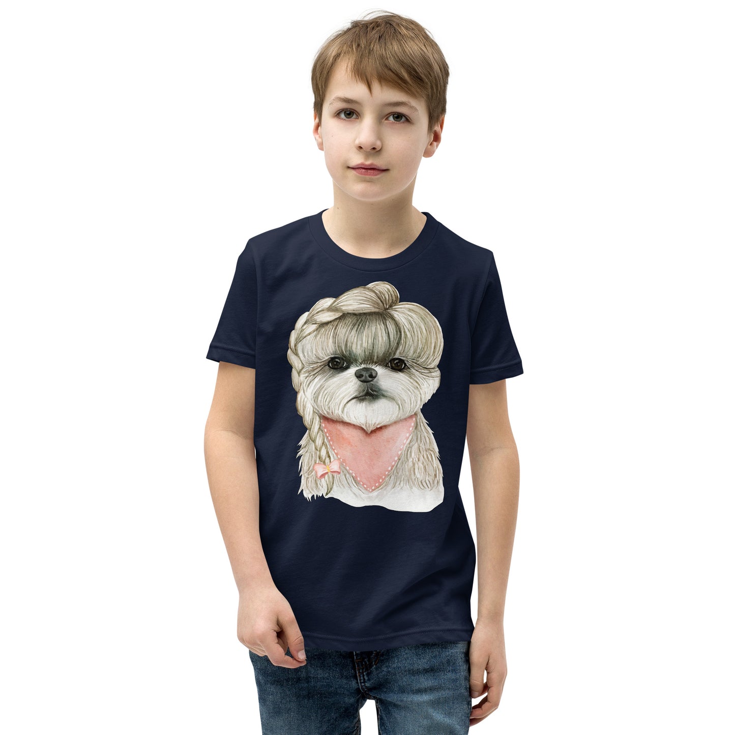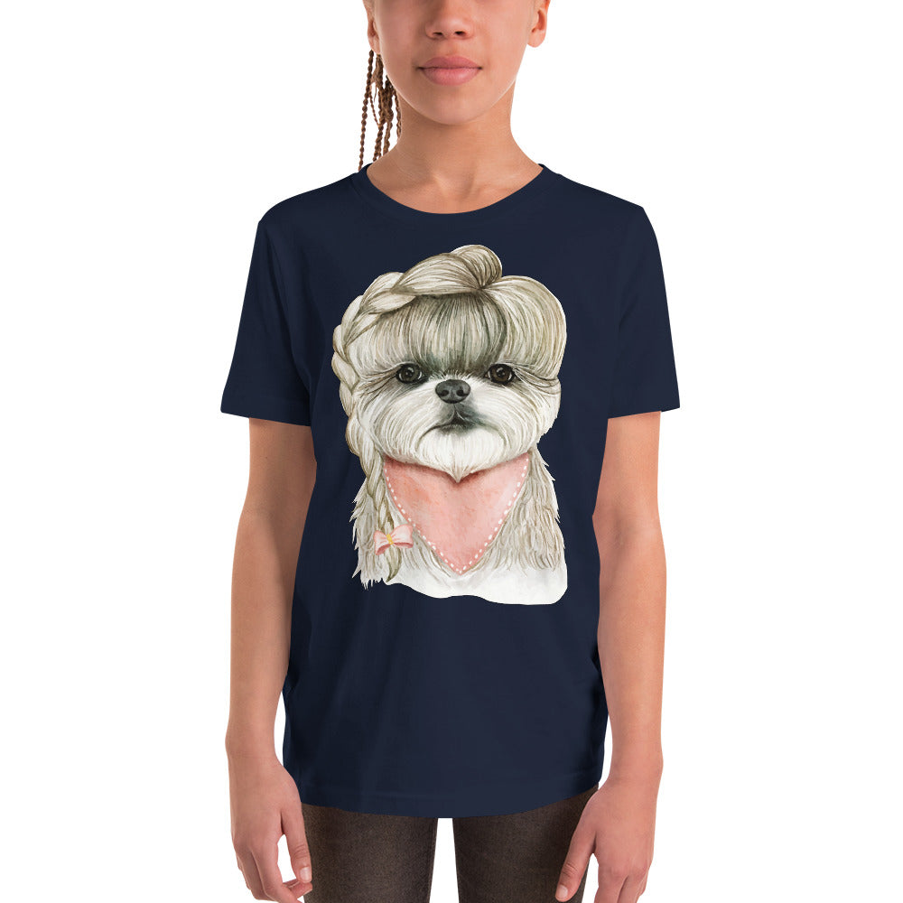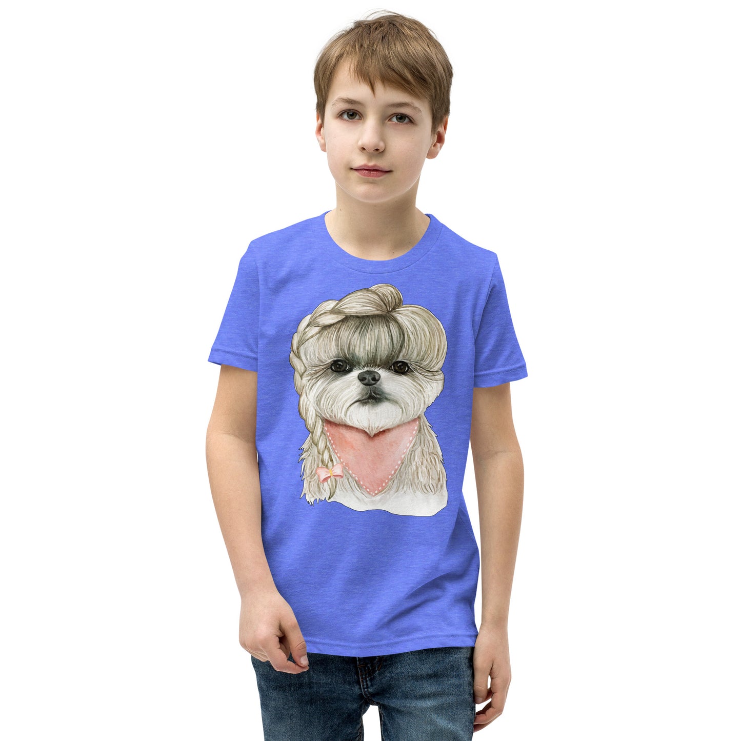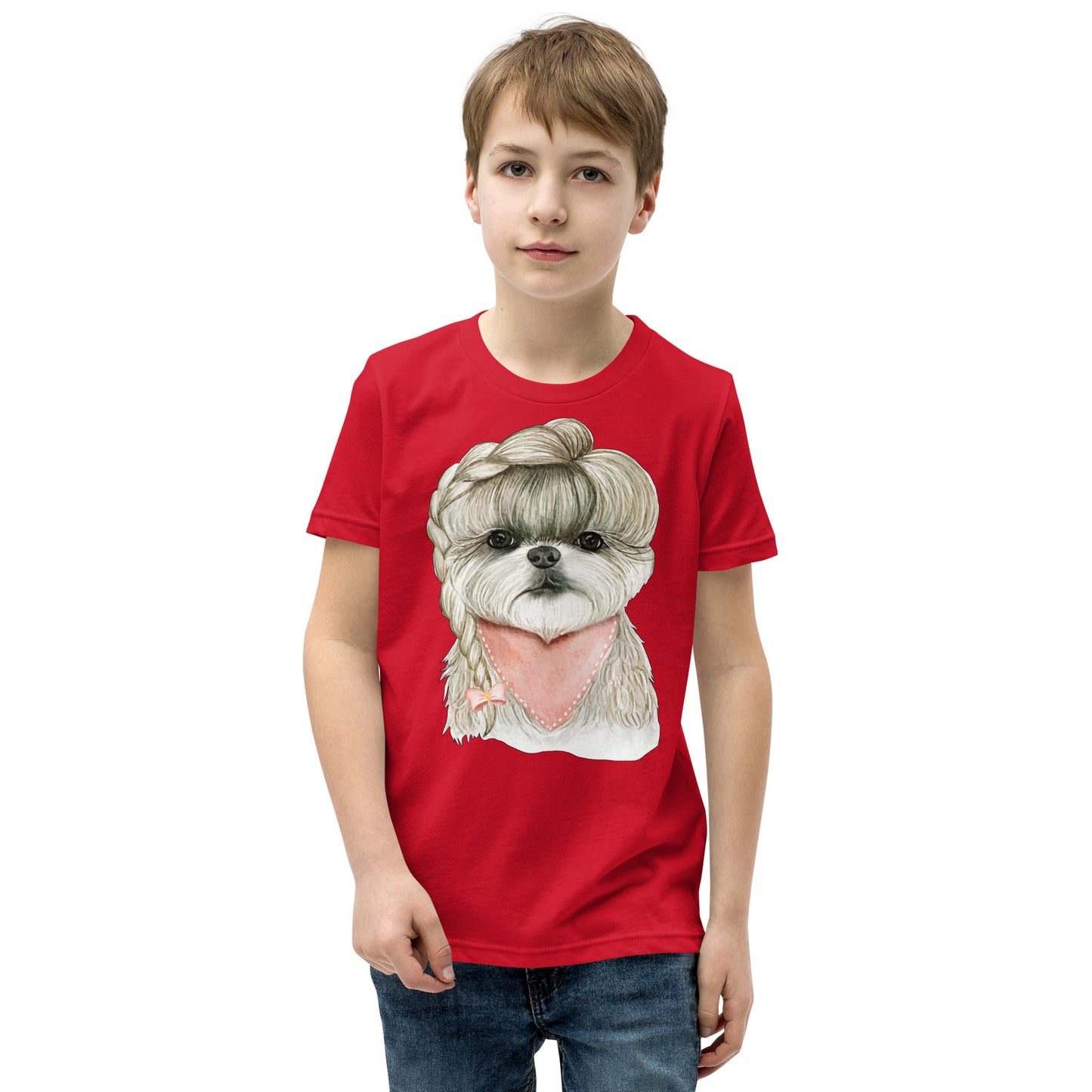 Adorable Dog with Hair Braids Ribbon T-shirt, No. 0564