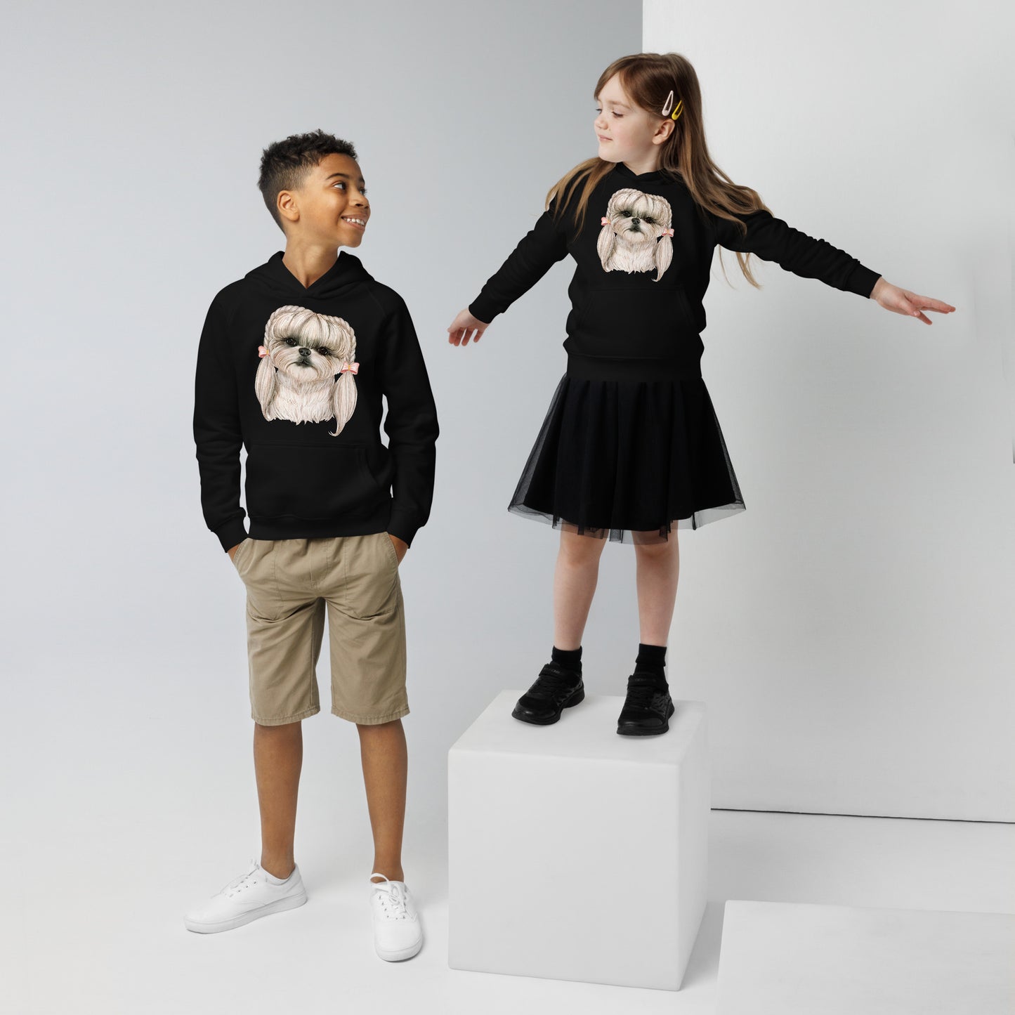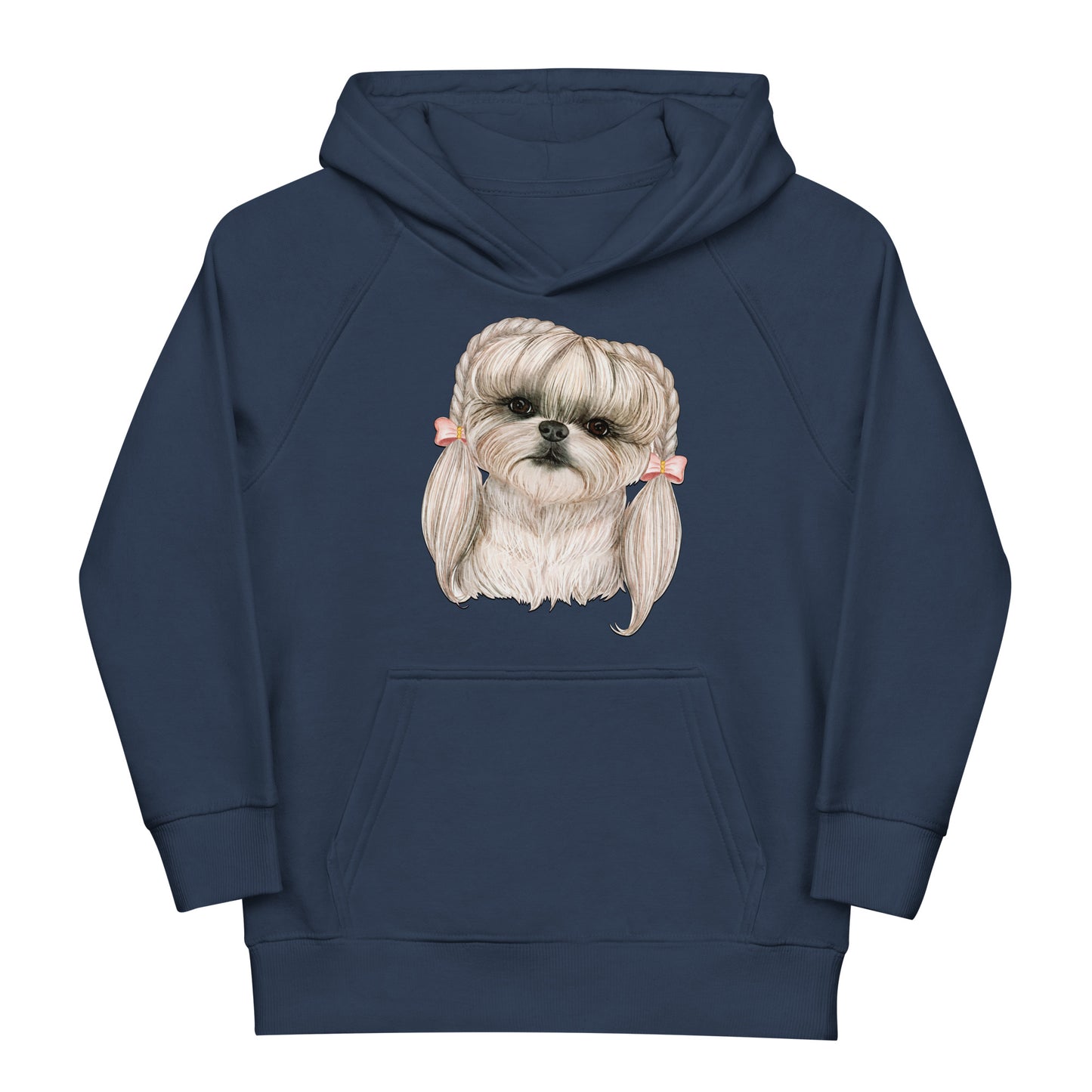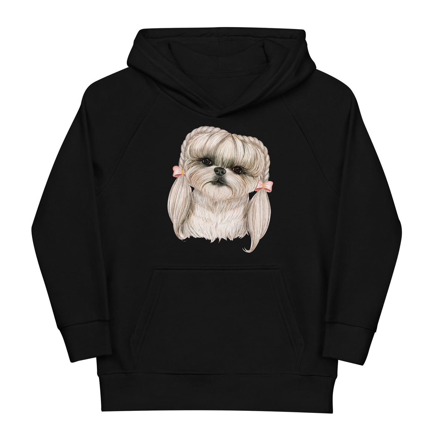 Adorable Dog with Pink Hair Braids Ribbon Hoodie, No. 0565