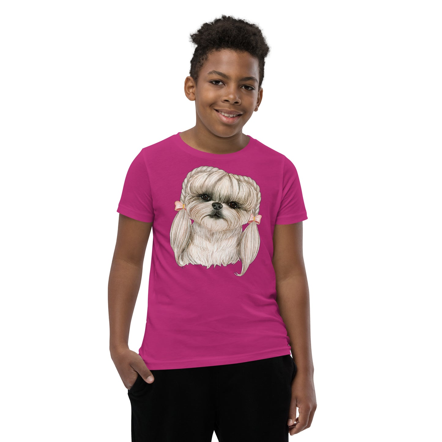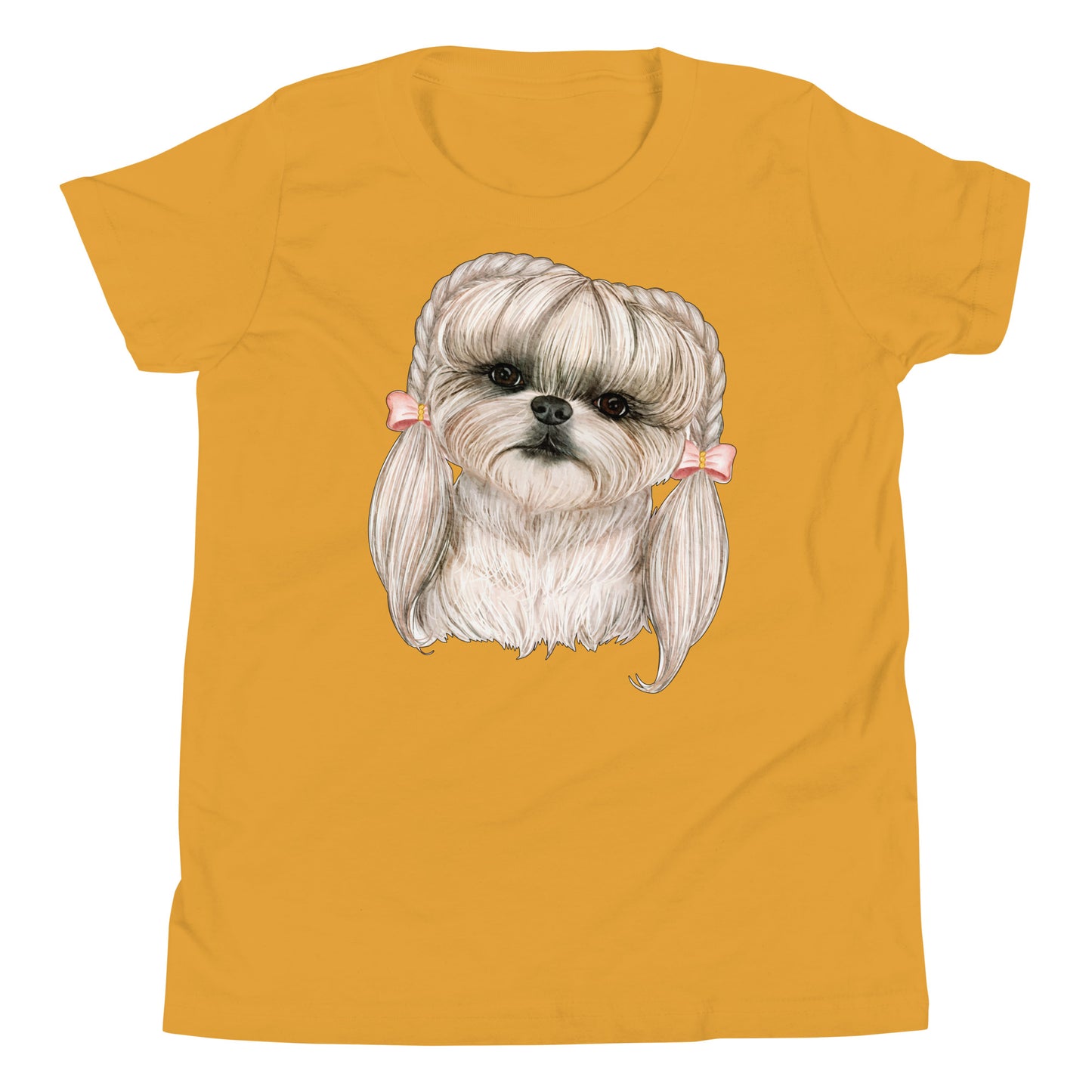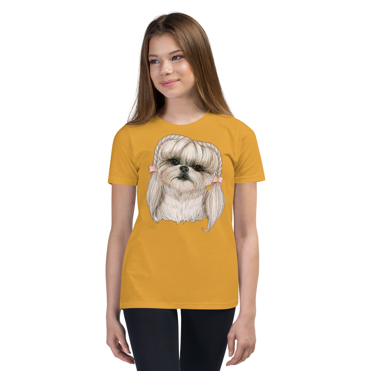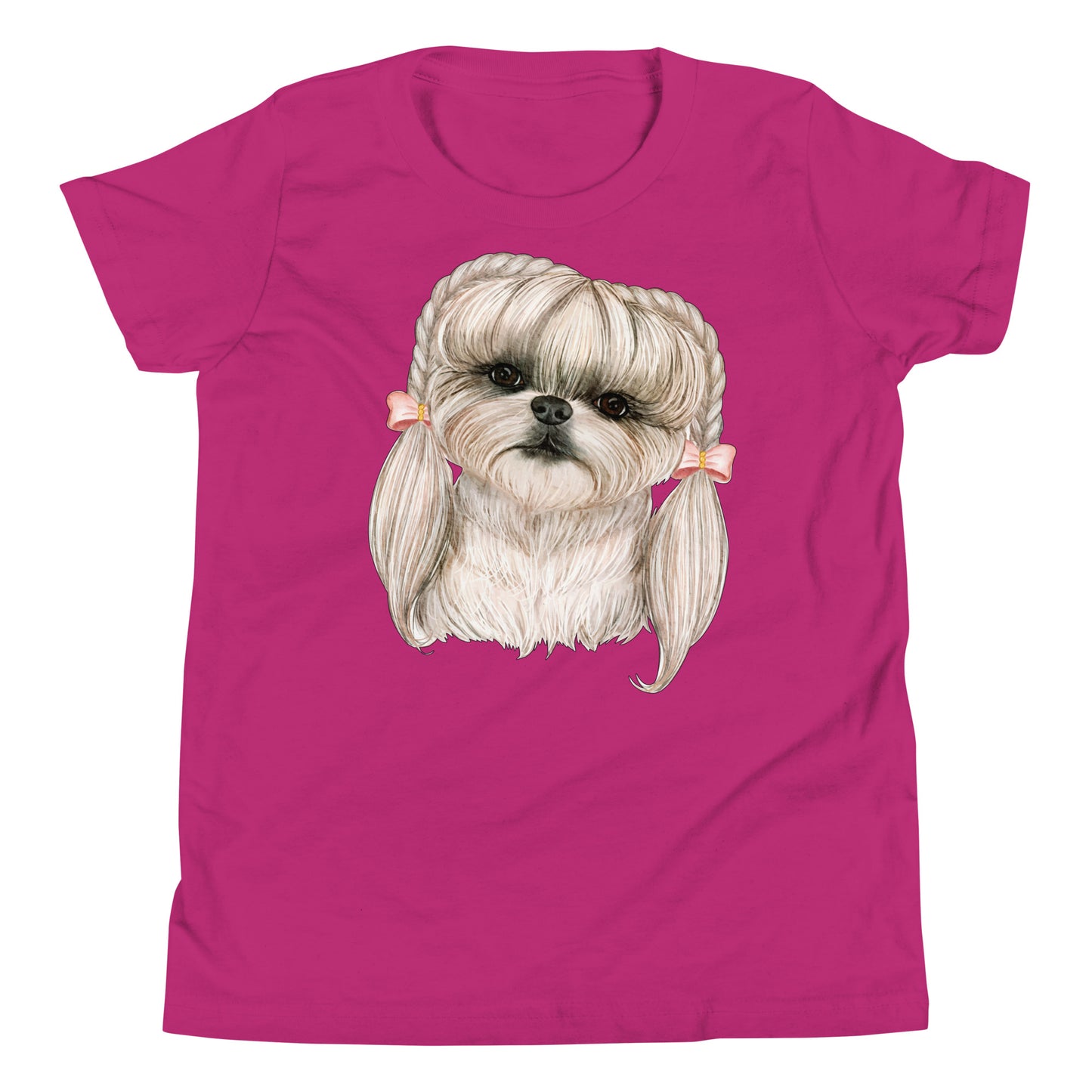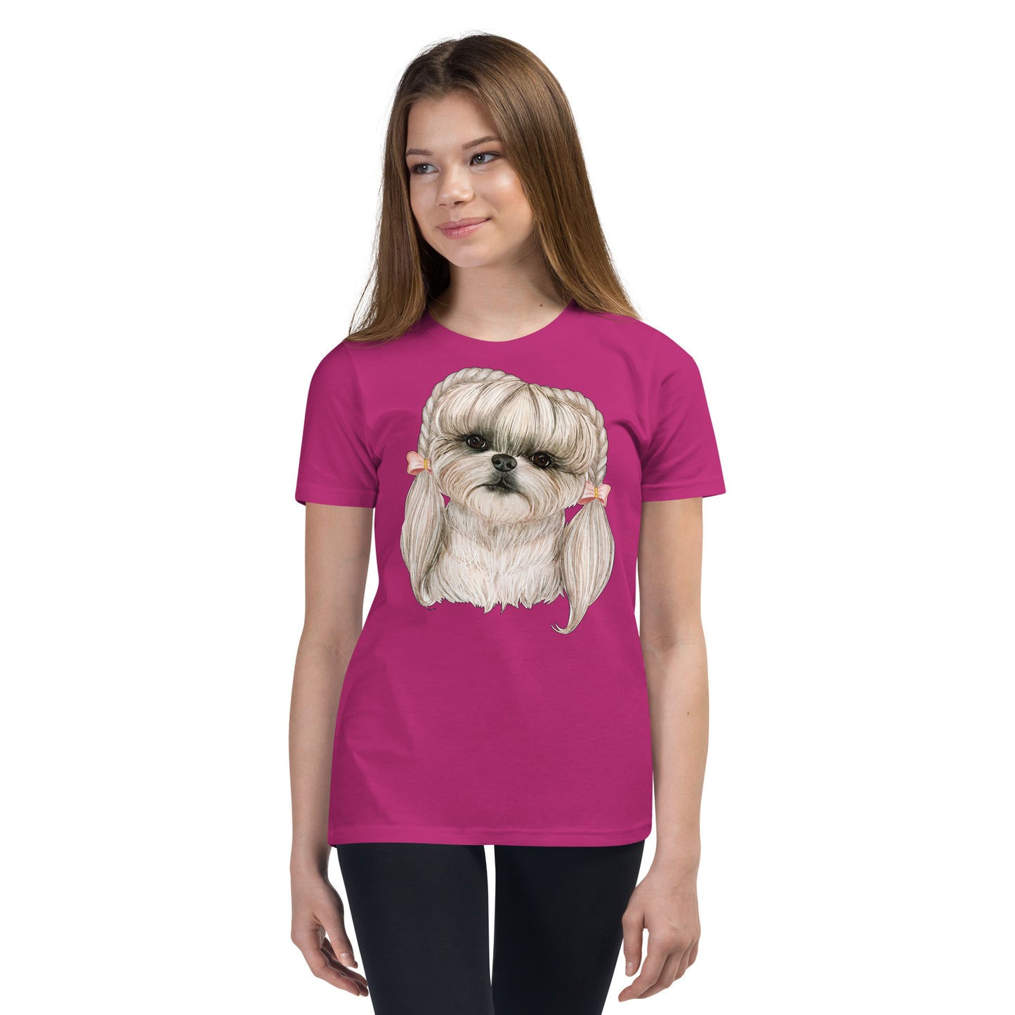 Adorable Dog with Pink Hair Braids Ribbon T-Shirt, No. 0565