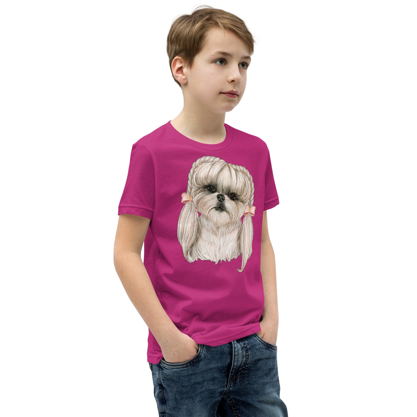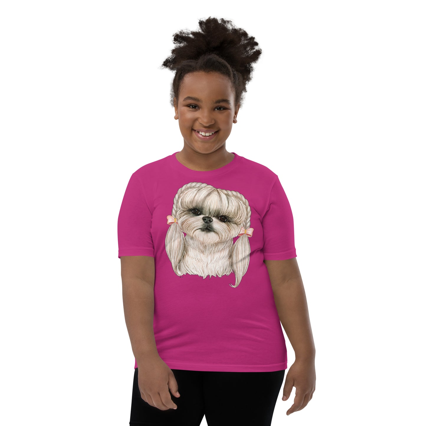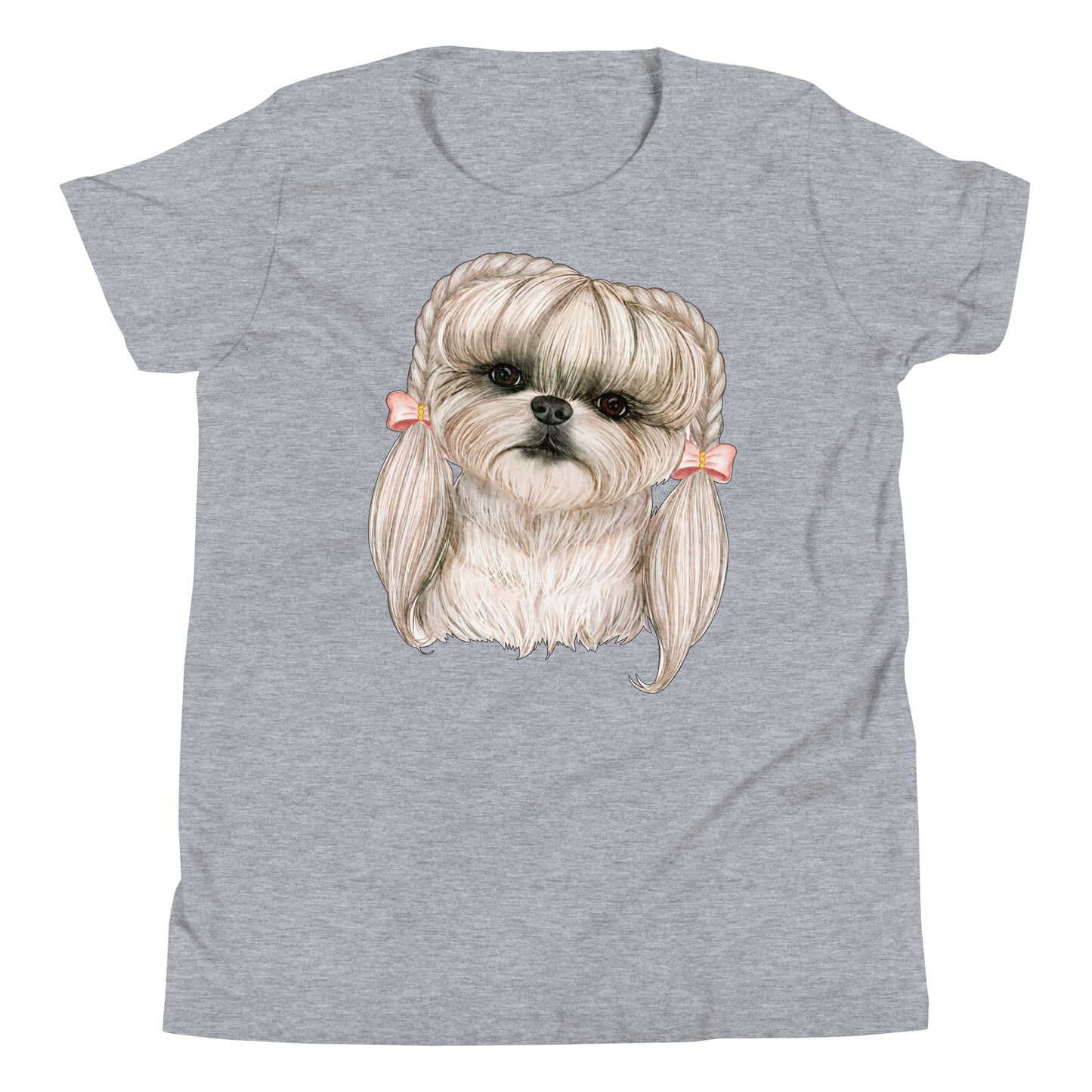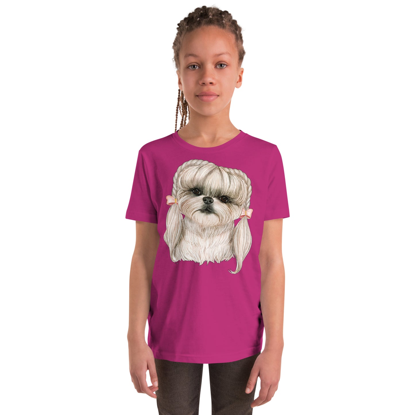 Adorable Dog with Pink Hair Braids Ribbon T-Shirt, No. 0565
