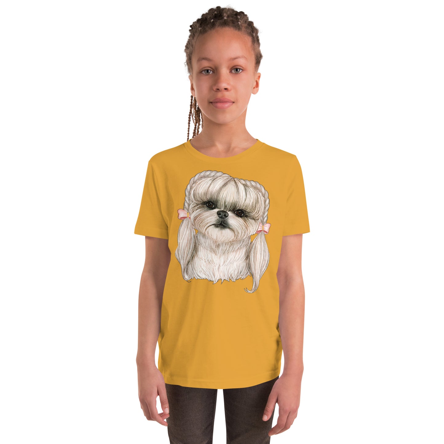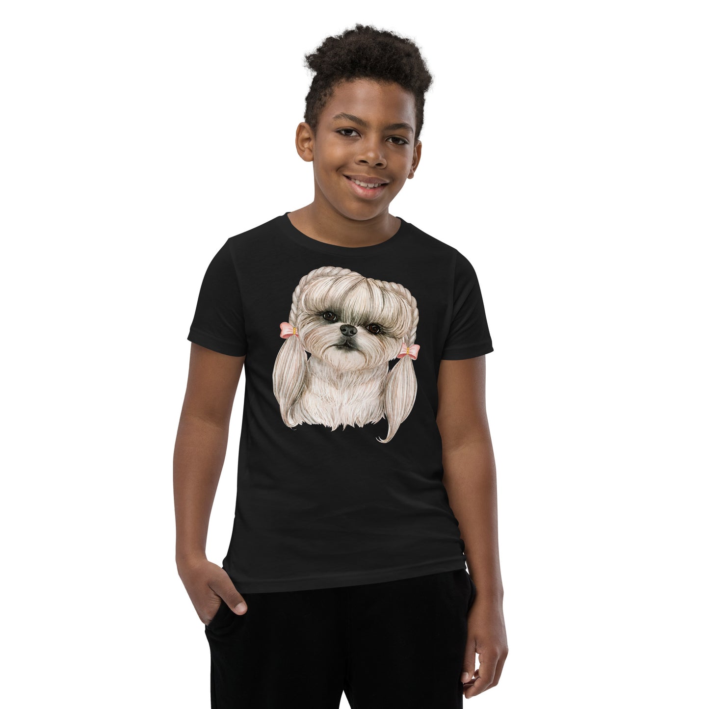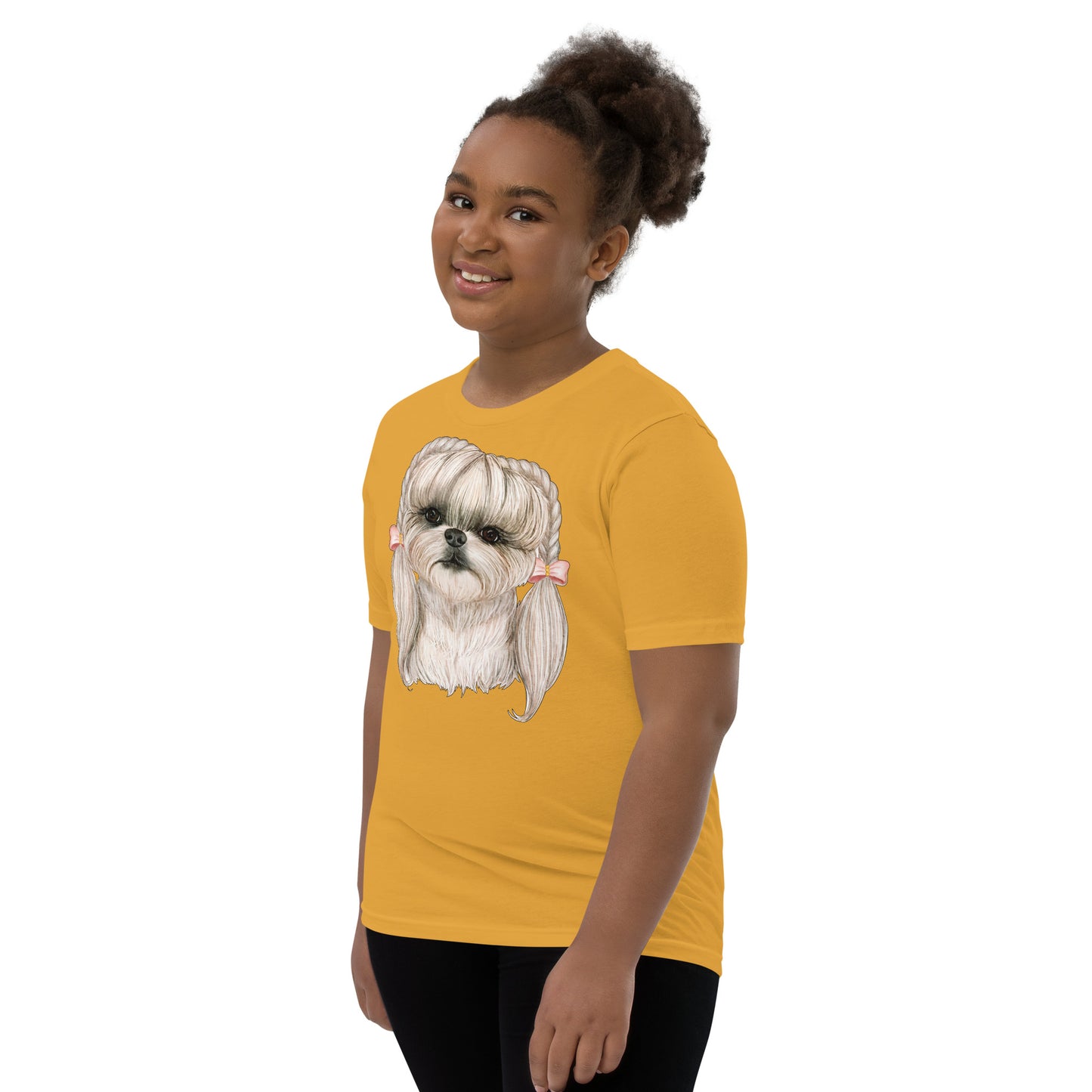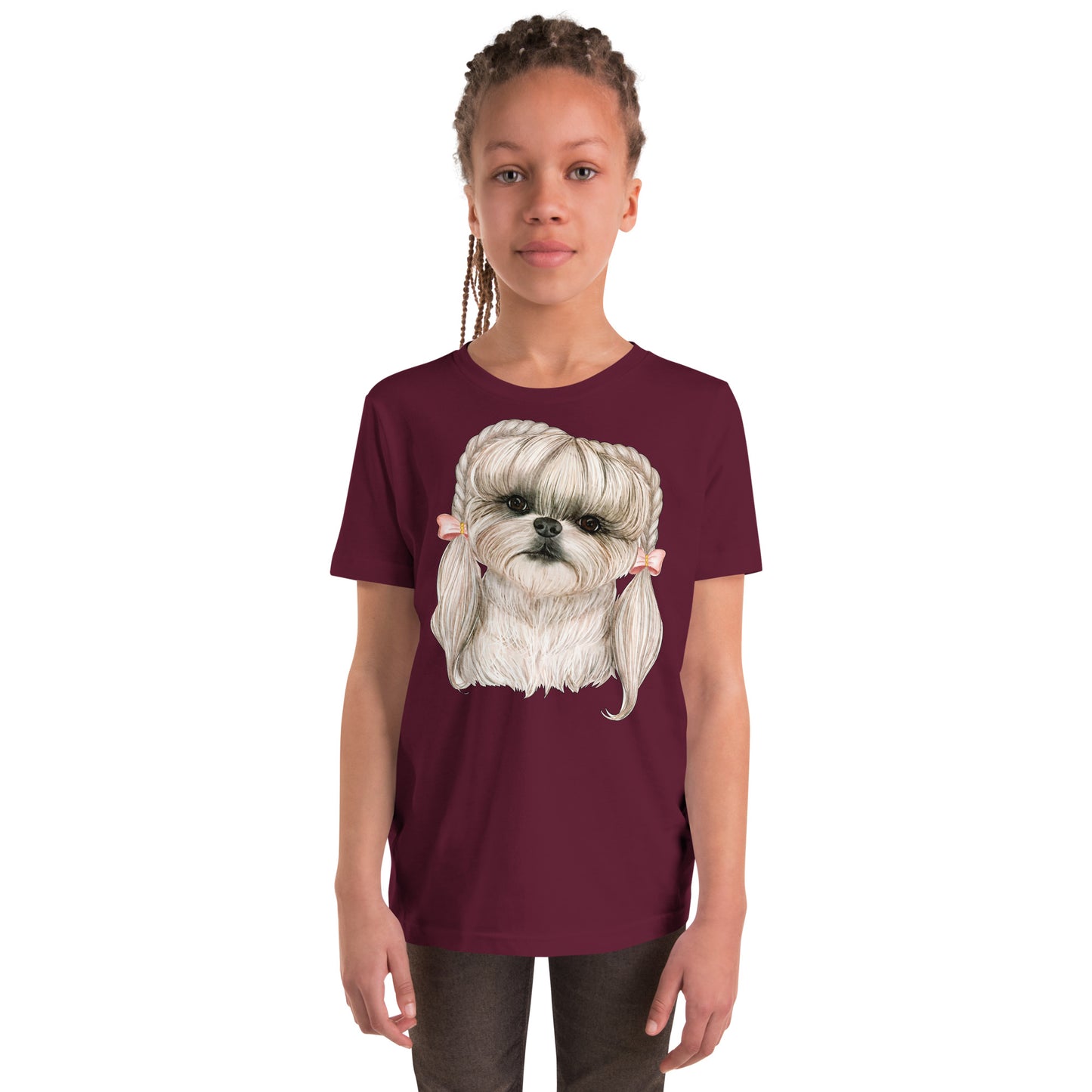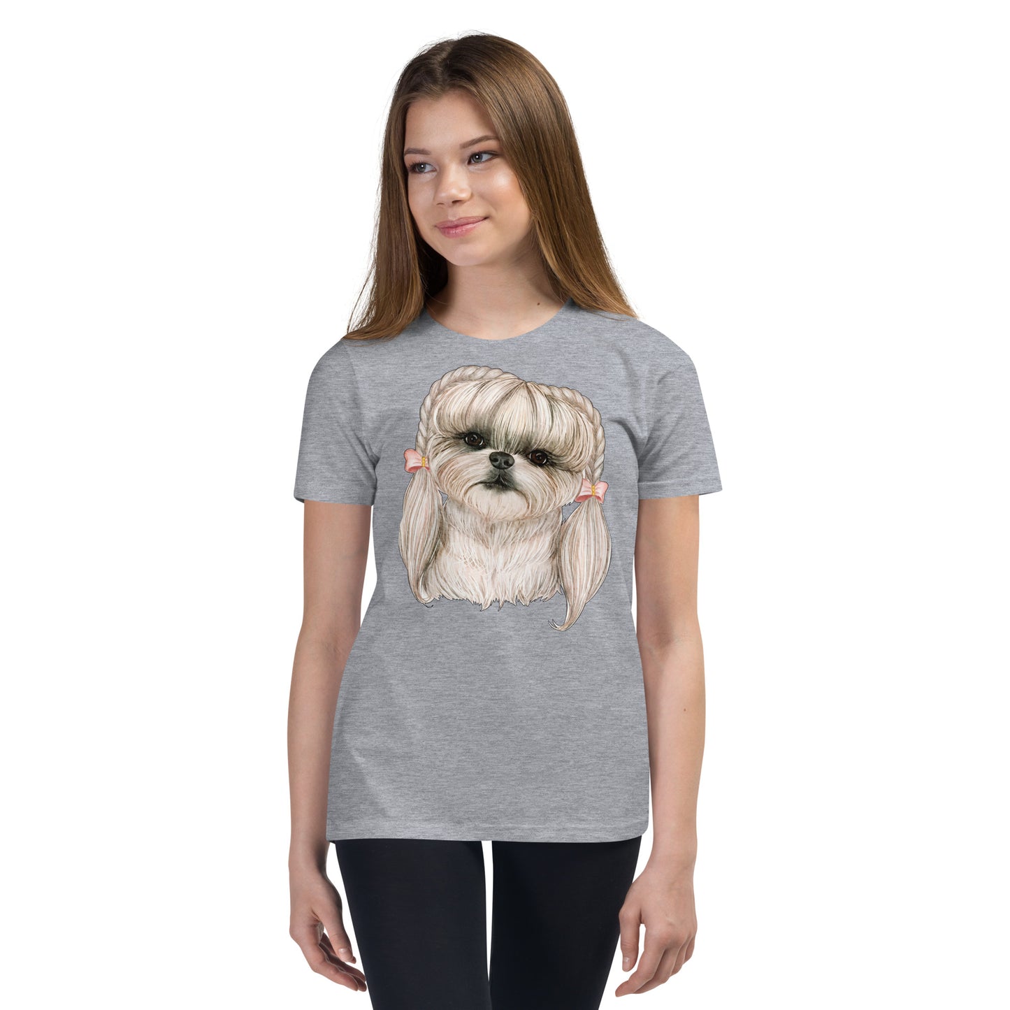 Adorable Dog with Pink Hair Braids Ribbon T-Shirt, No. 0565
