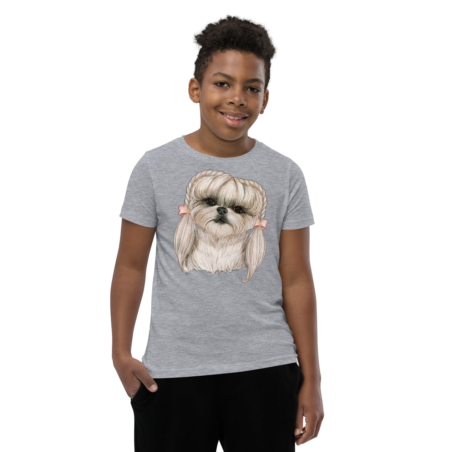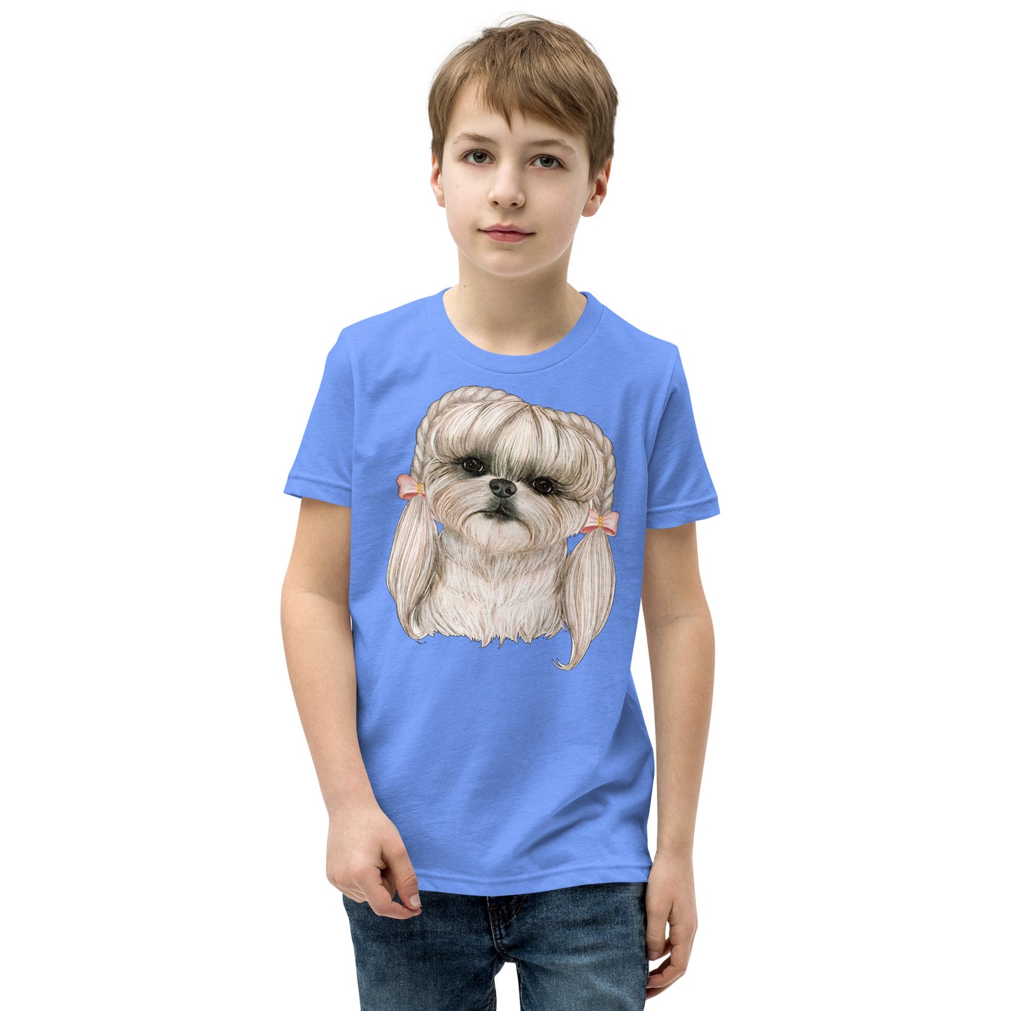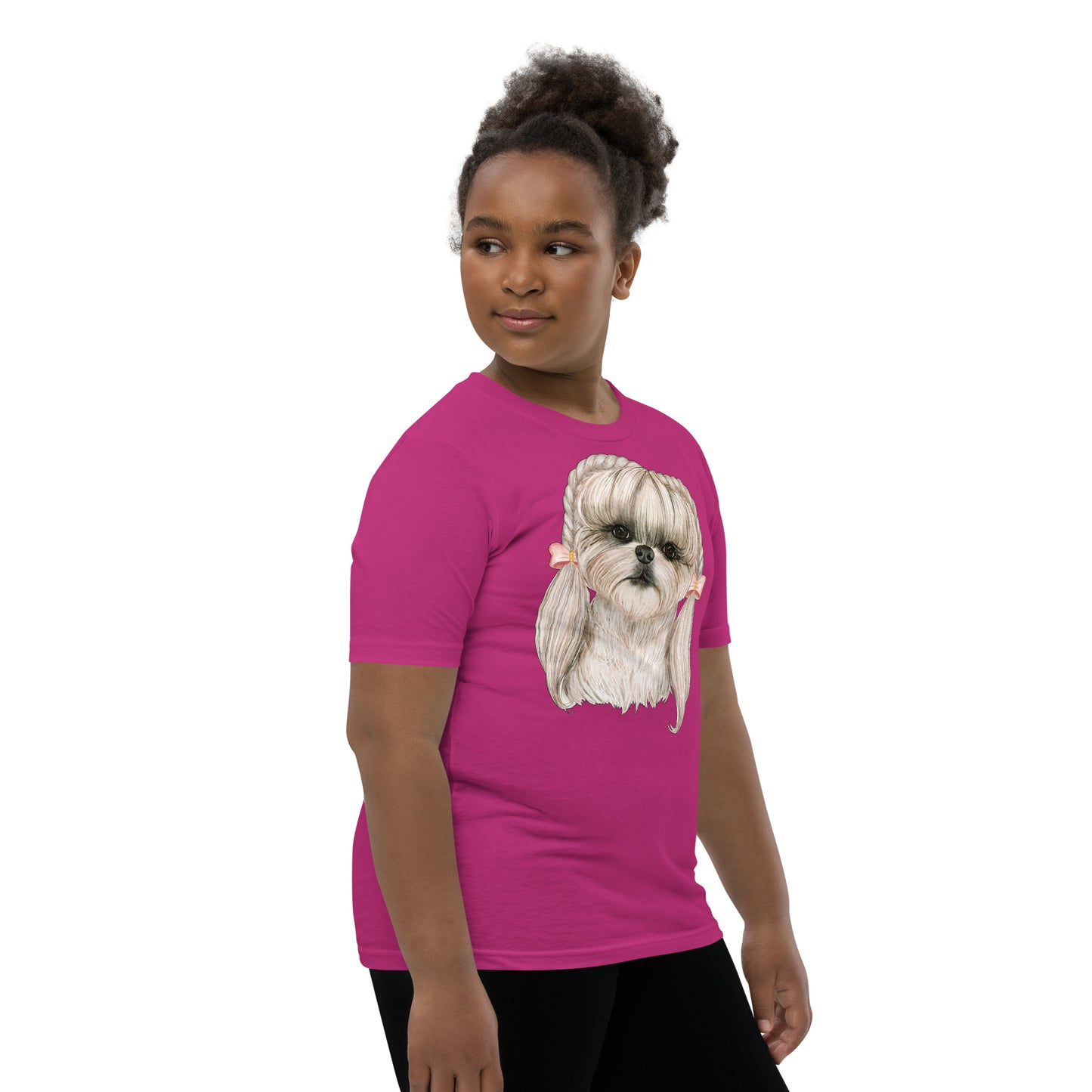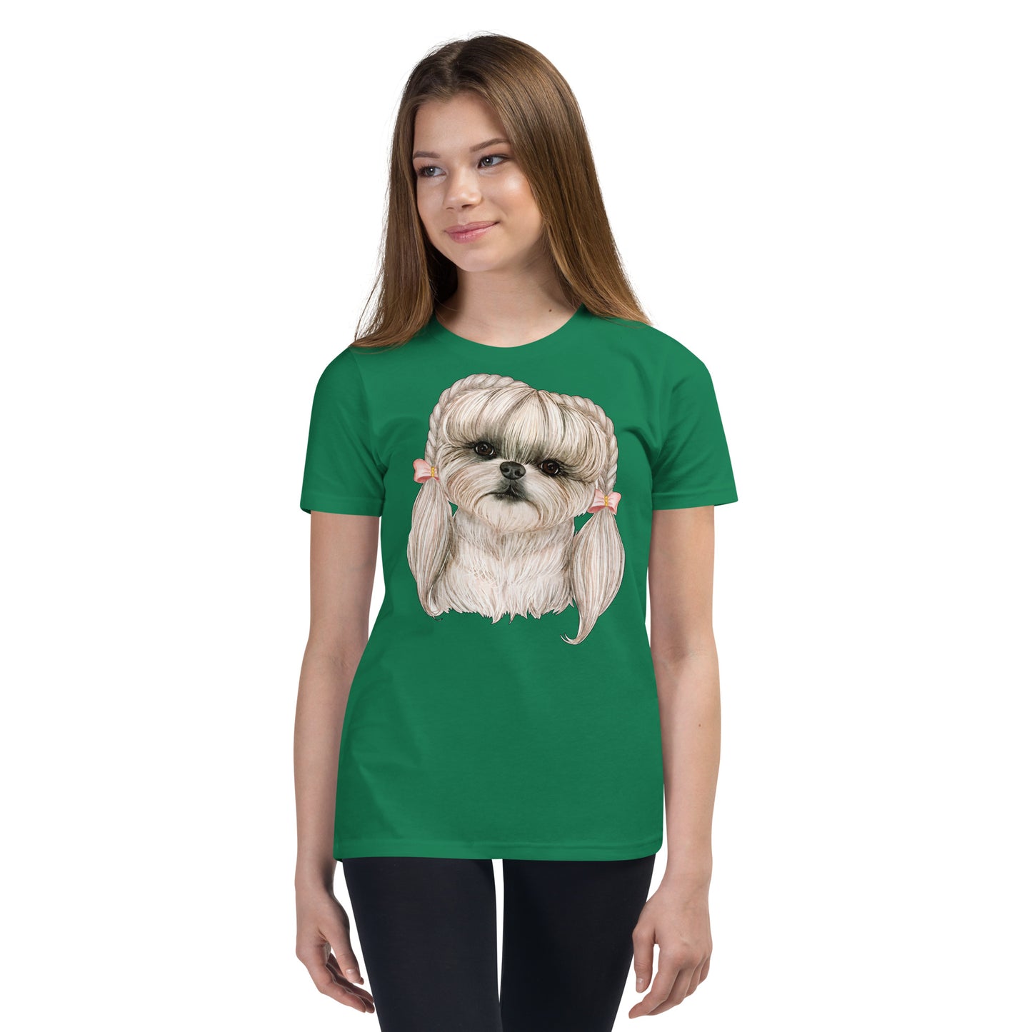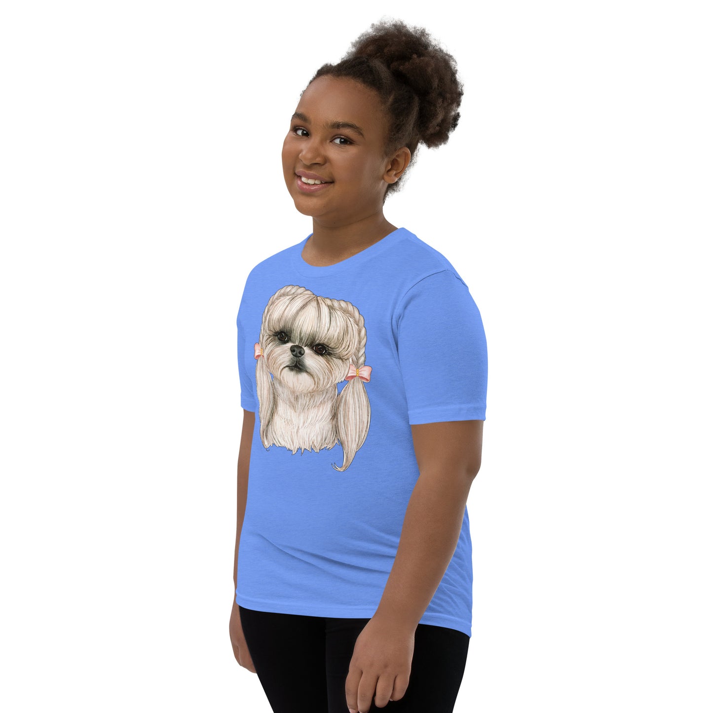 Adorable Dog with Pink Hair Braids Ribbon T-Shirt, No. 0565