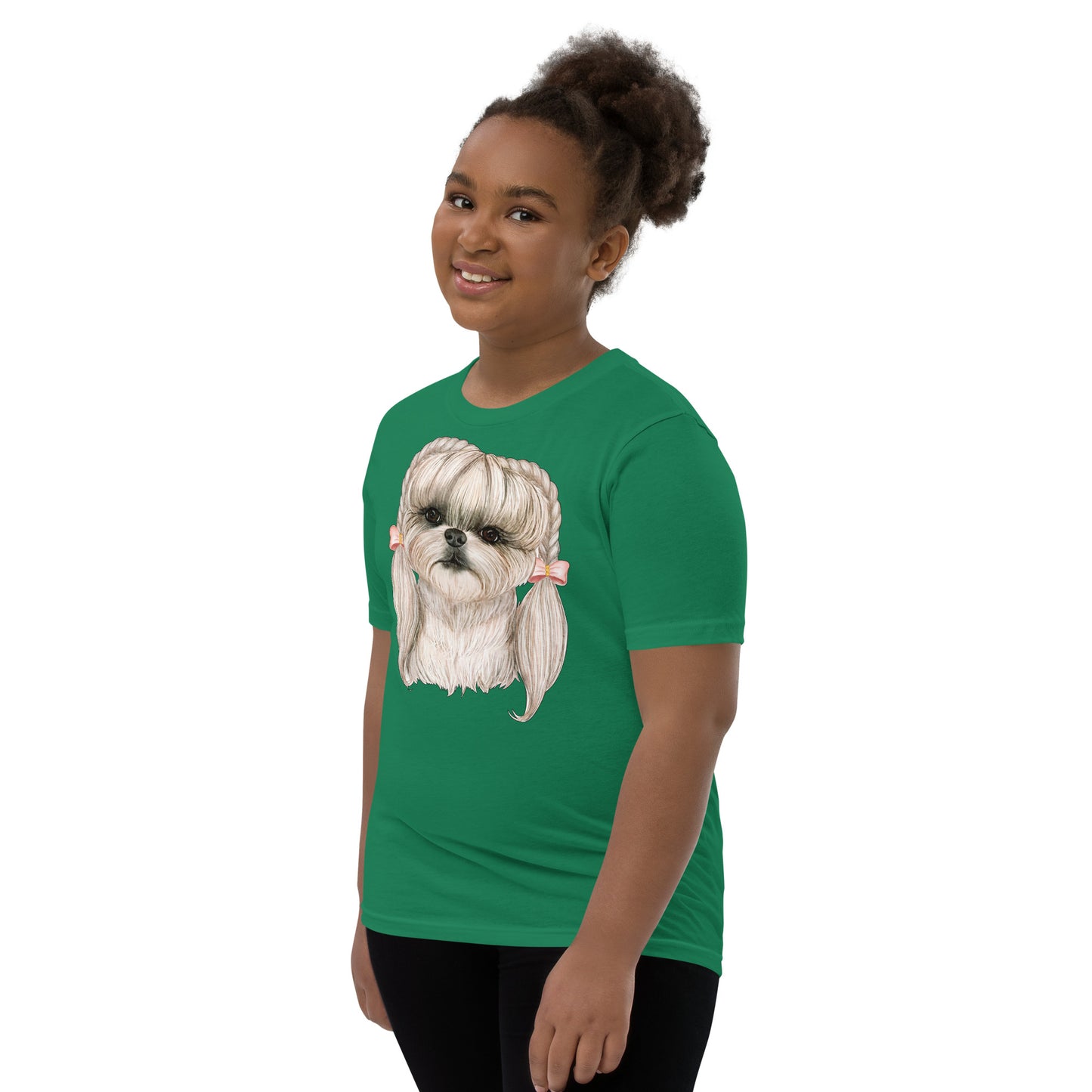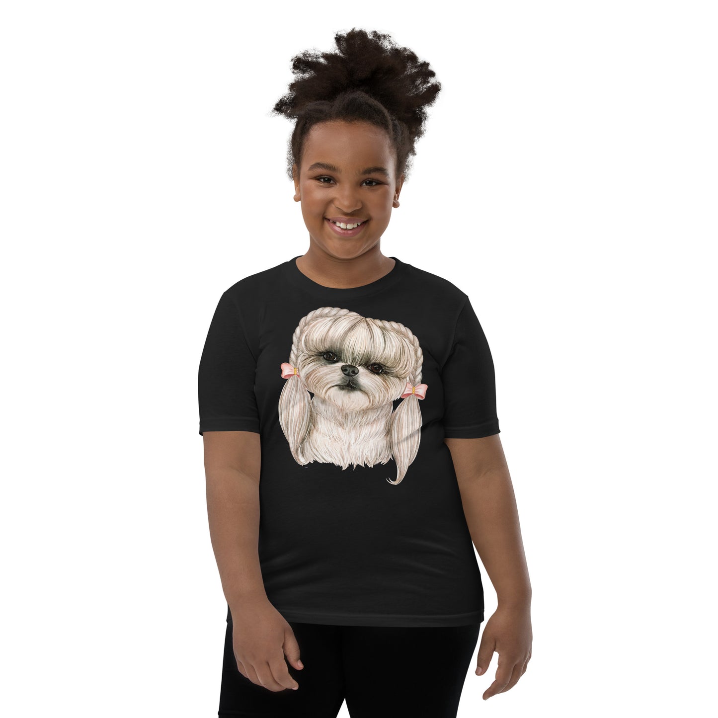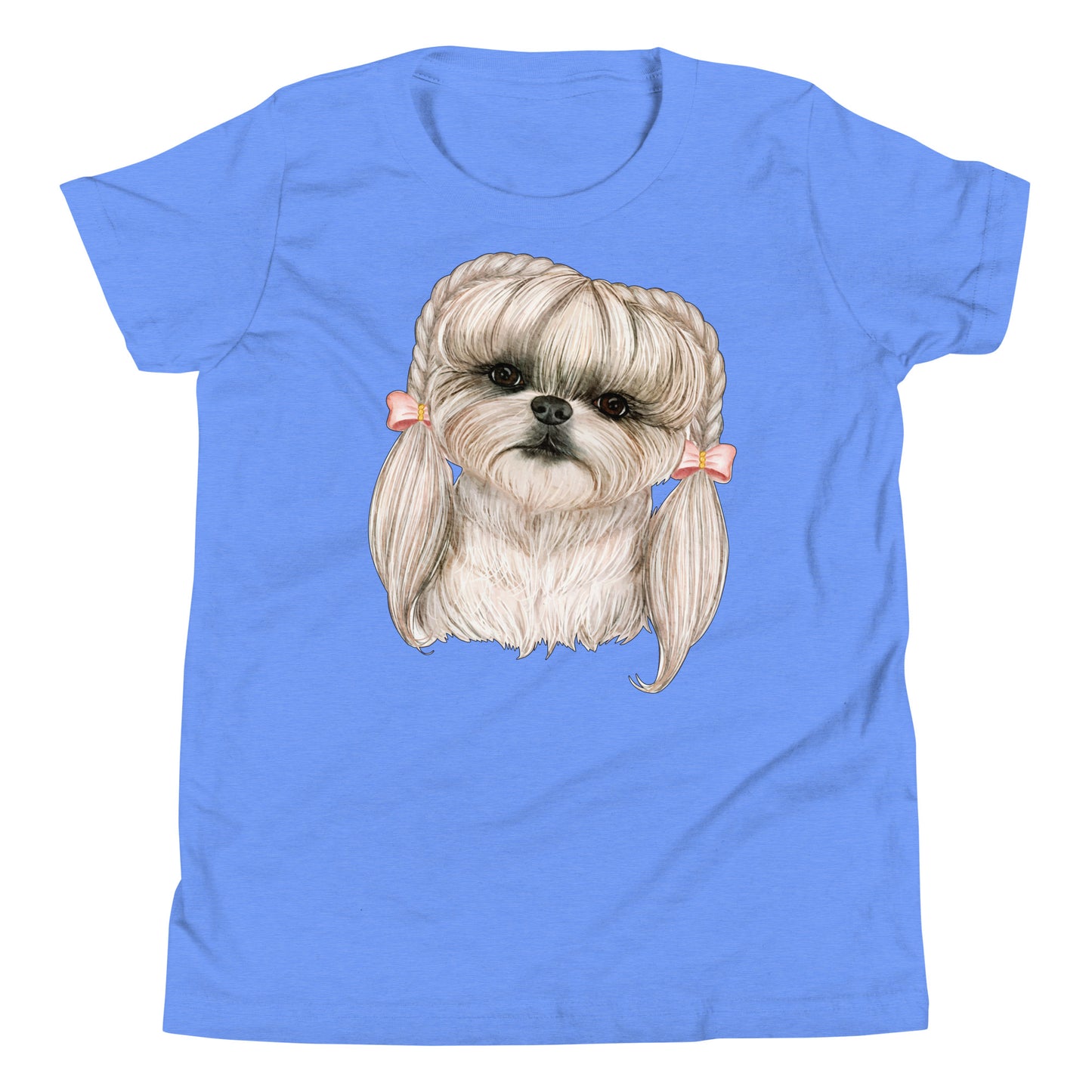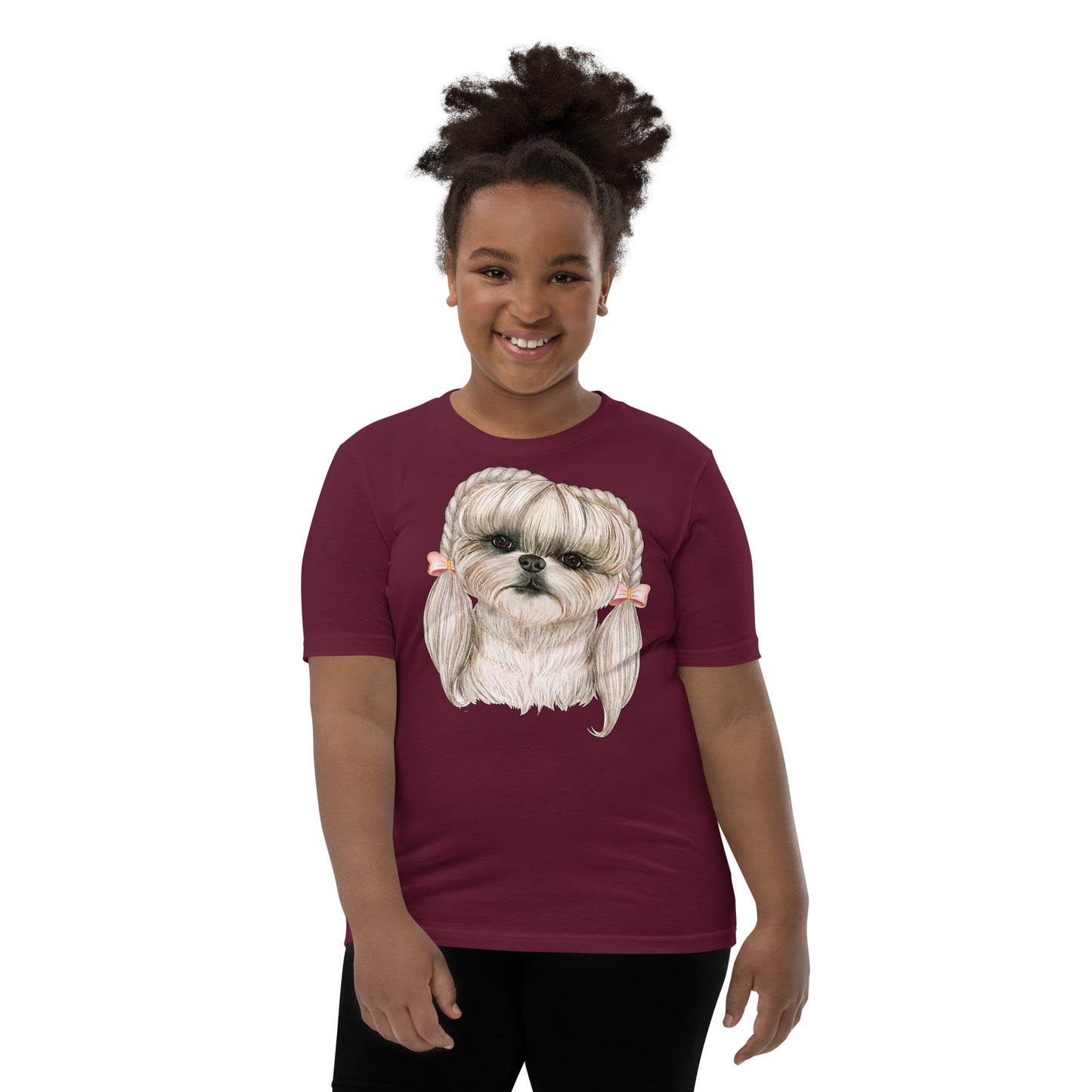 Adorable Dog with Pink Hair Braids Ribbon T-Shirt, No. 0565