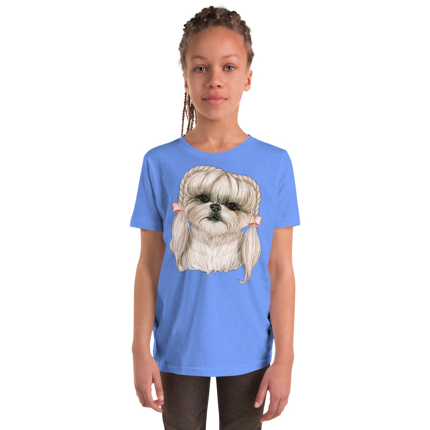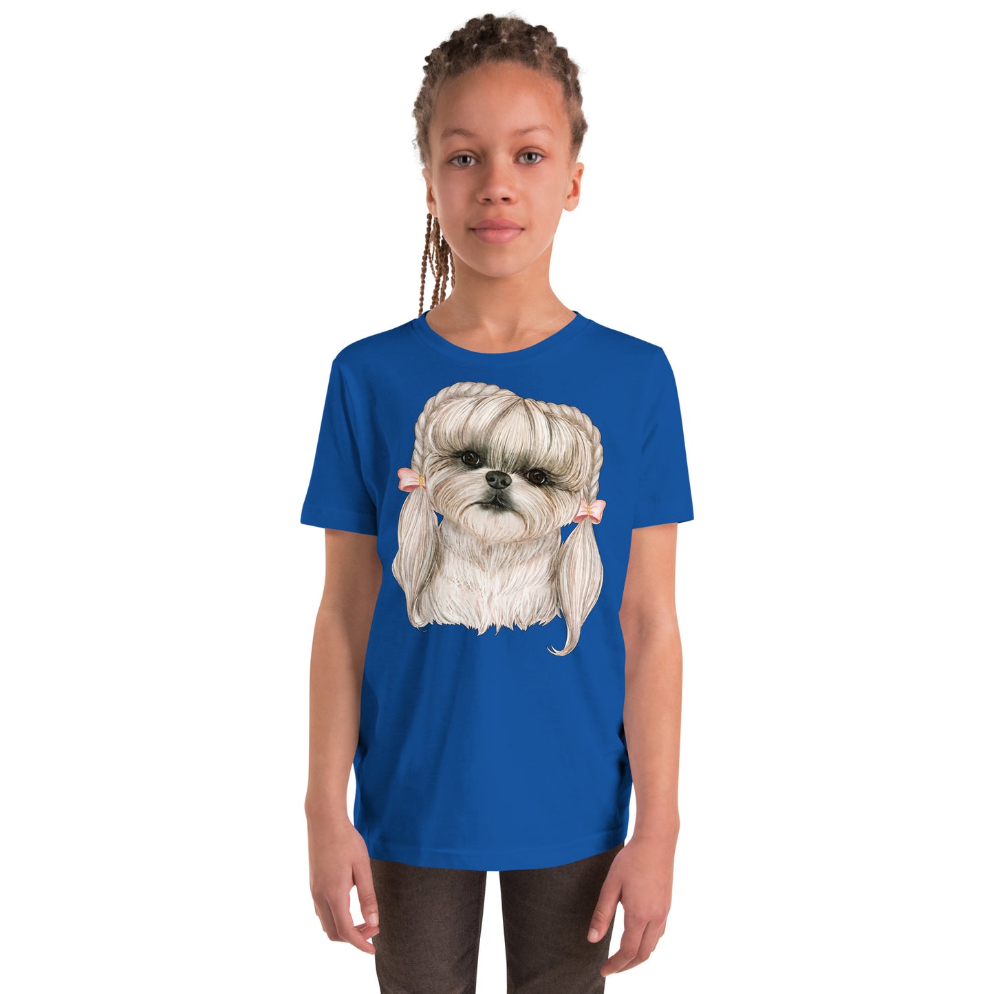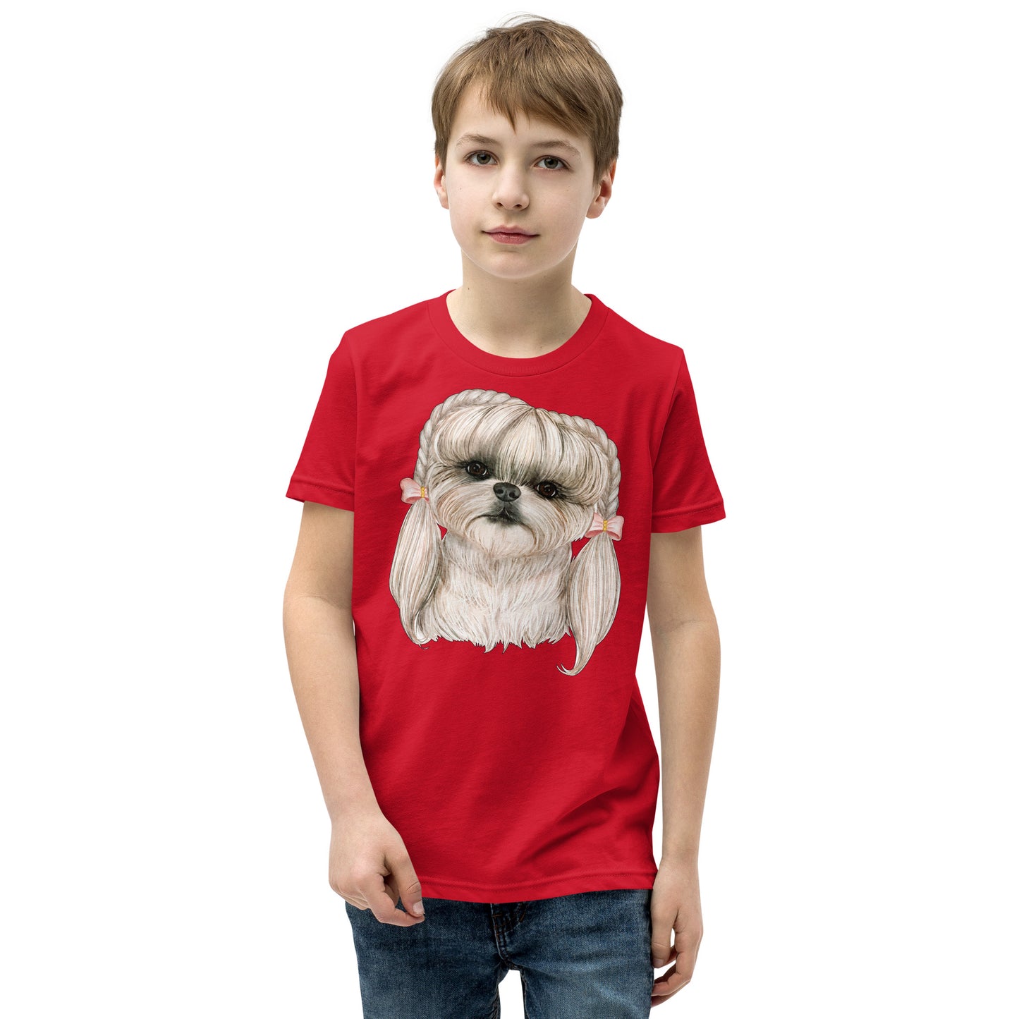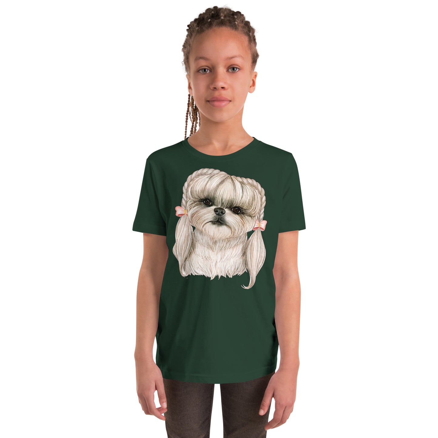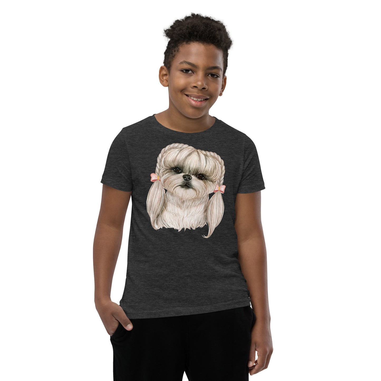 Adorable Dog with Pink Hair Braids Ribbon T-Shirt, No. 0565