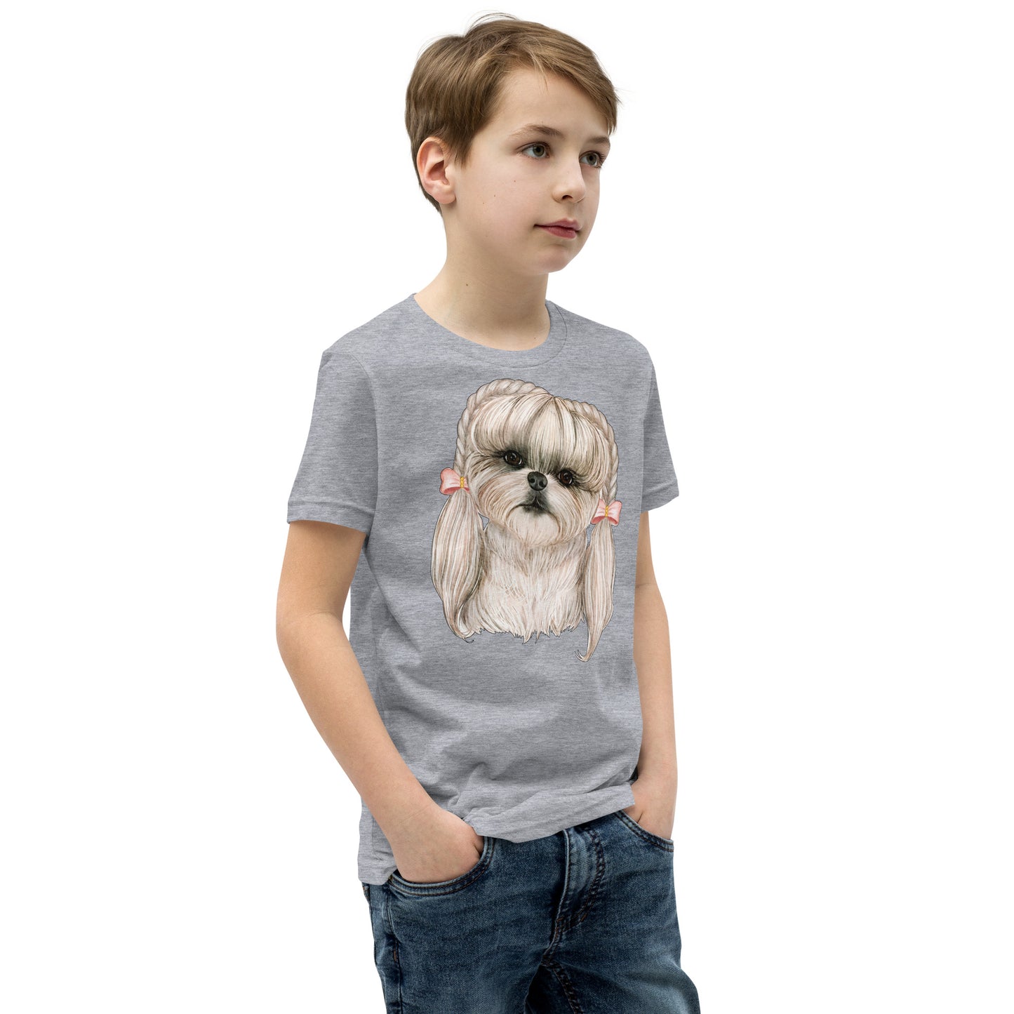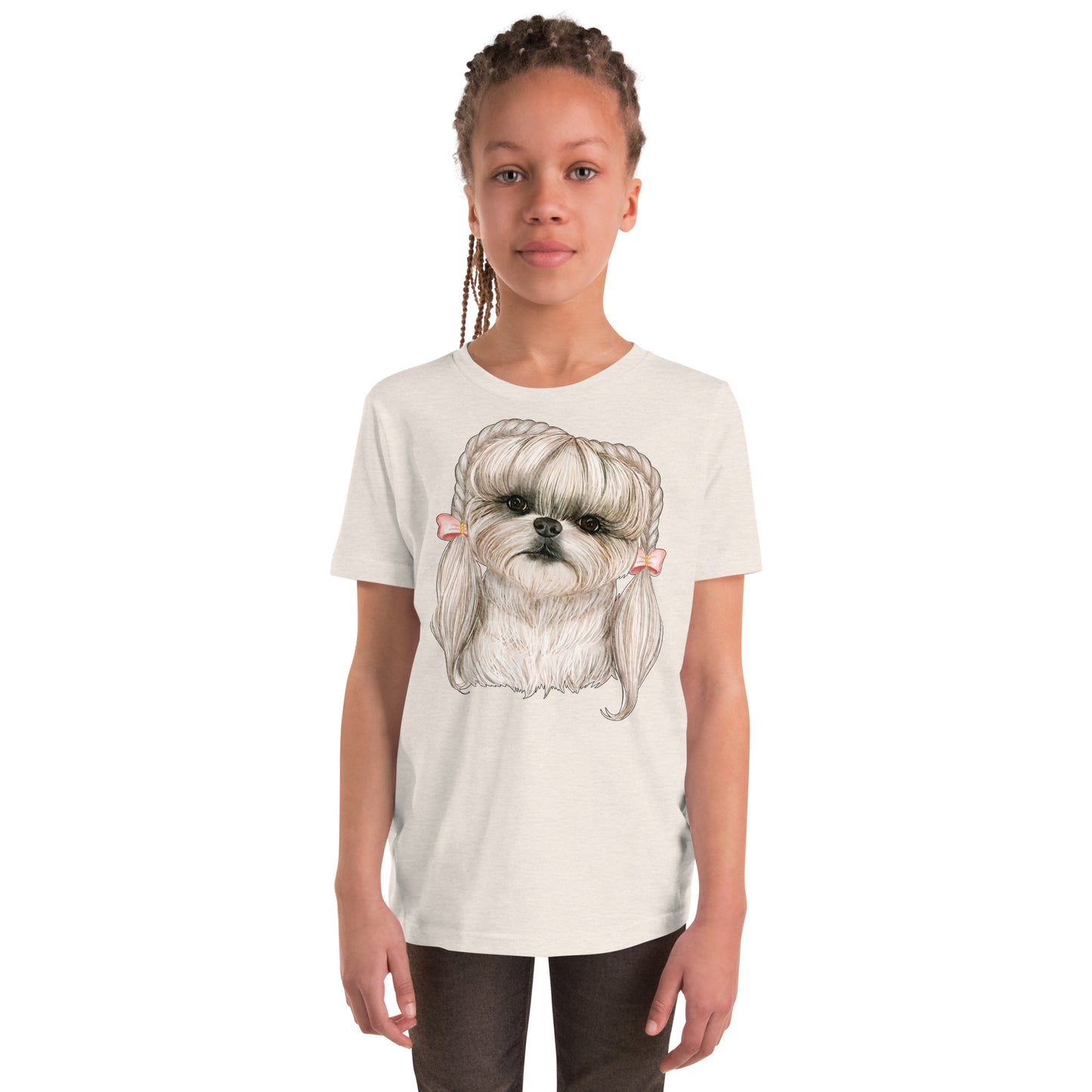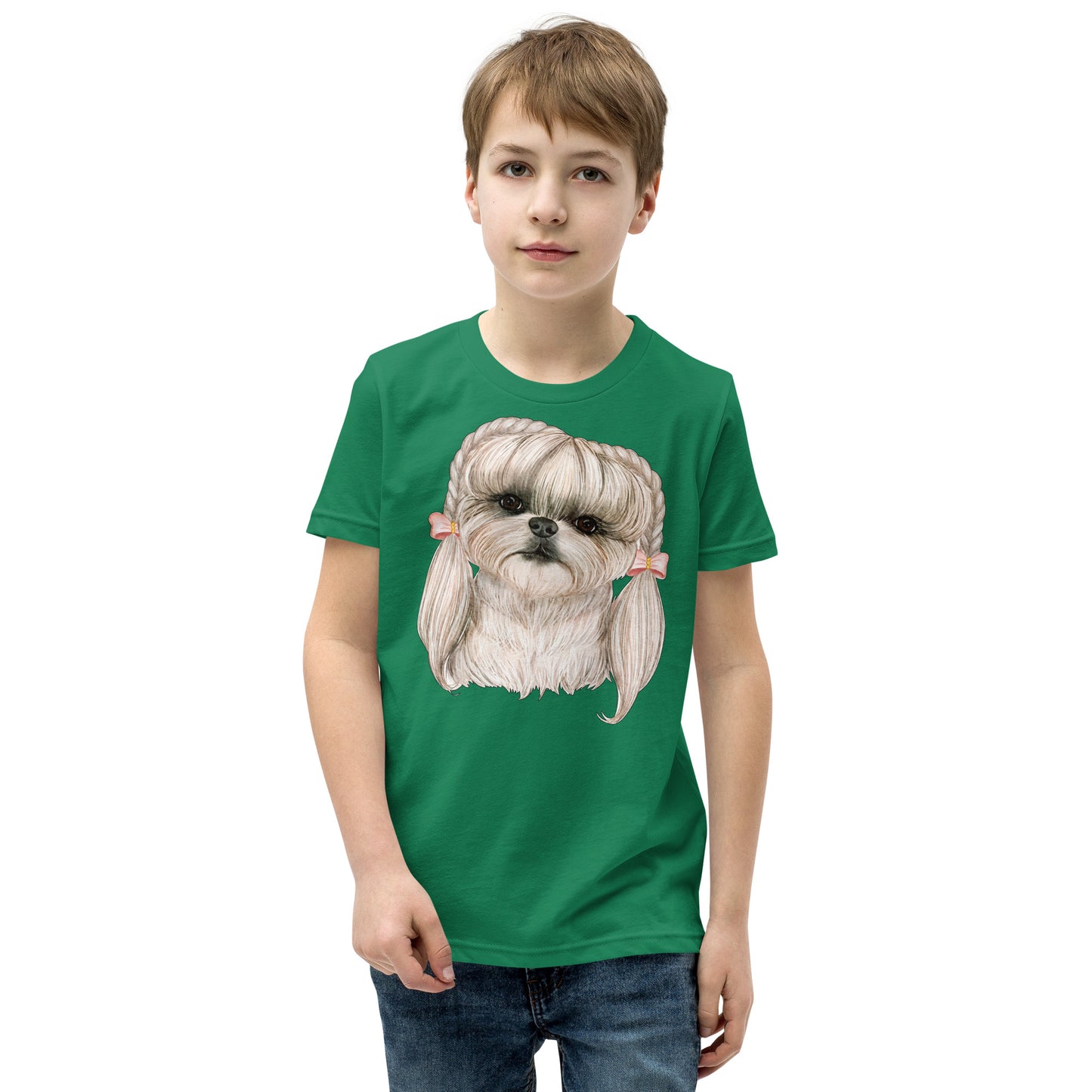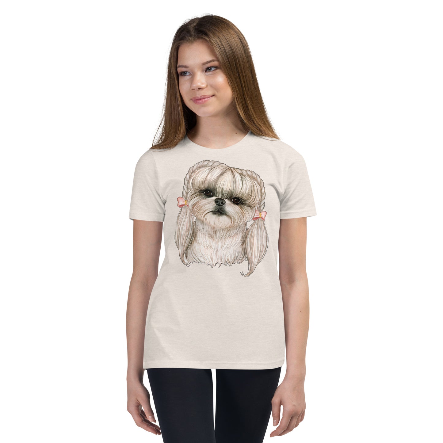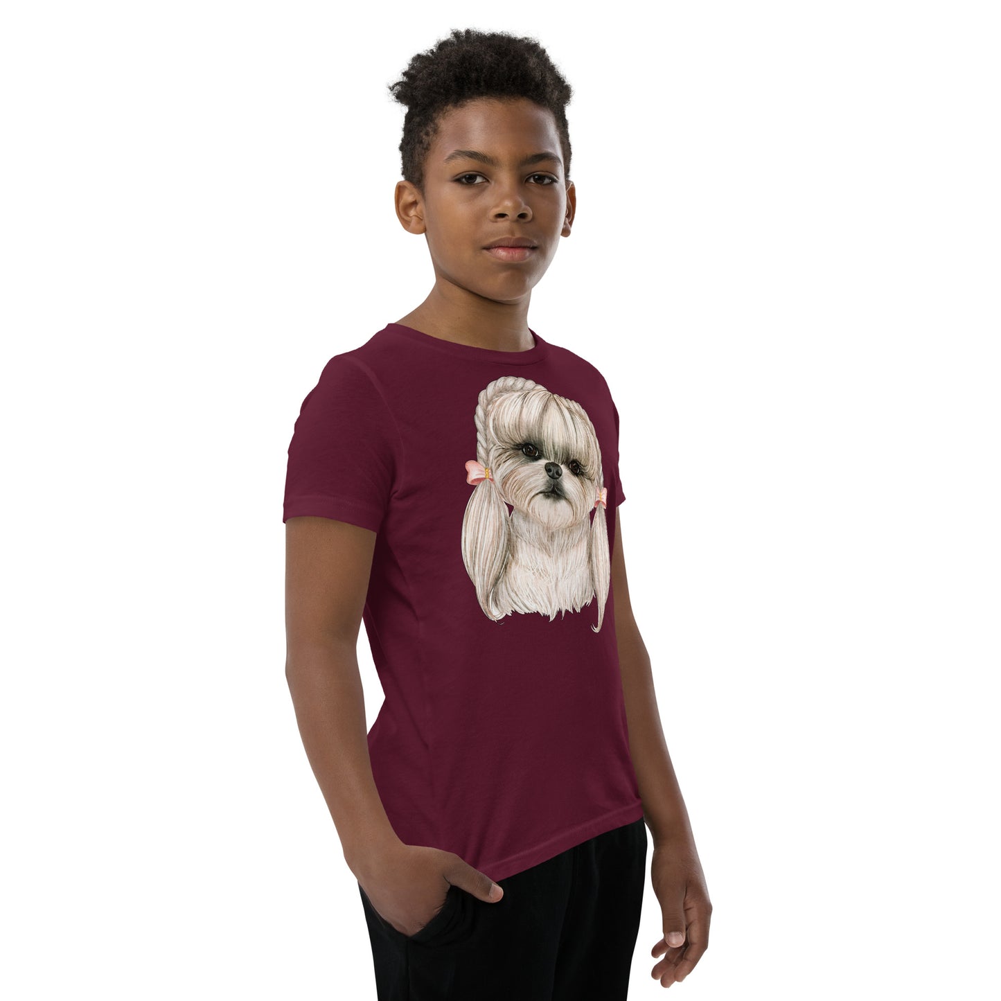 Adorable Dog with Pink Hair Braids Ribbon T-Shirt, No. 0565