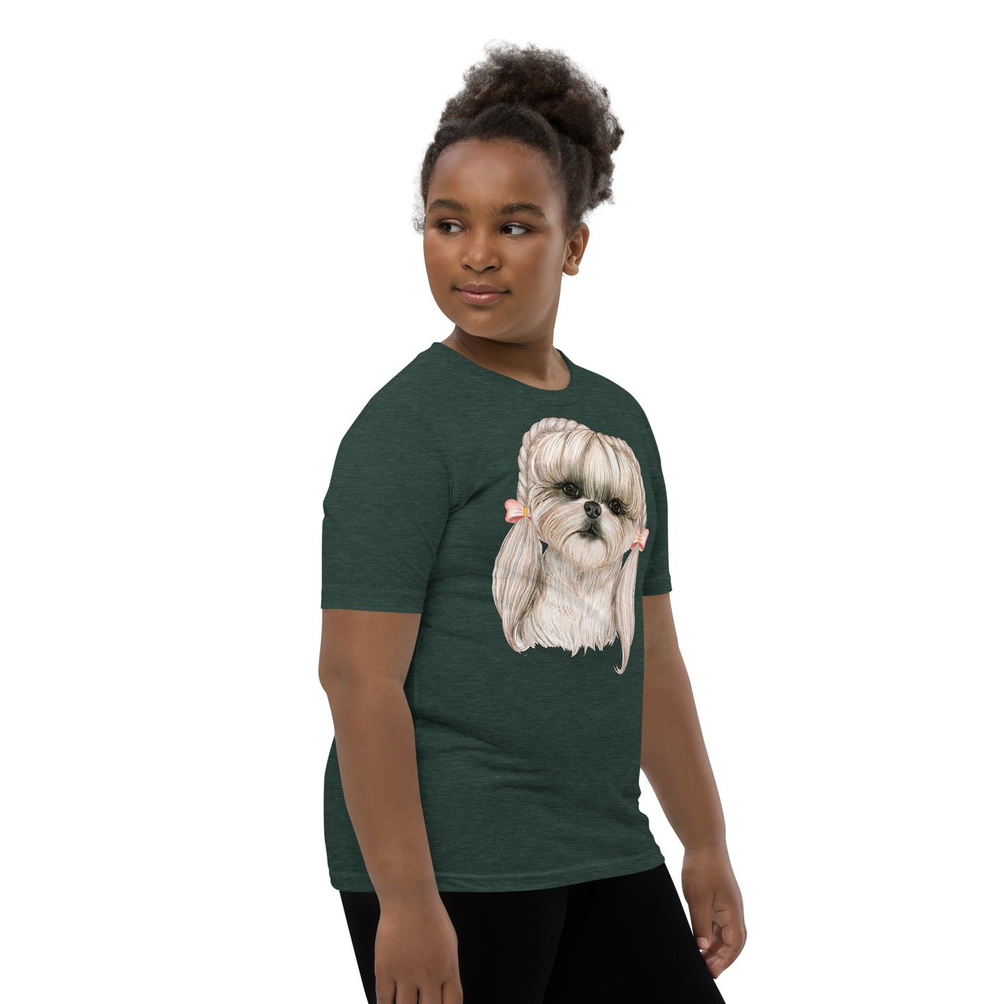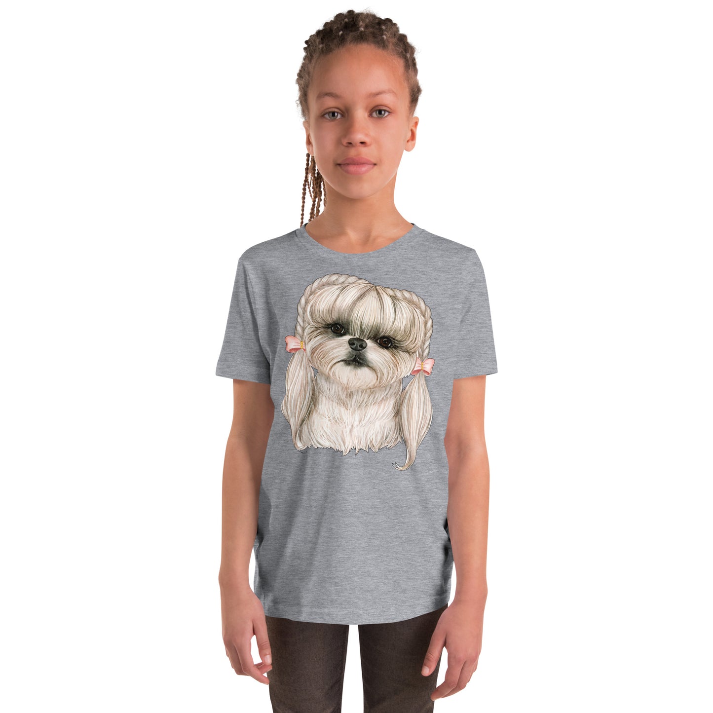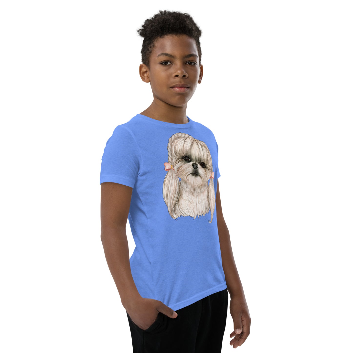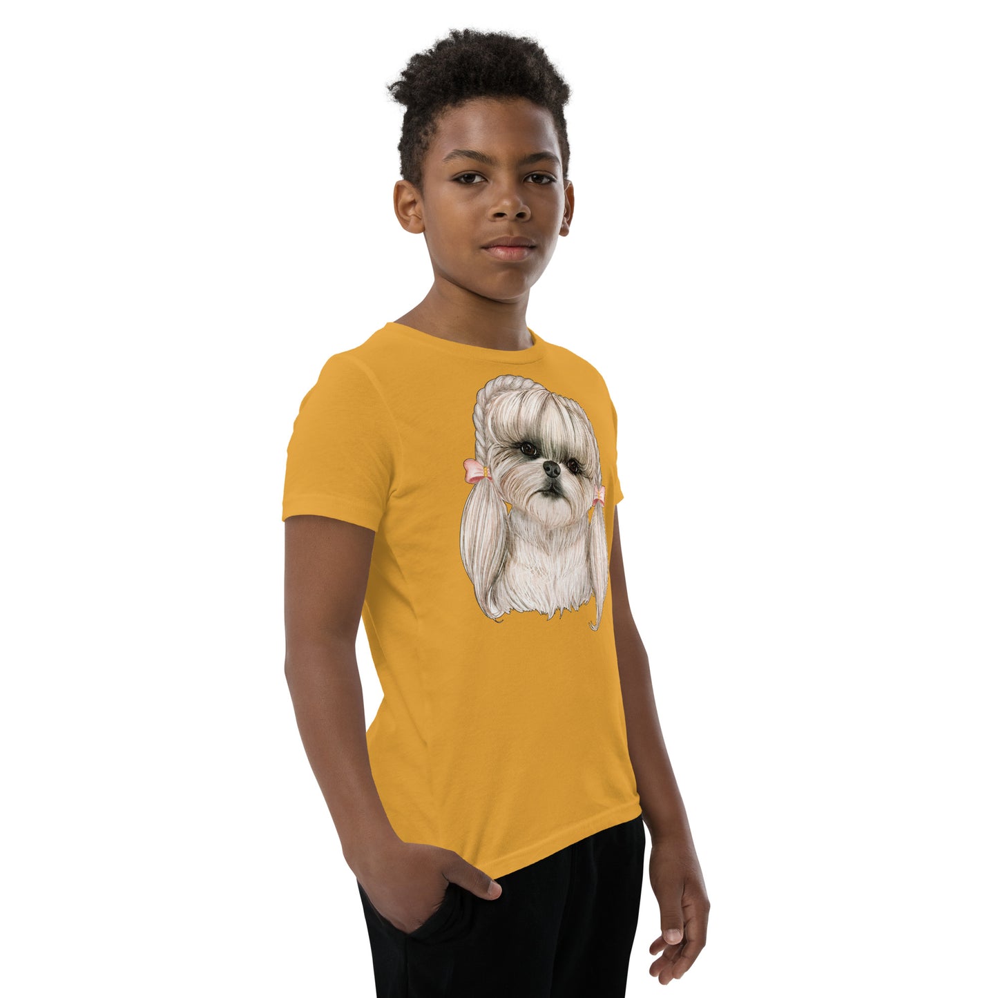 Adorable Dog with Pink Hair Braids Ribbon T-Shirt, No. 0565