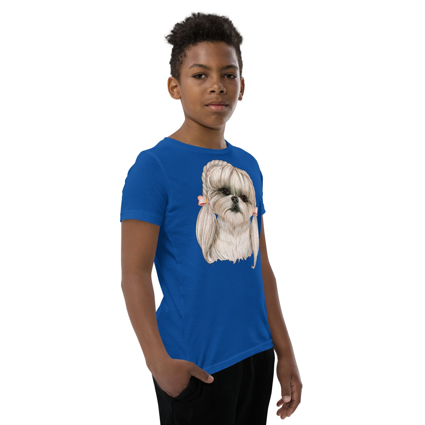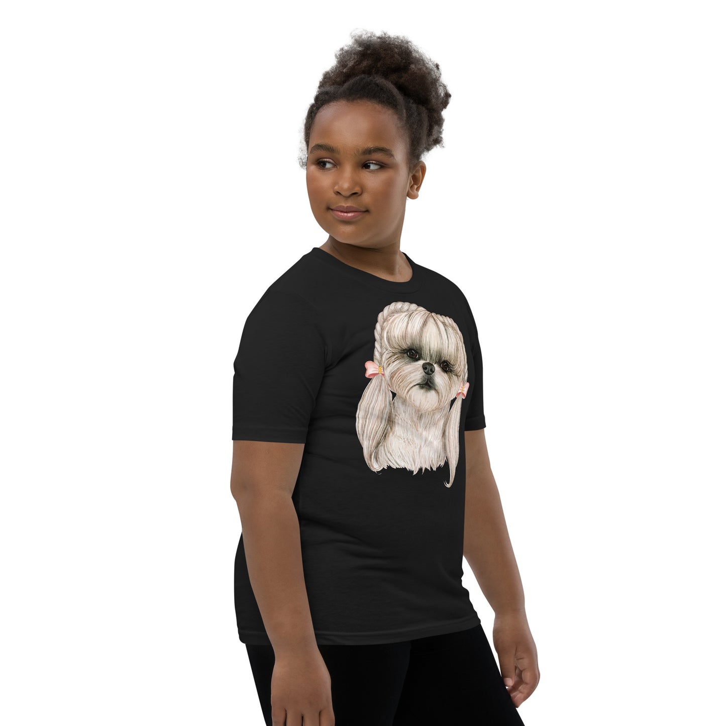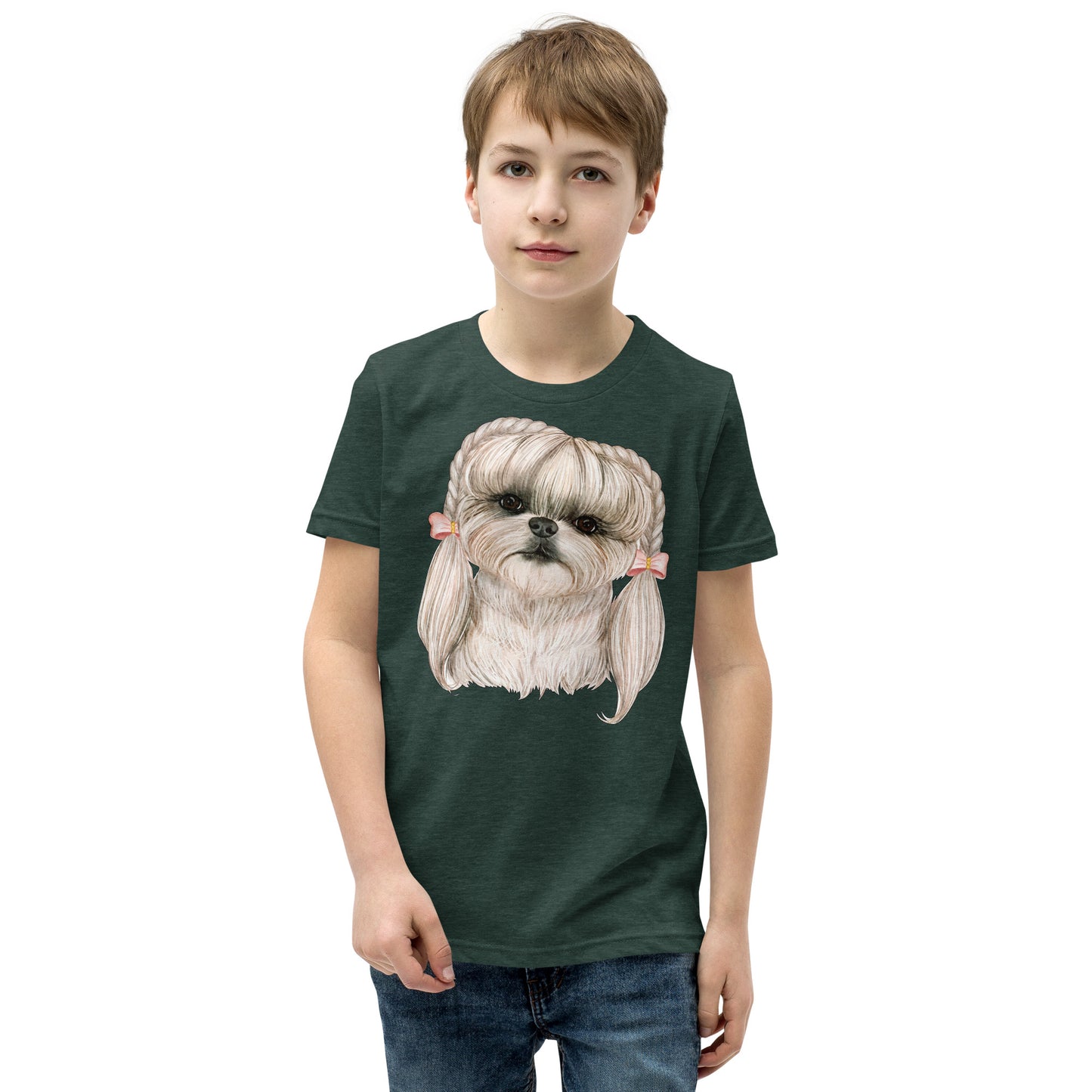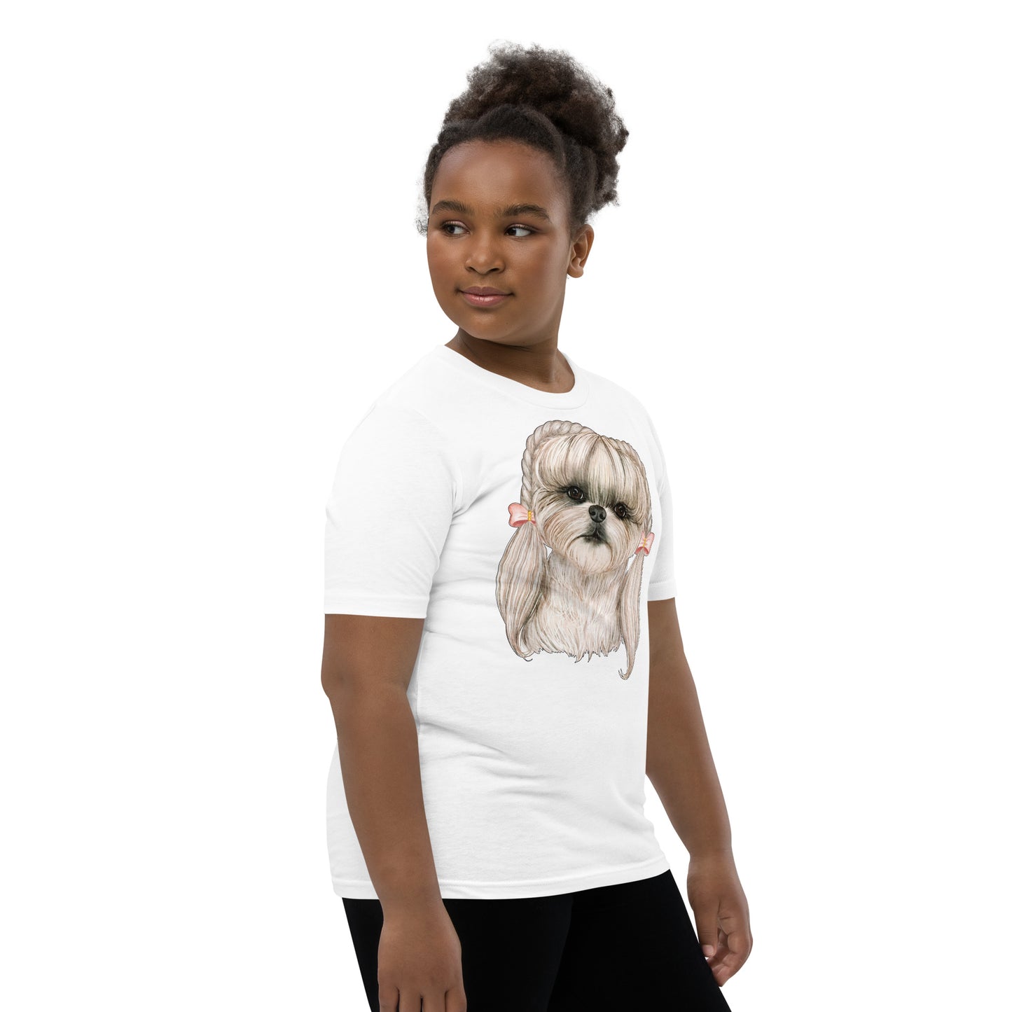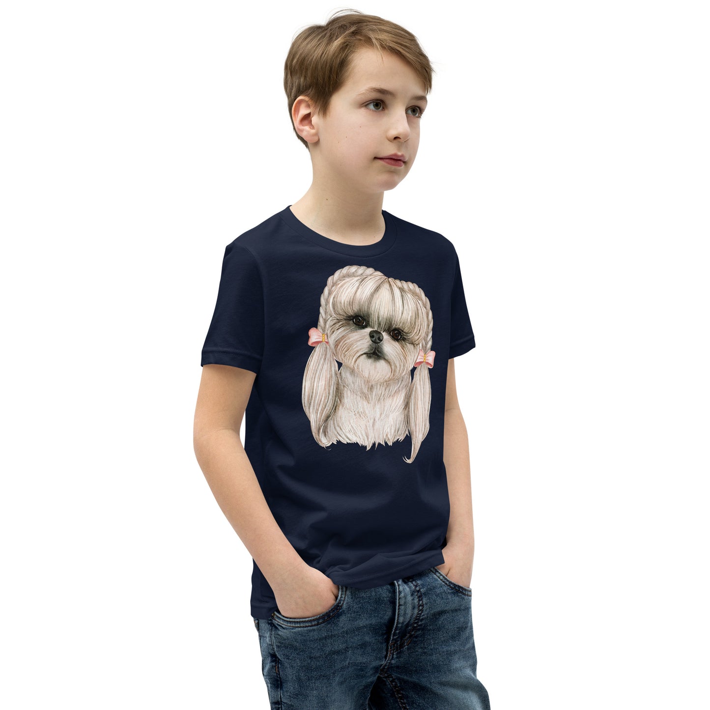 Adorable Dog with Pink Hair Braids Ribbon T-Shirt, No. 0565