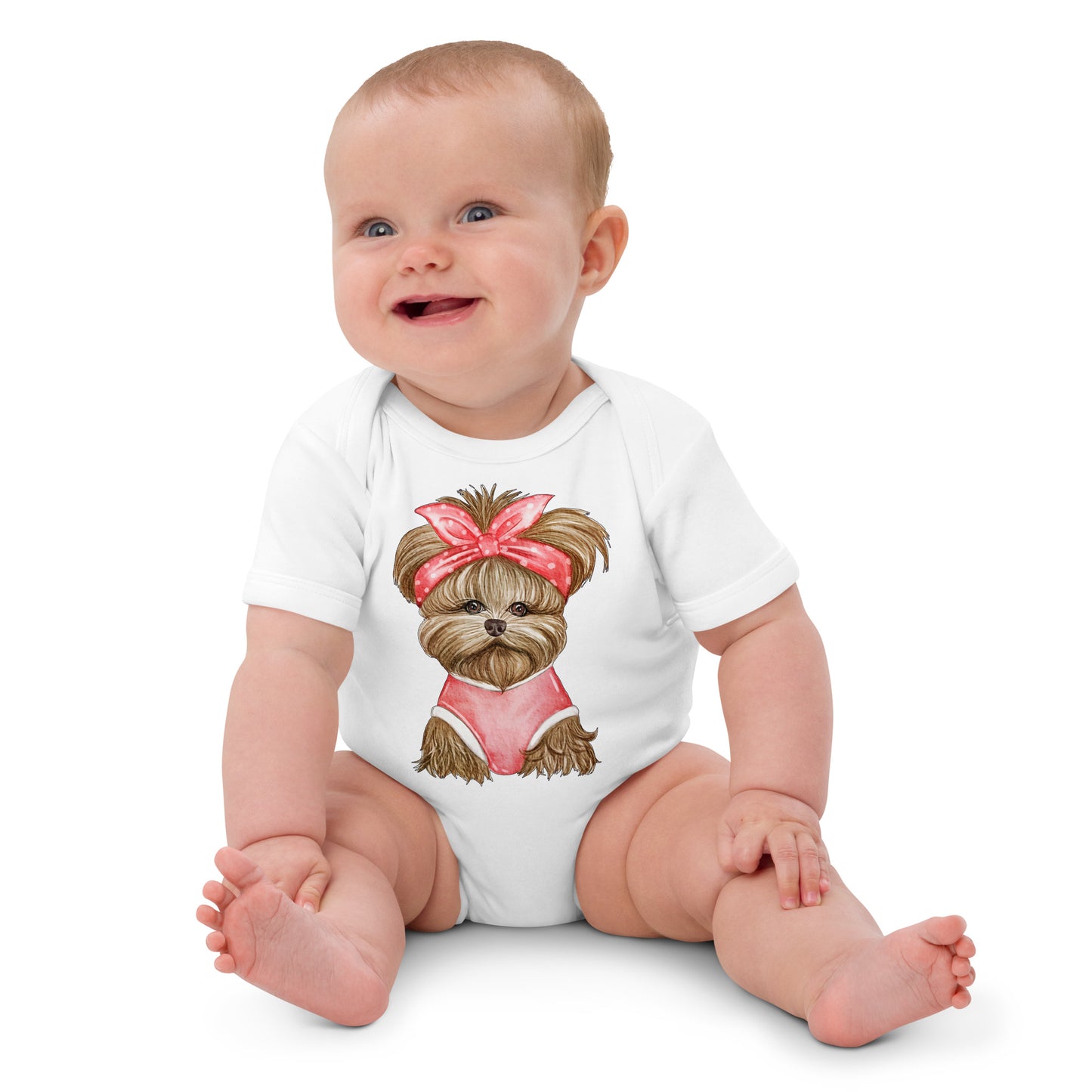 Adorable Dog with Red Ribbon Bodysuit, No. 0566