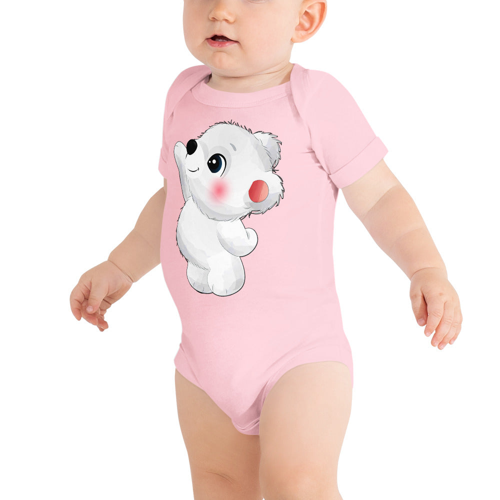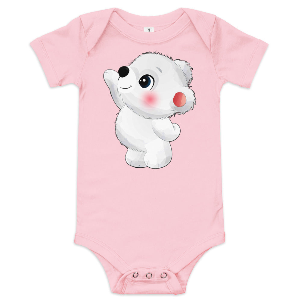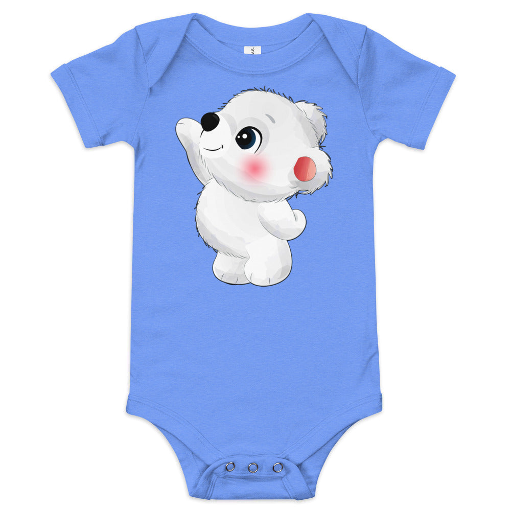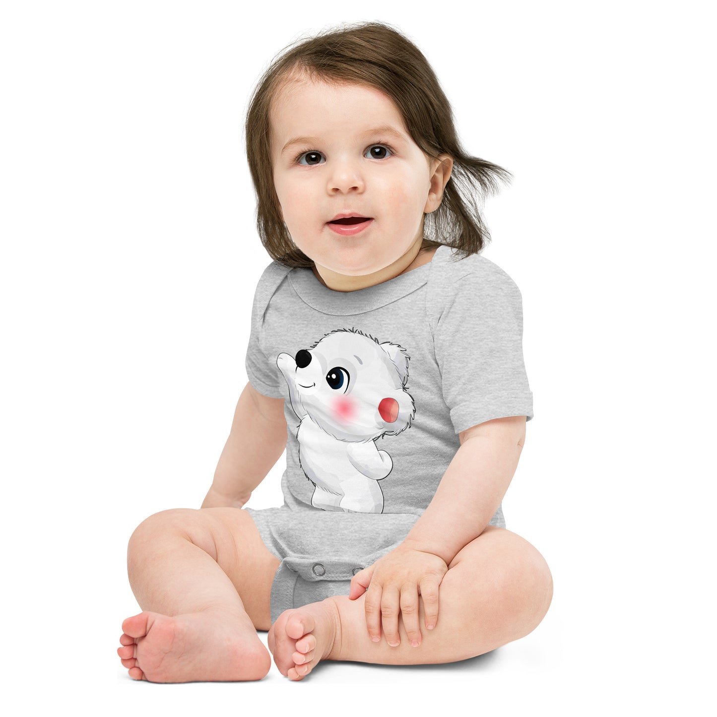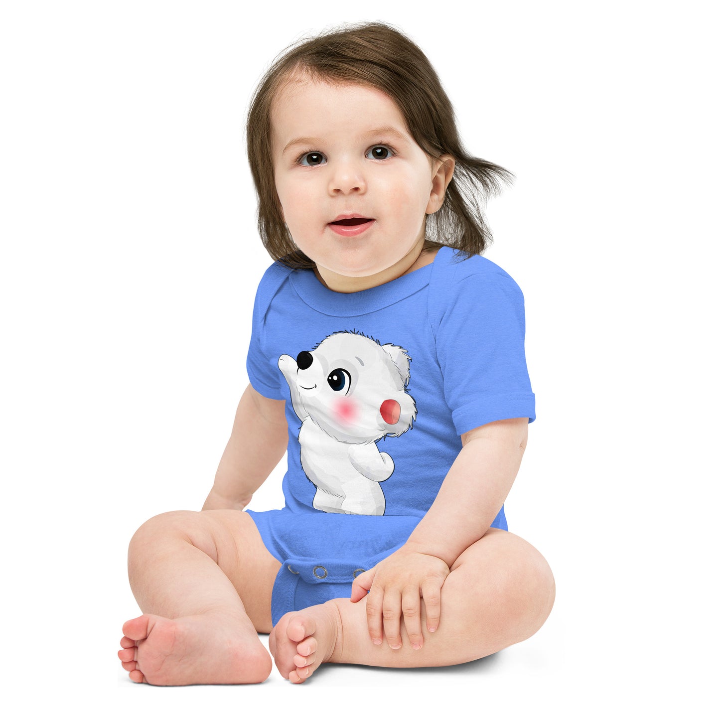 Dress your baby to the nines with this 100% cotton one piece. It has three snap leg closure for easy changing, a comfortable envelope neckline, and a beautiful print that's bound to get the baby all happy and giggling.