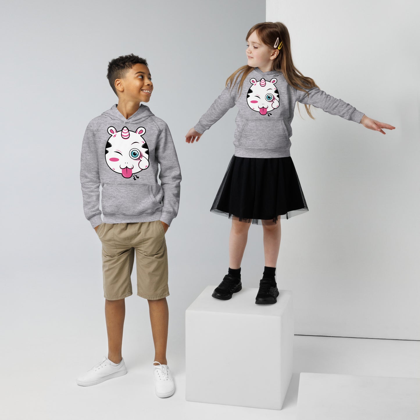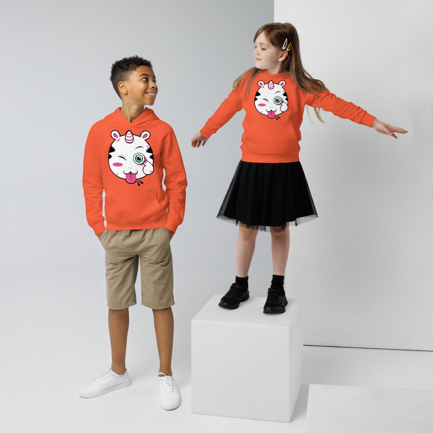 Looking for a comfy hoodie for your little one? This premium quality kids eco hoodie has a front pouch pocket, ribbed cuffs, and a lined hood for additional warmth. It's snug and soft to the touch. What's more, the hoodie is made from organic cotton and recycled polyester, making it a more earth-friendly fashion choice!