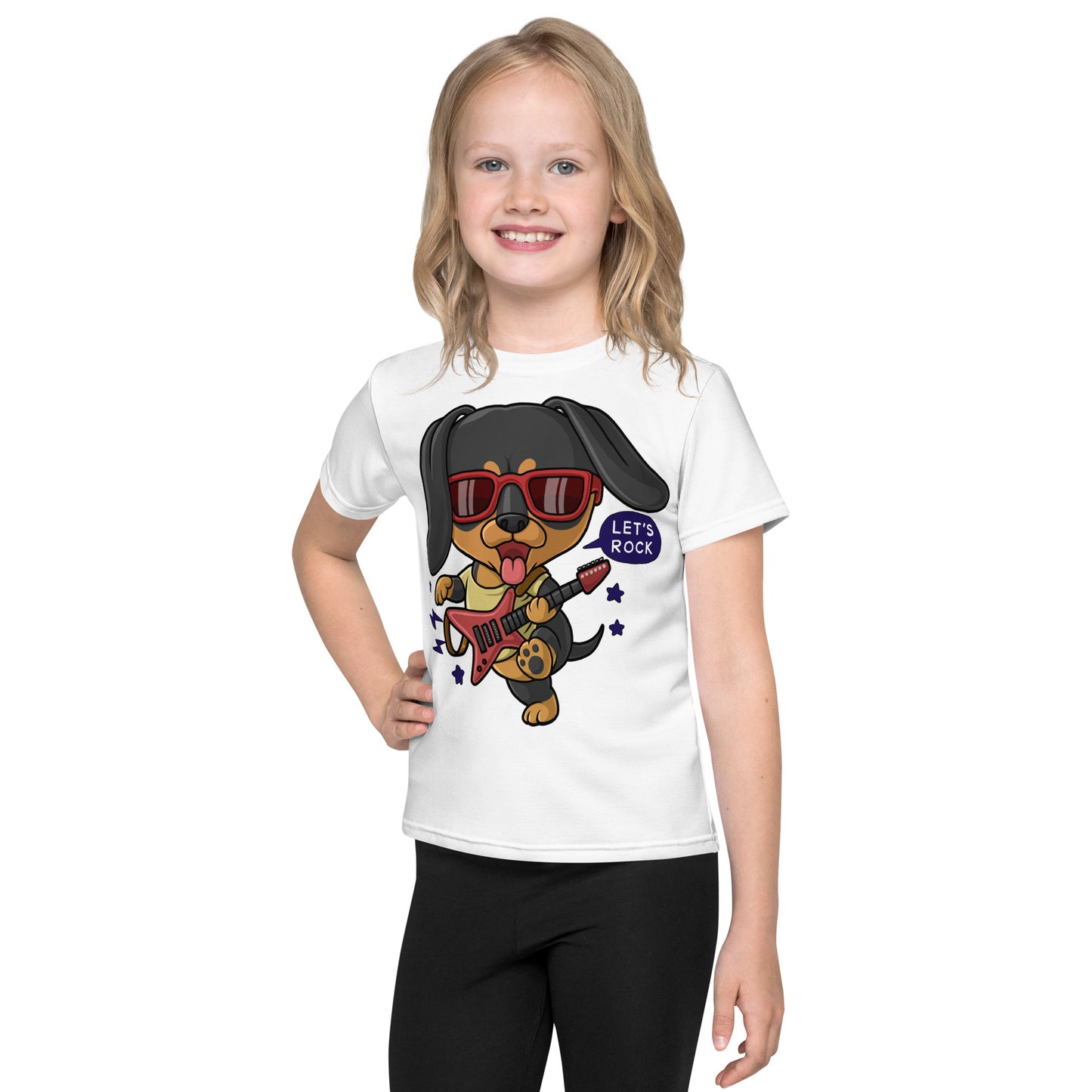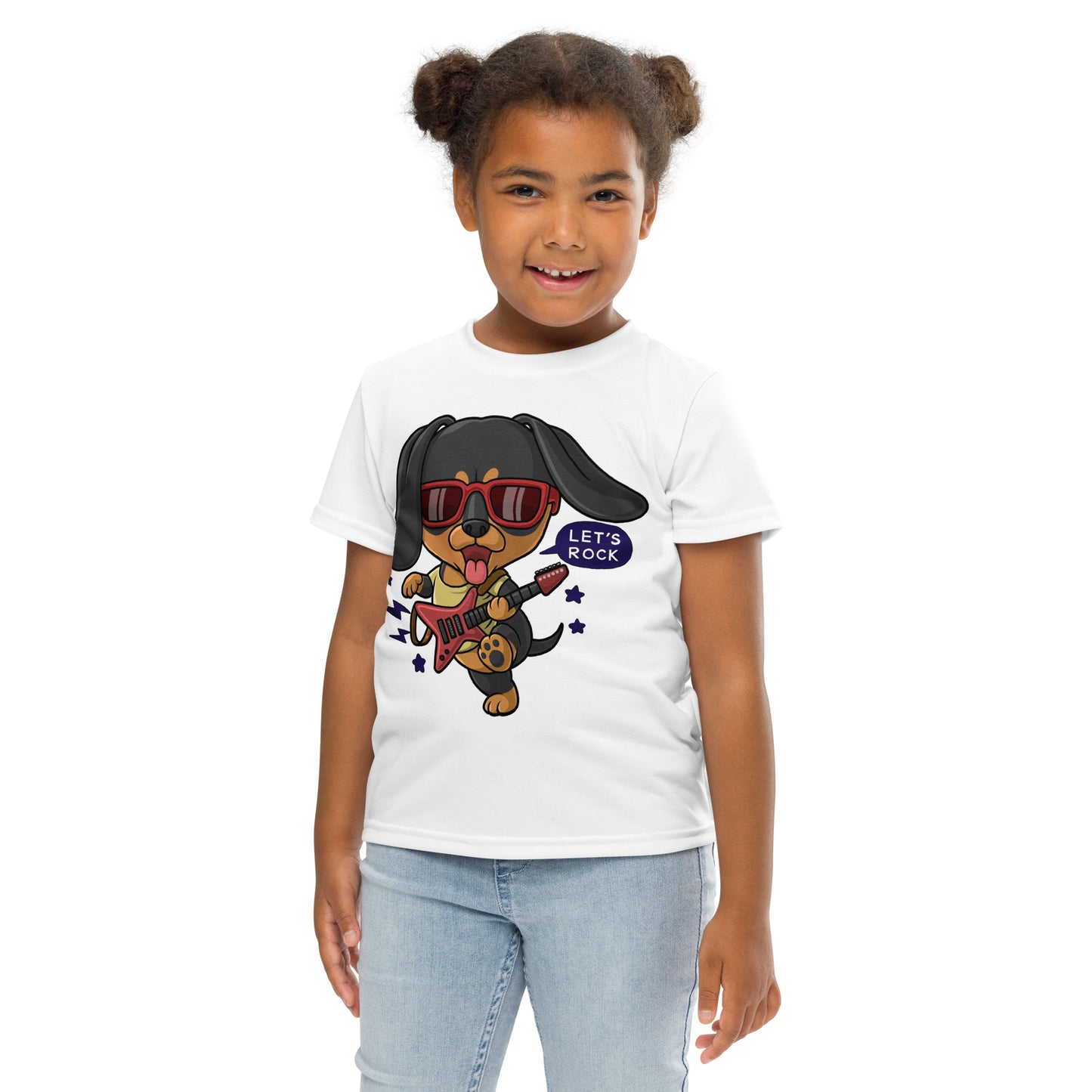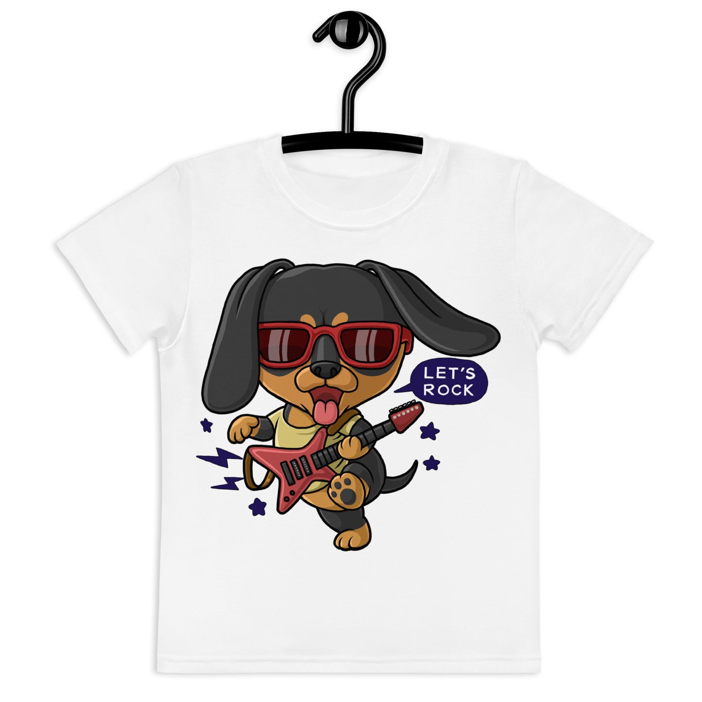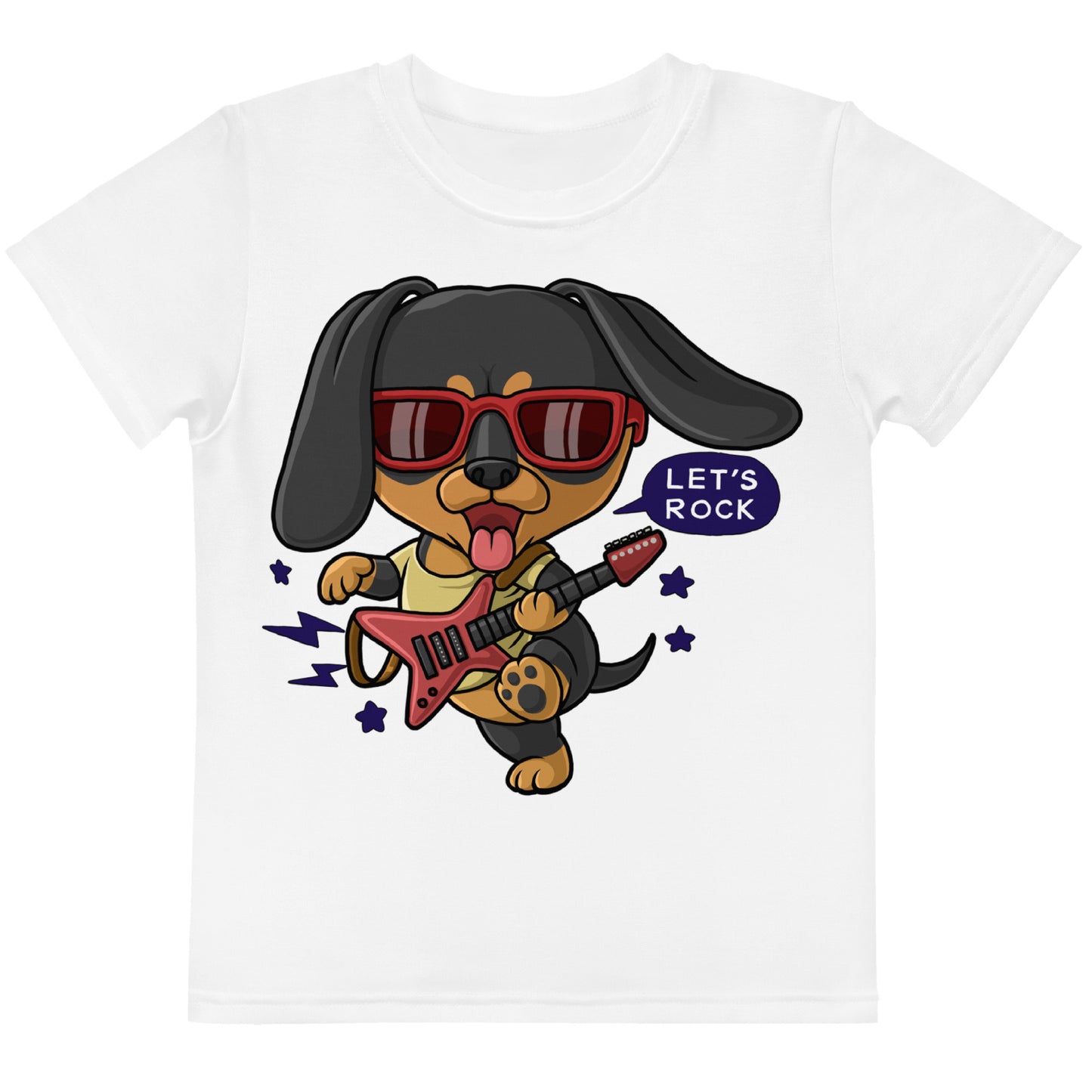 Cool Dachshund Dog Playing Guitar T-Shirt, No. 0256