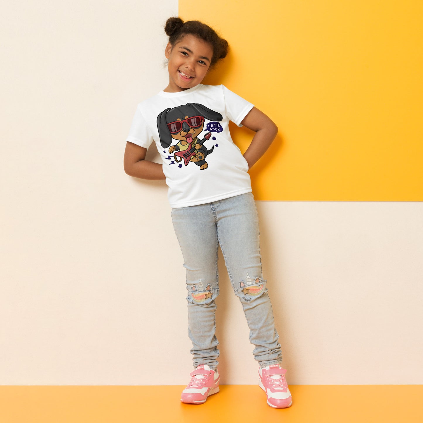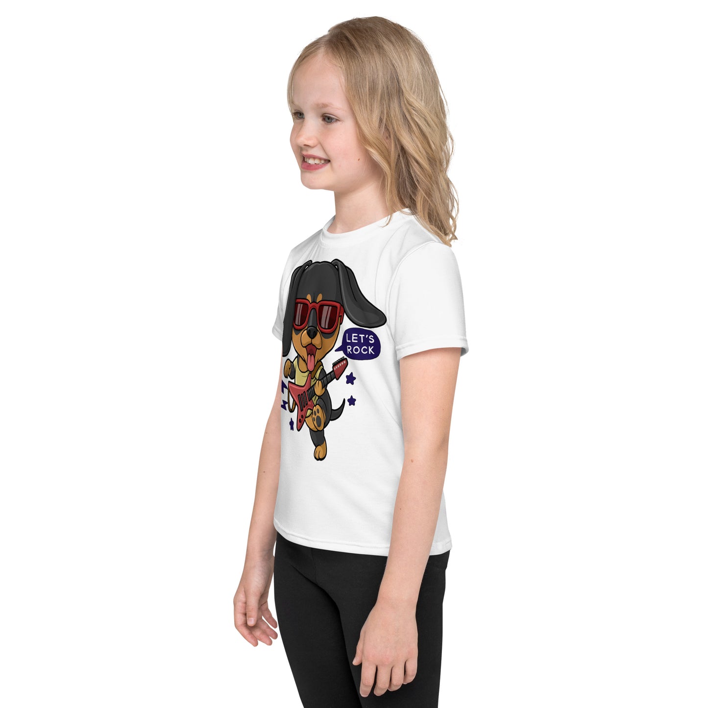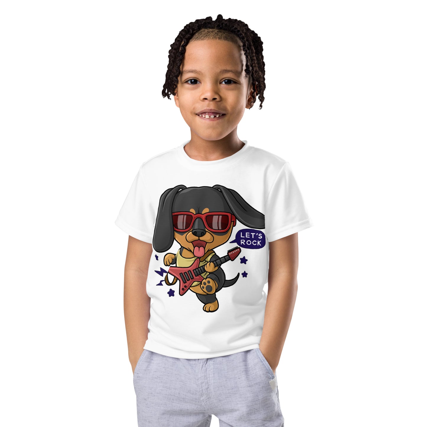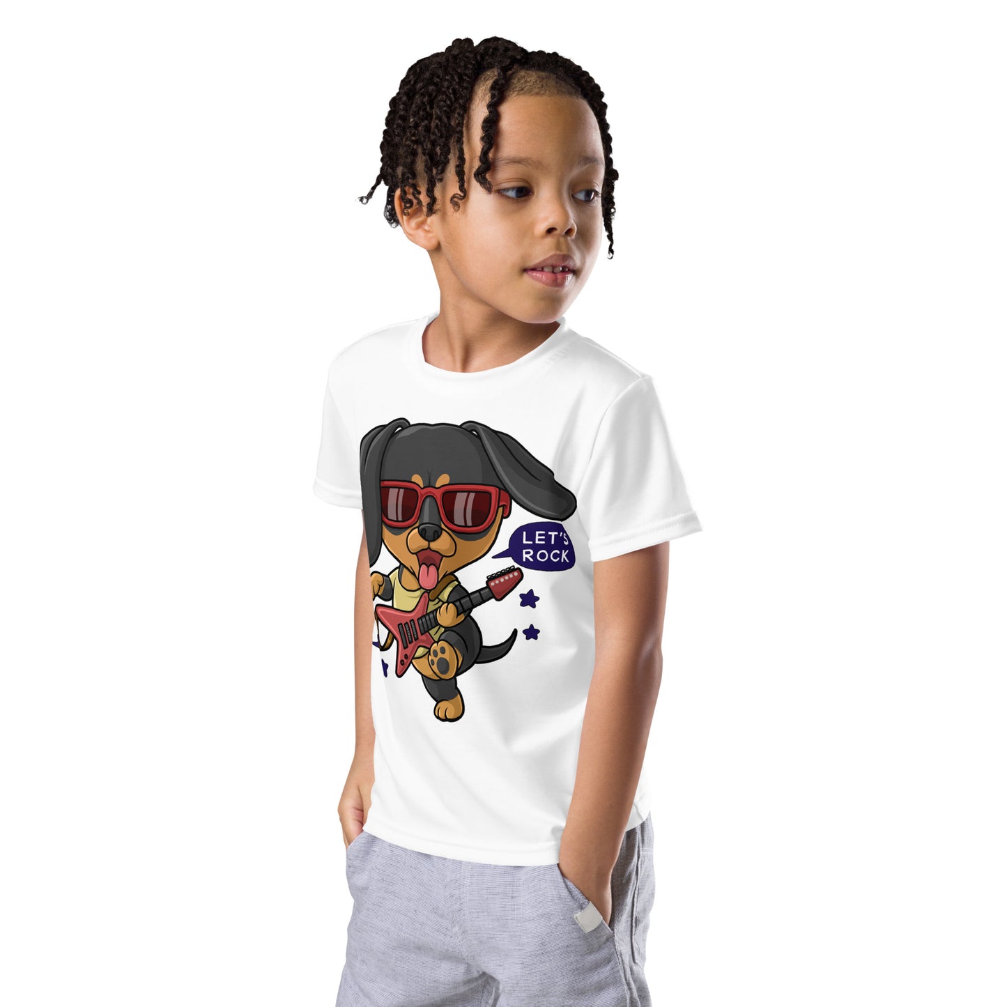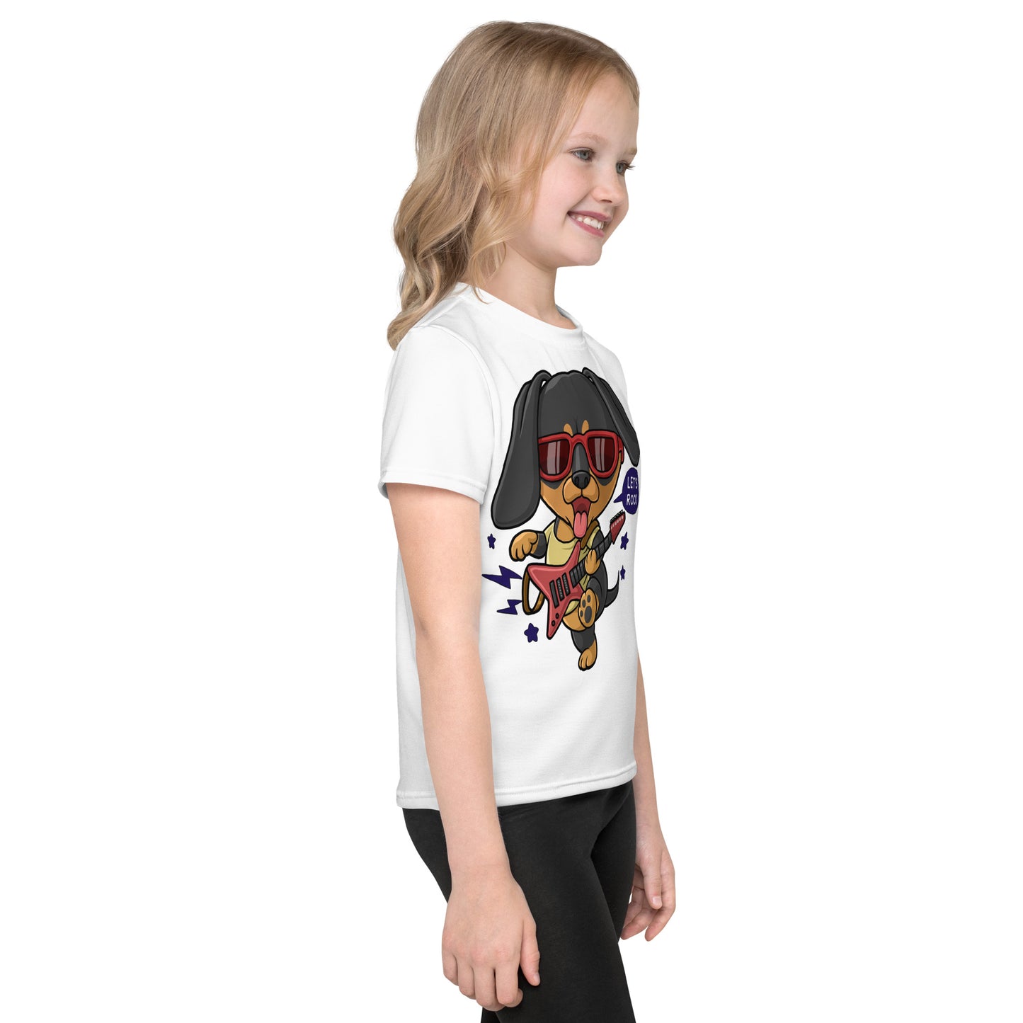 Cool Dachshund Dog Playing Guitar T-Shirt, No. 0256