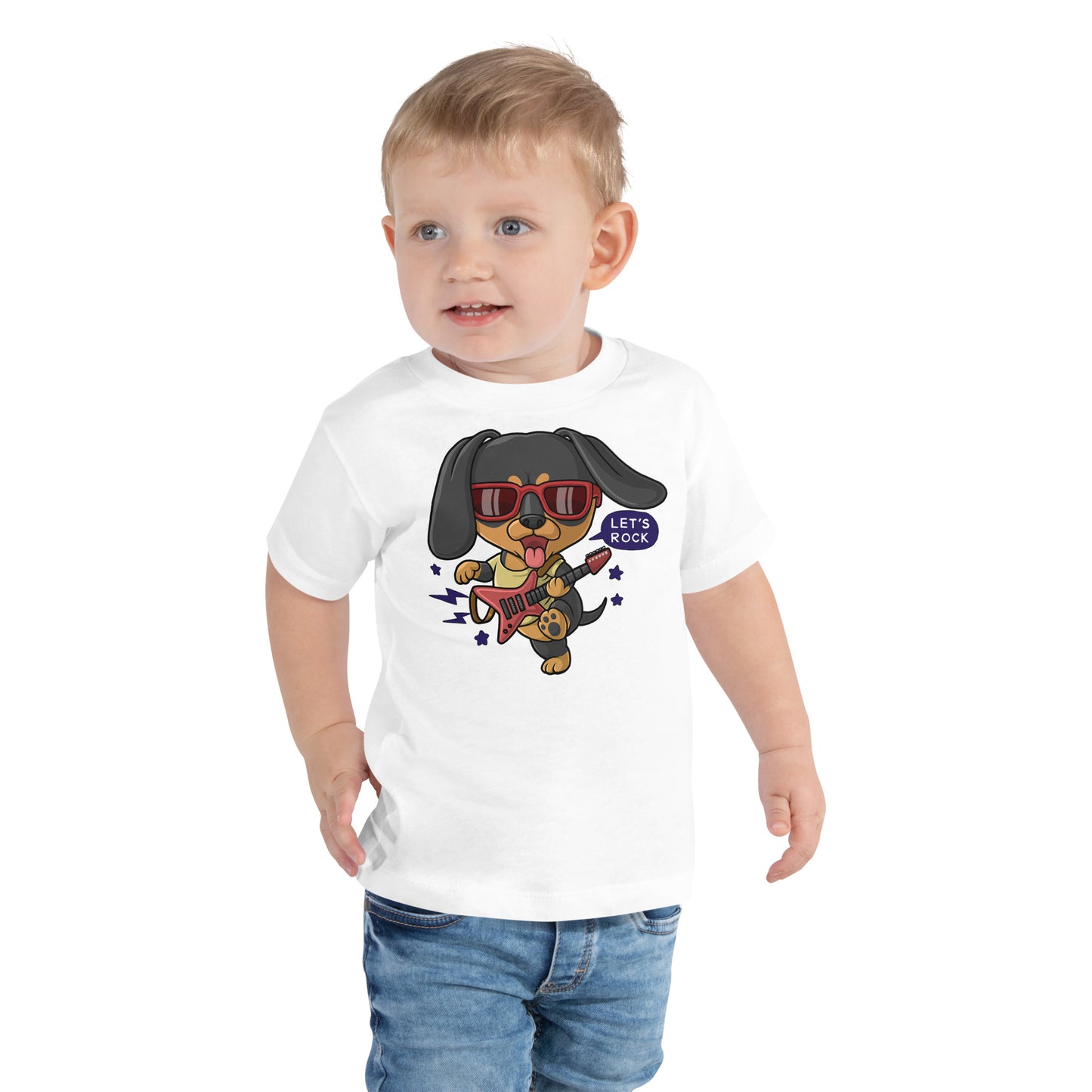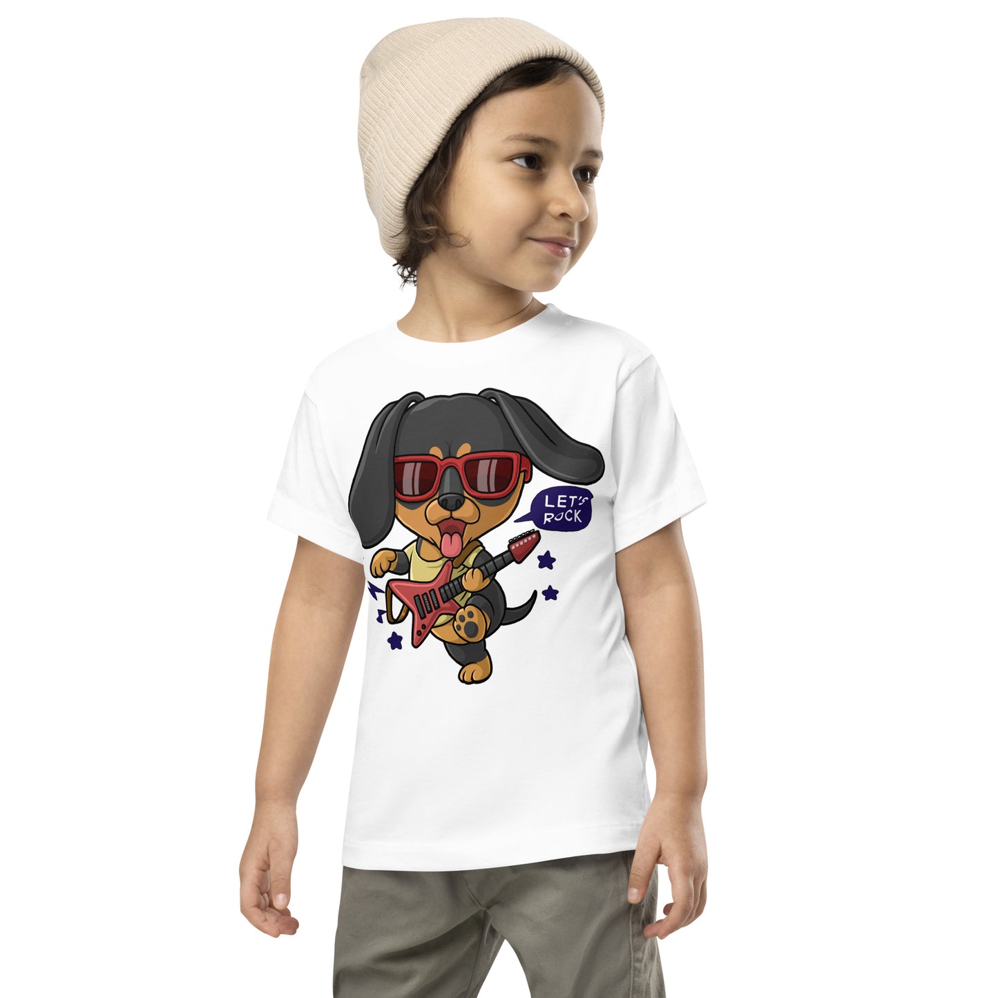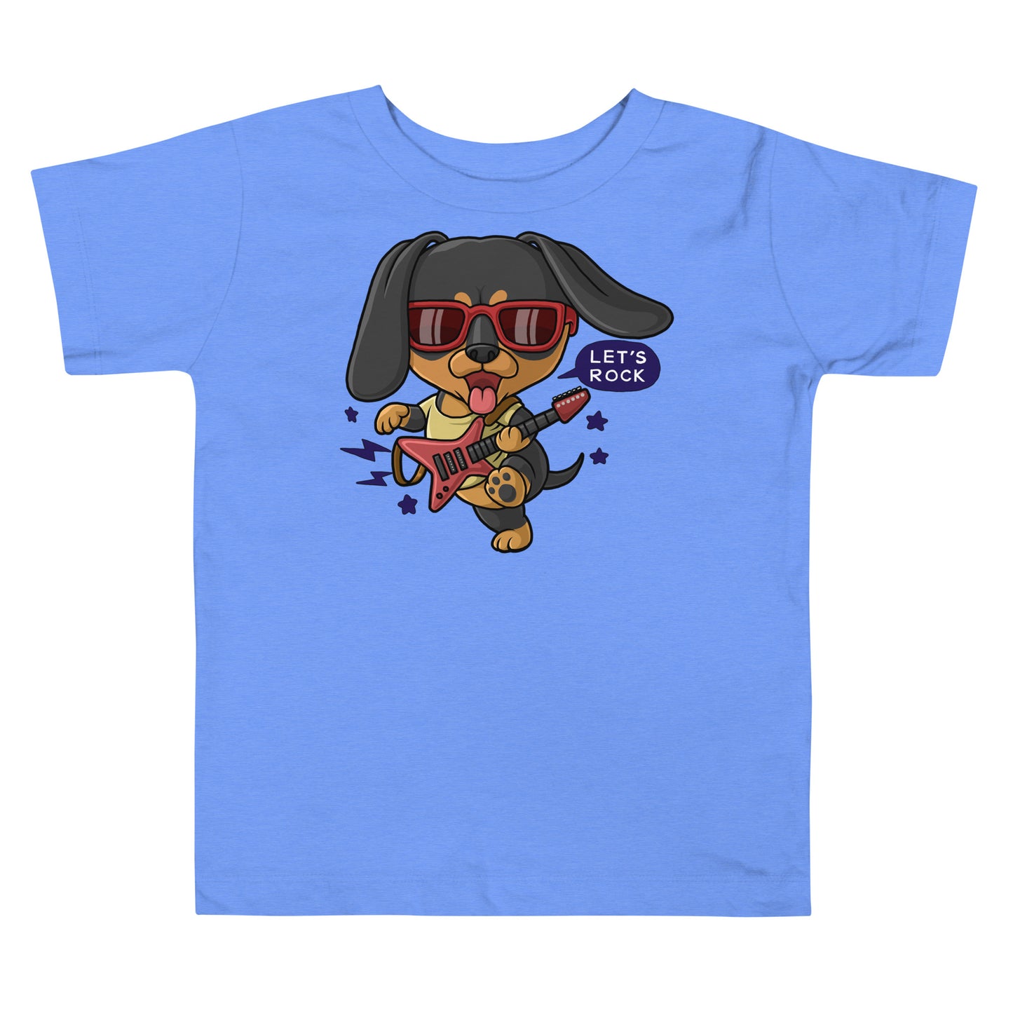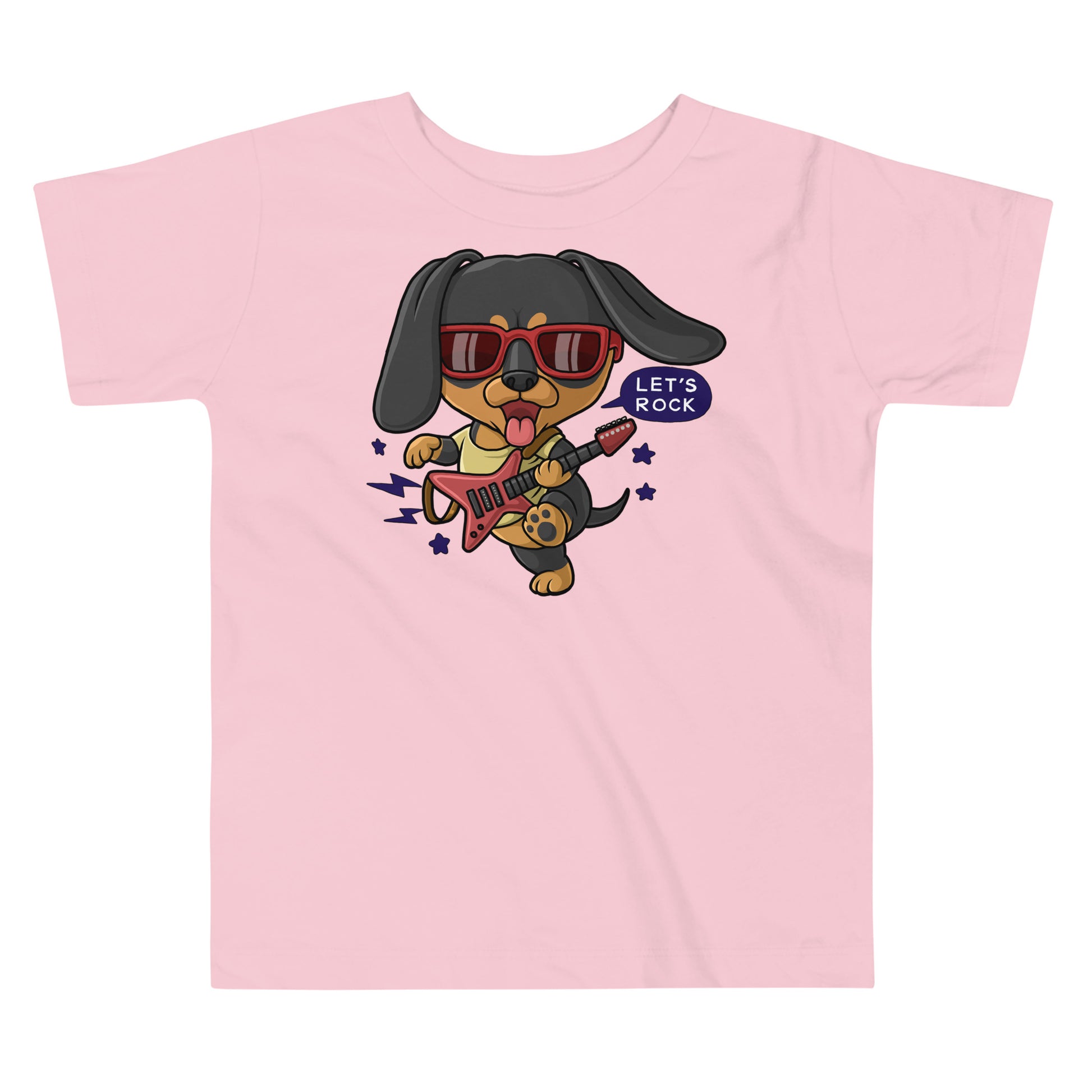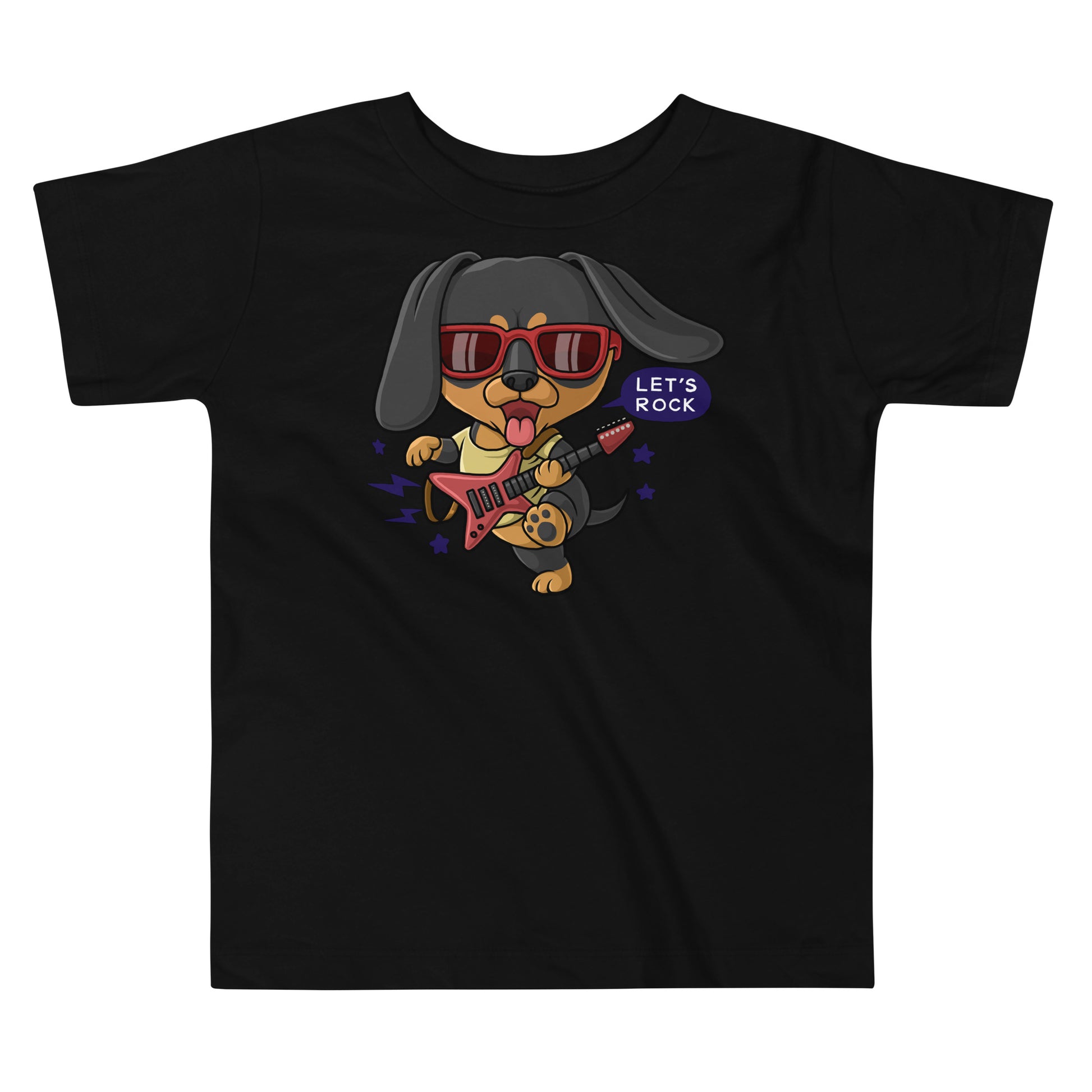 Cool Dachshund Dog Playing Guitar T-Shirt, No. 0256