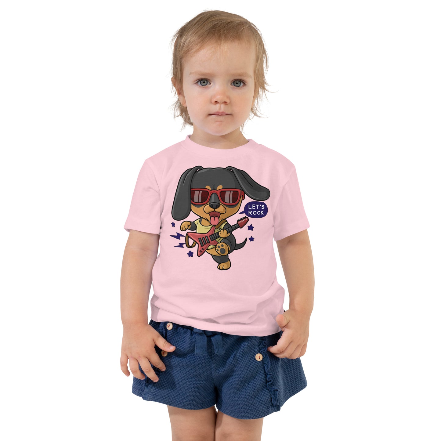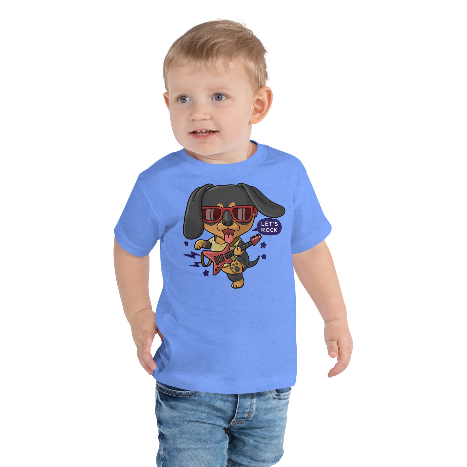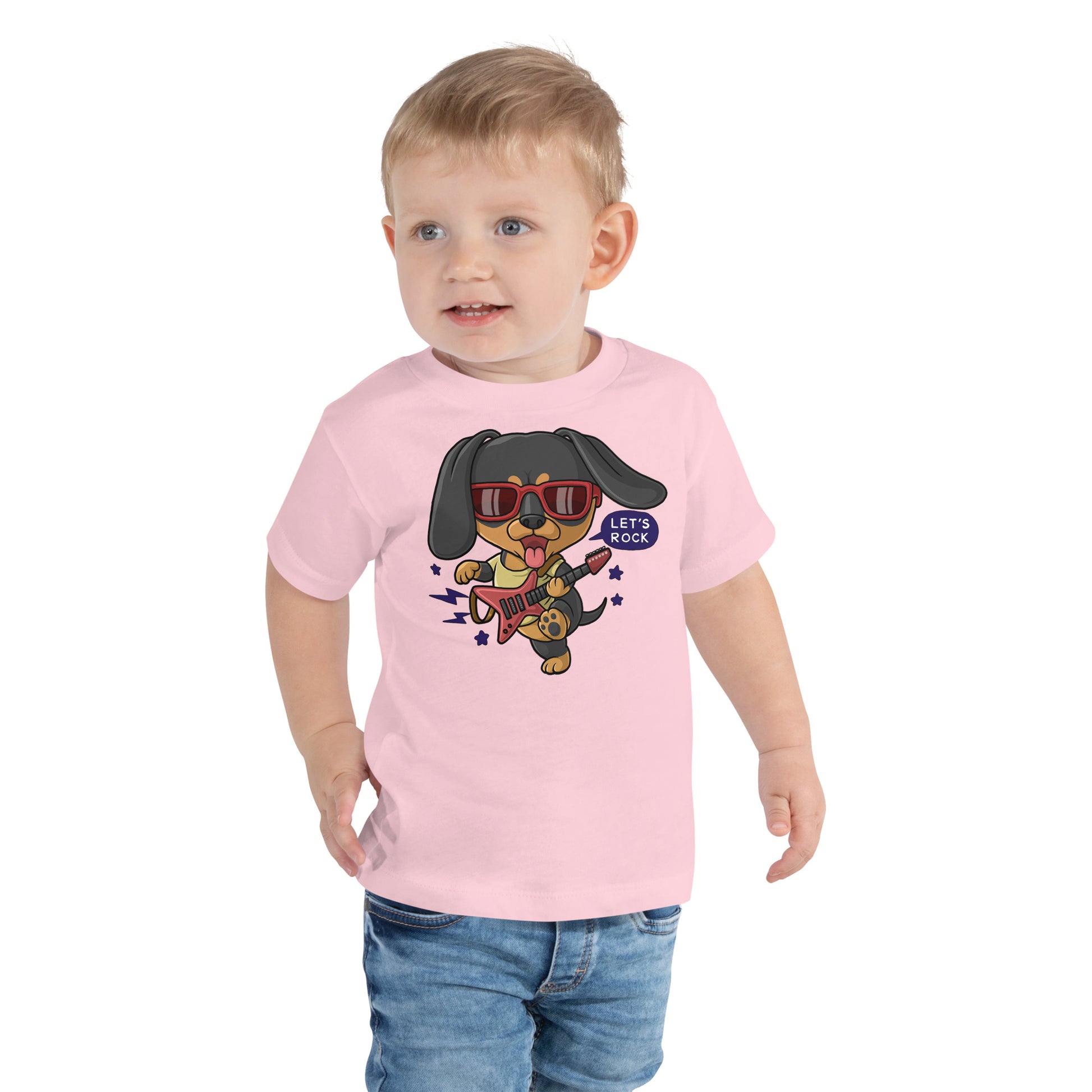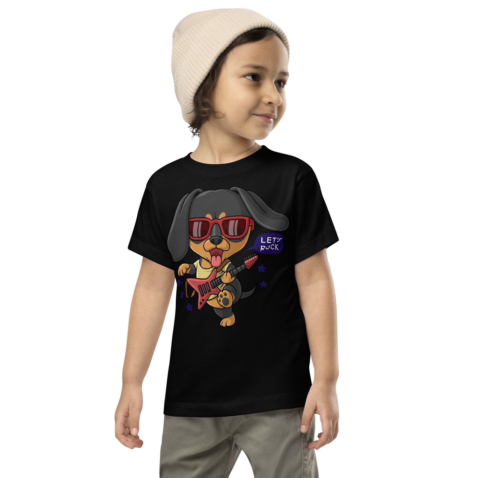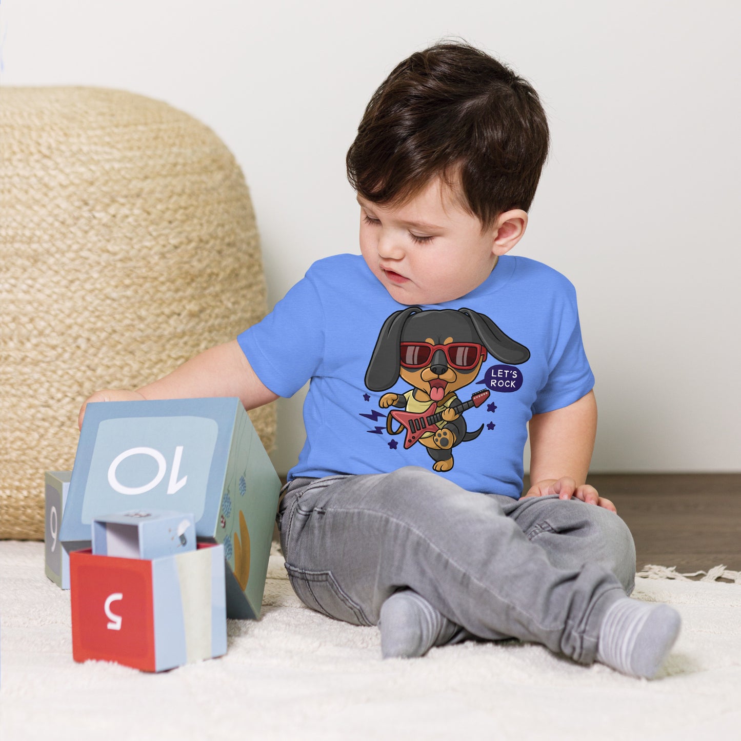 Cool Dachshund Dog Playing Guitar T-Shirt, No. 0256