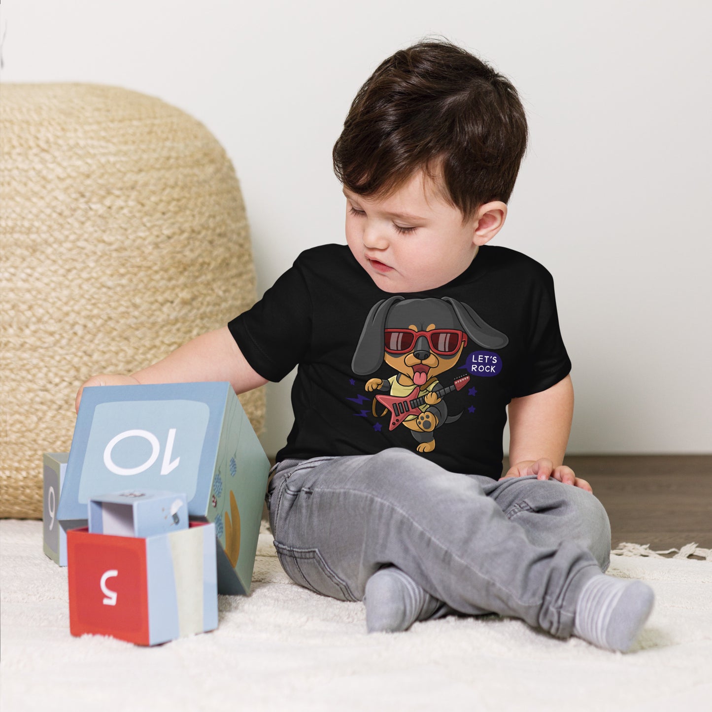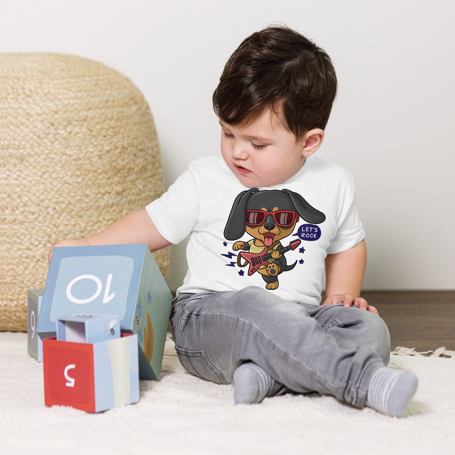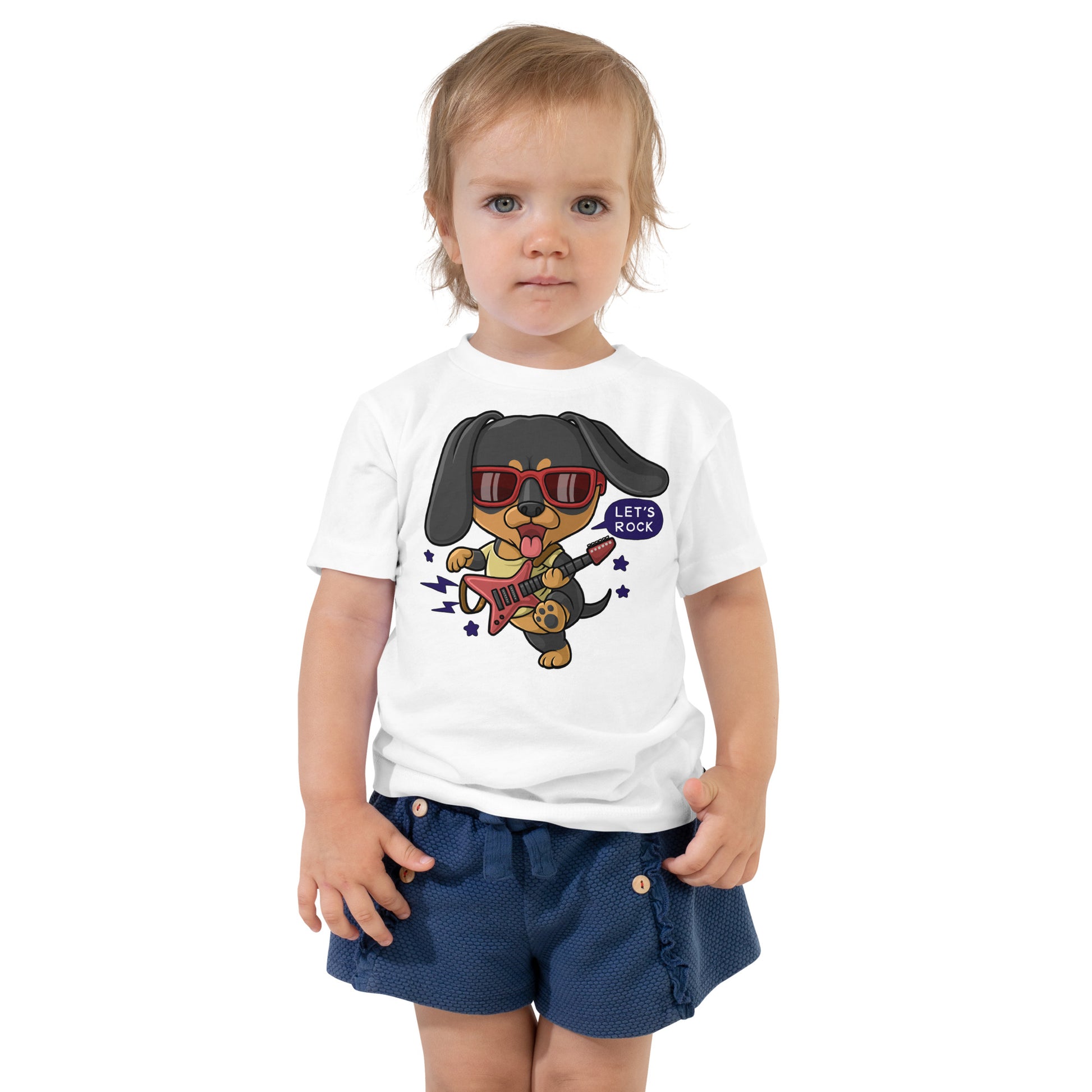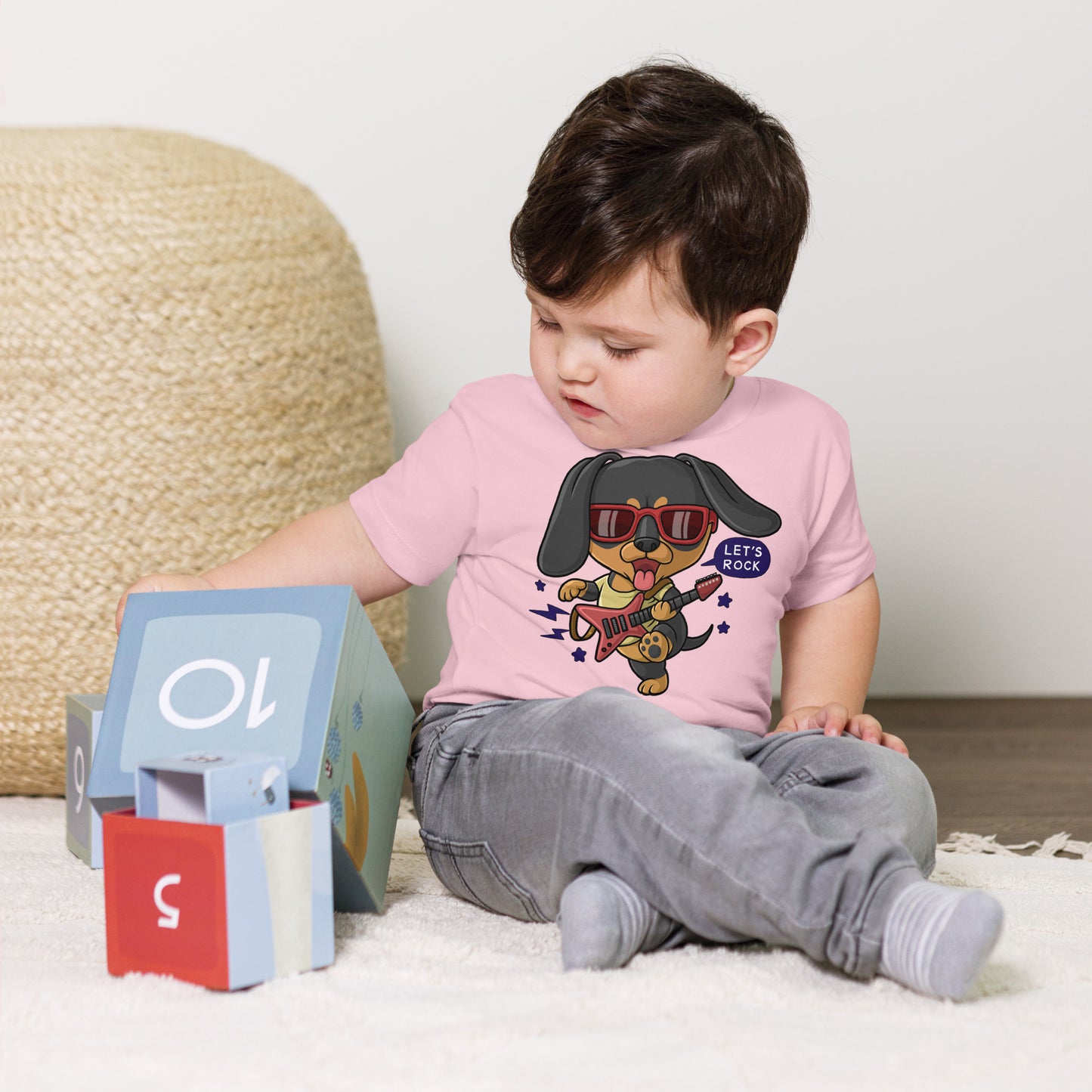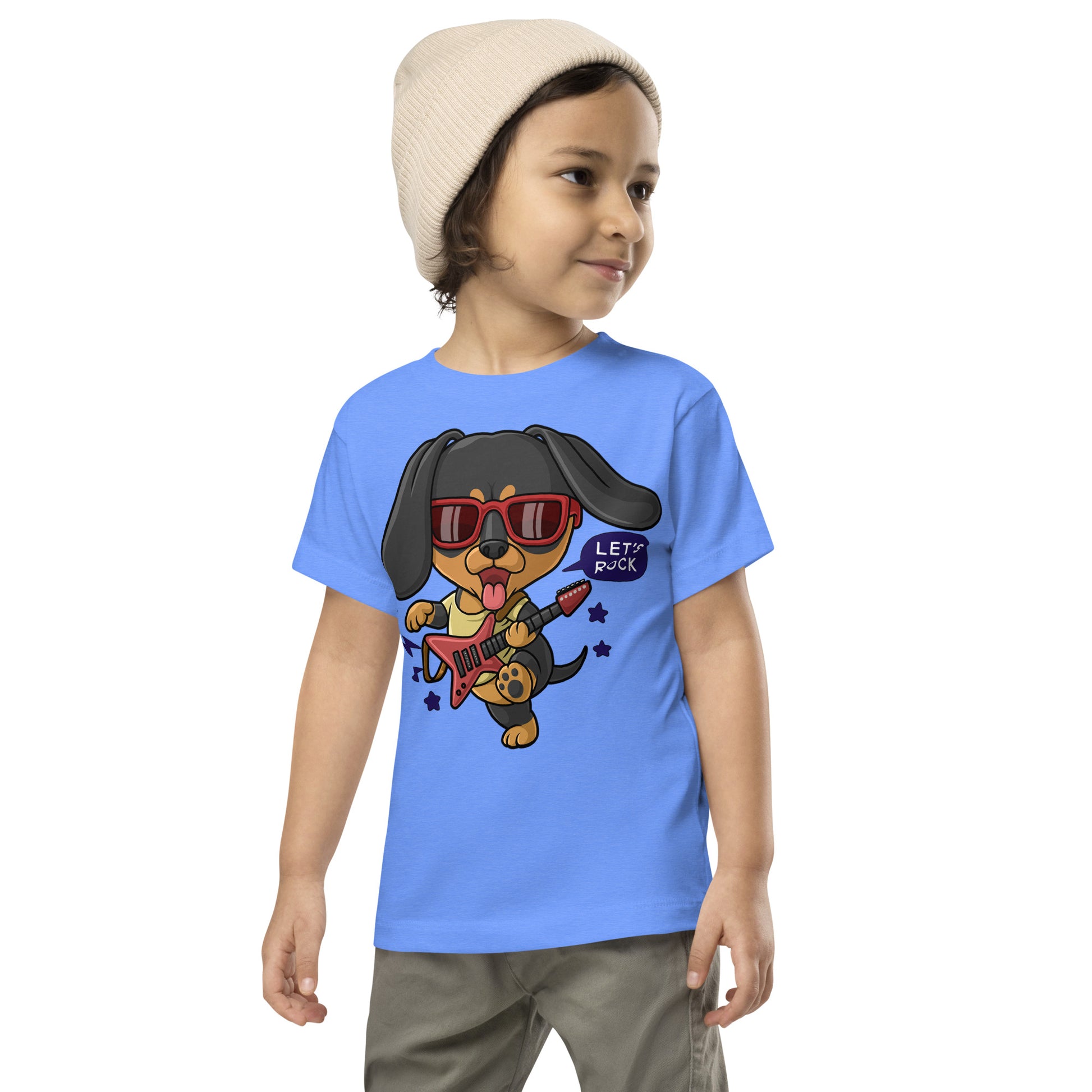 Cool Dachshund Dog Playing Guitar T-Shirt, No. 0256