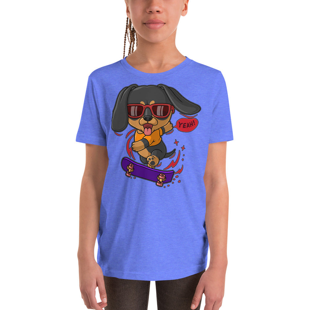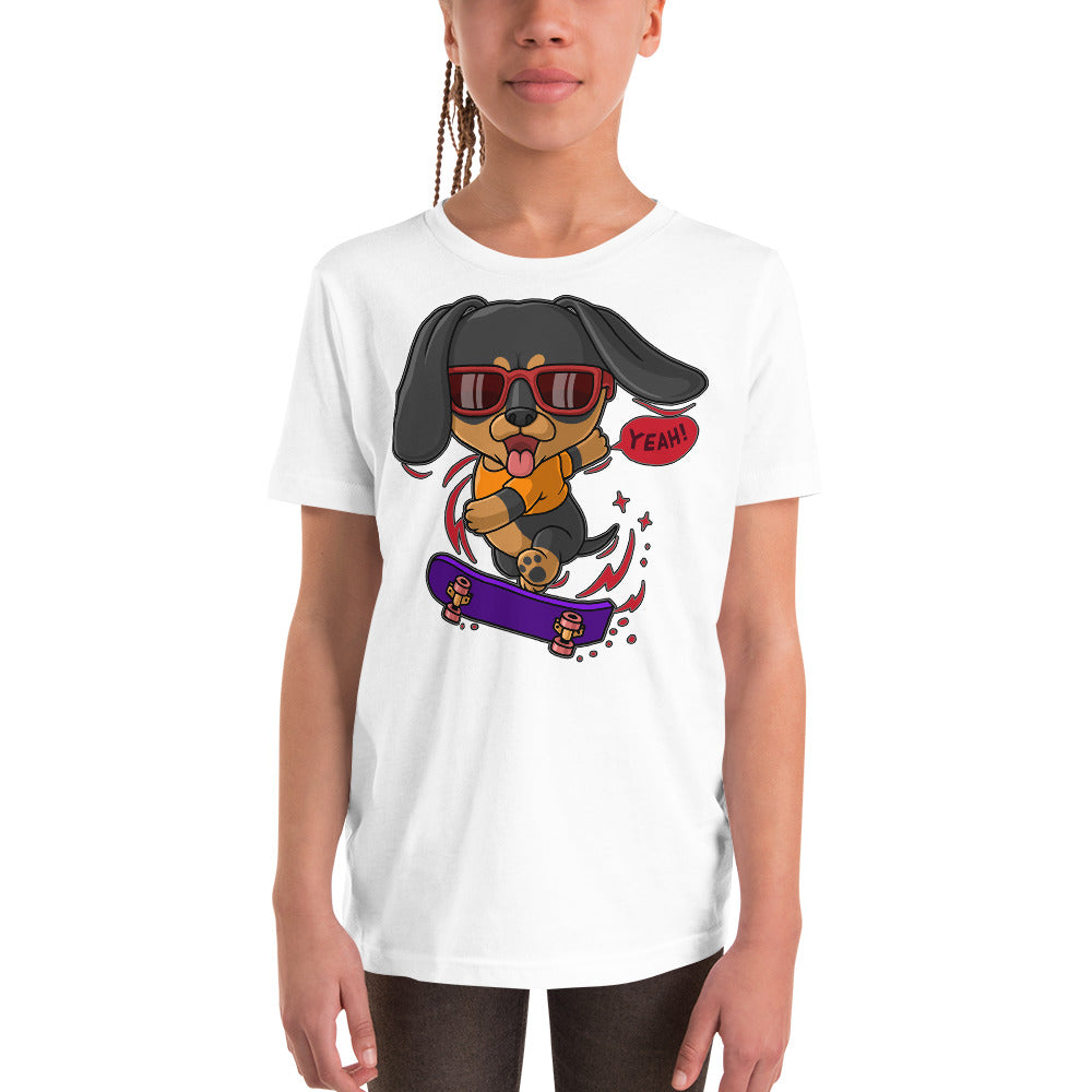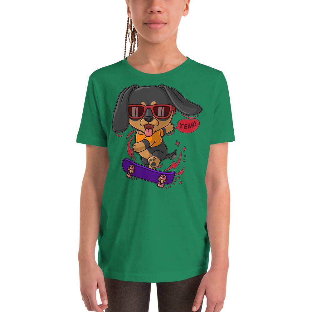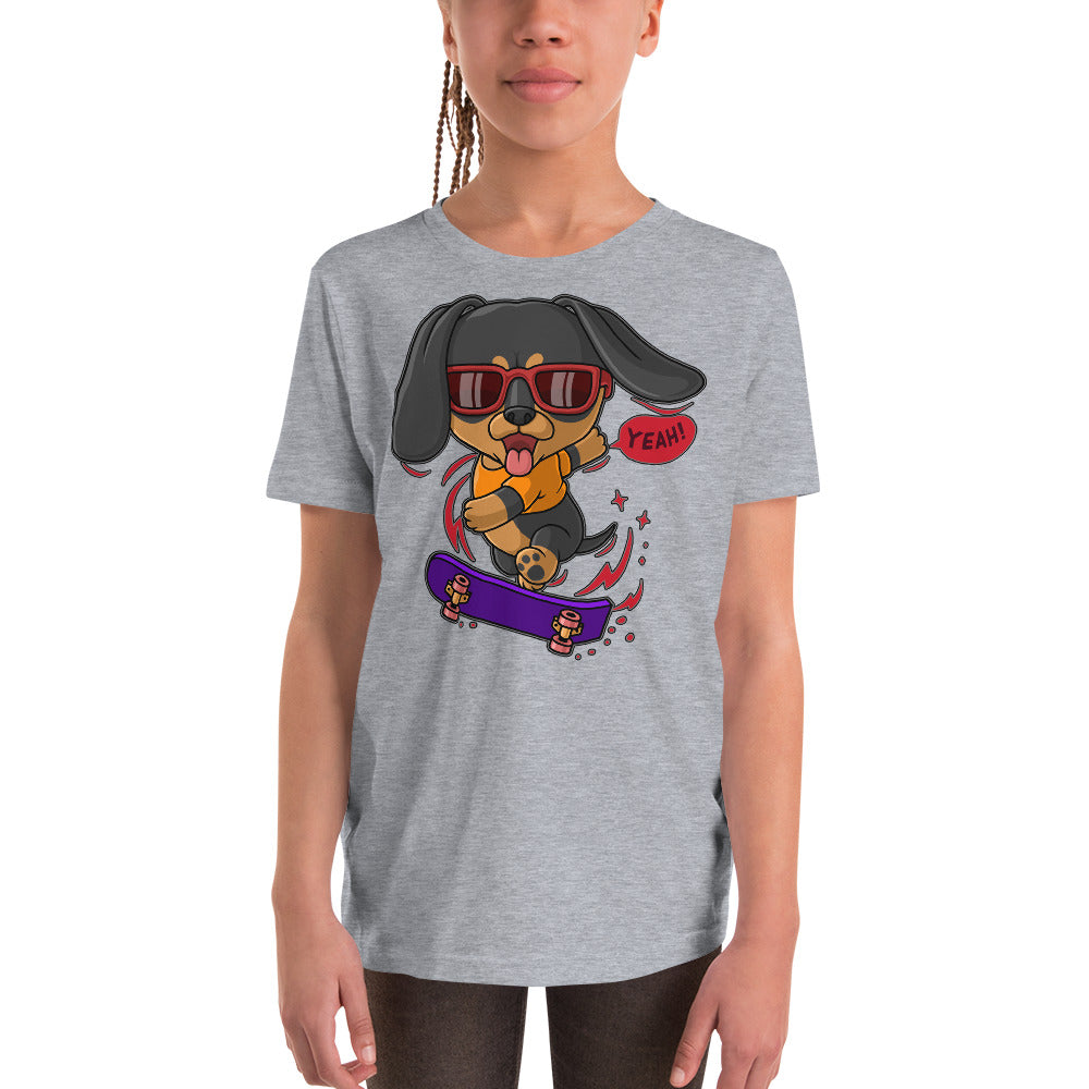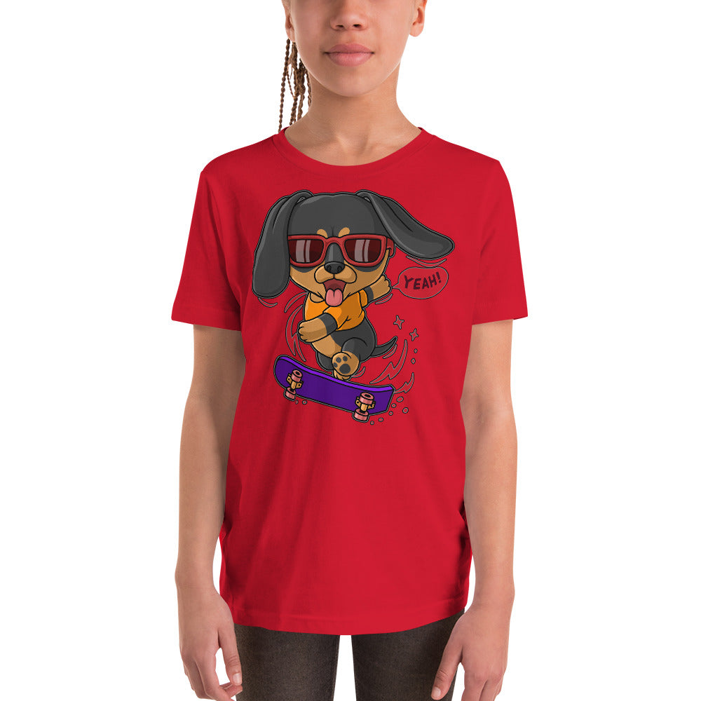 Cool Dachshund Dog Playing Skateboard T-shirt, No. 0257