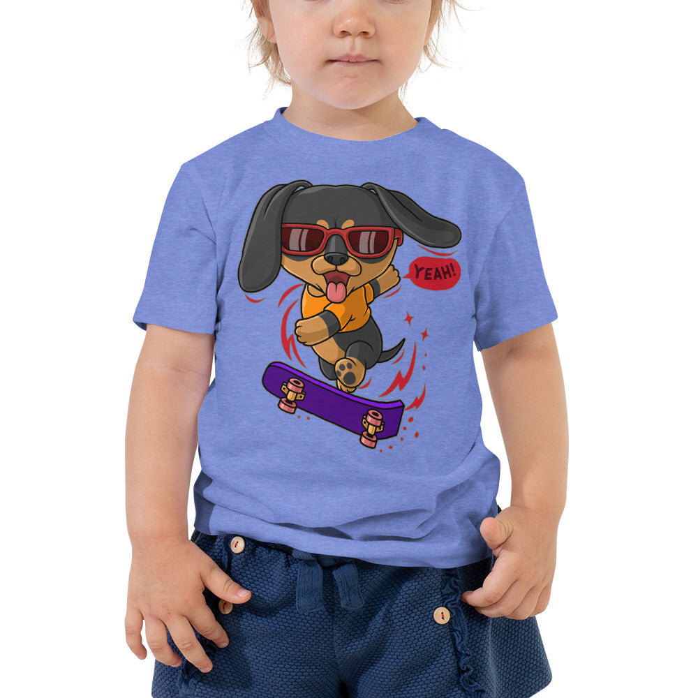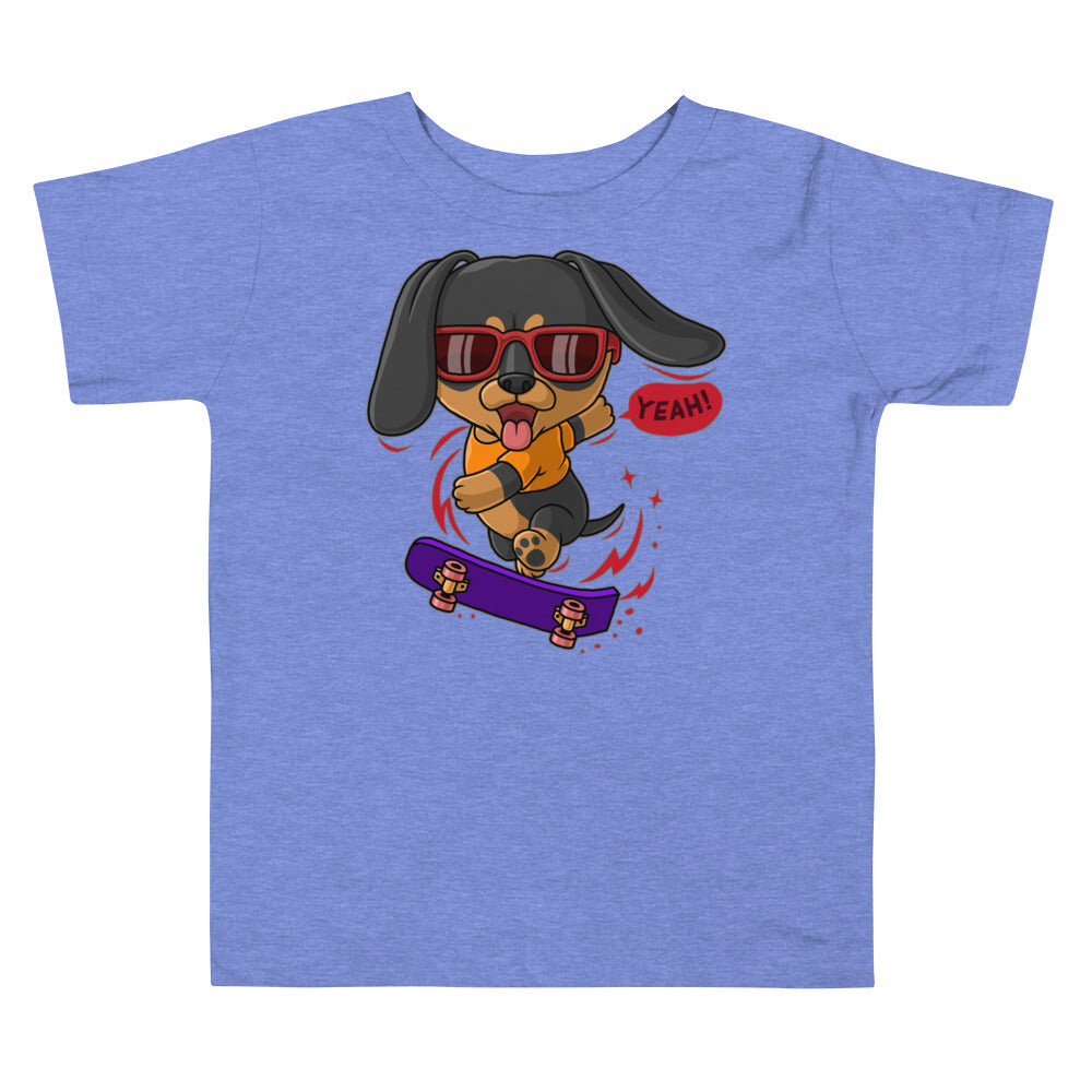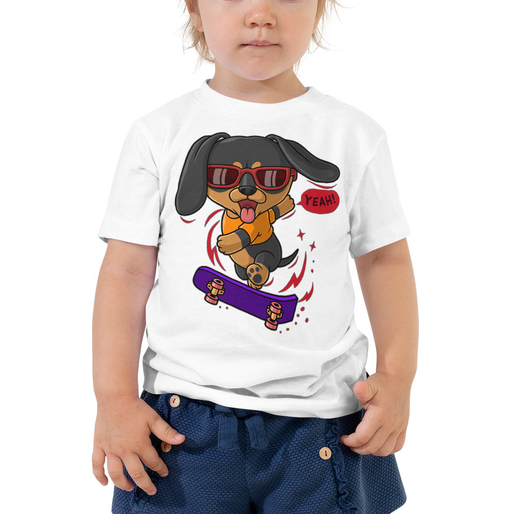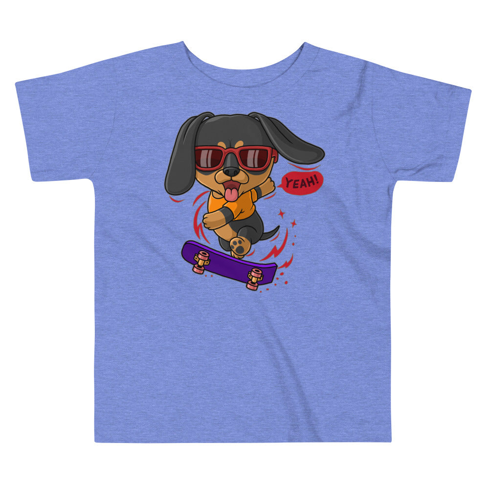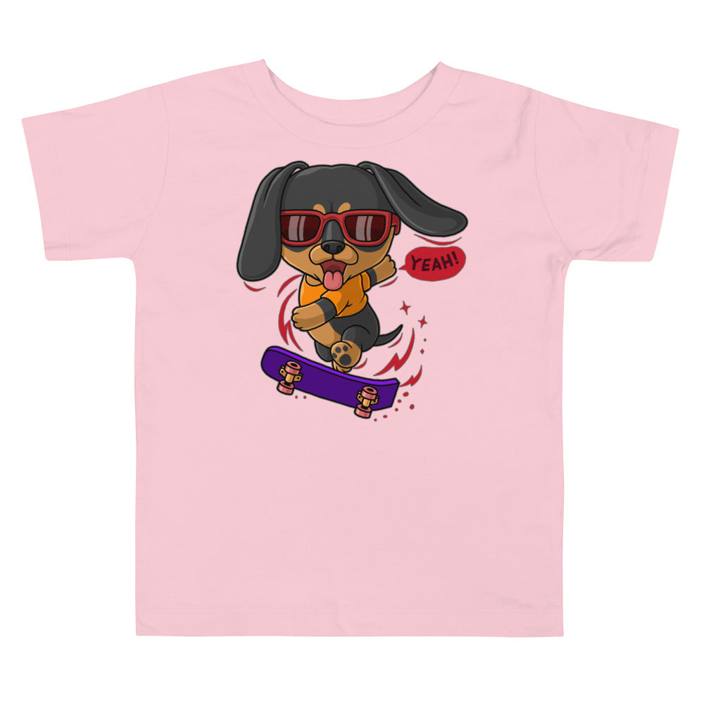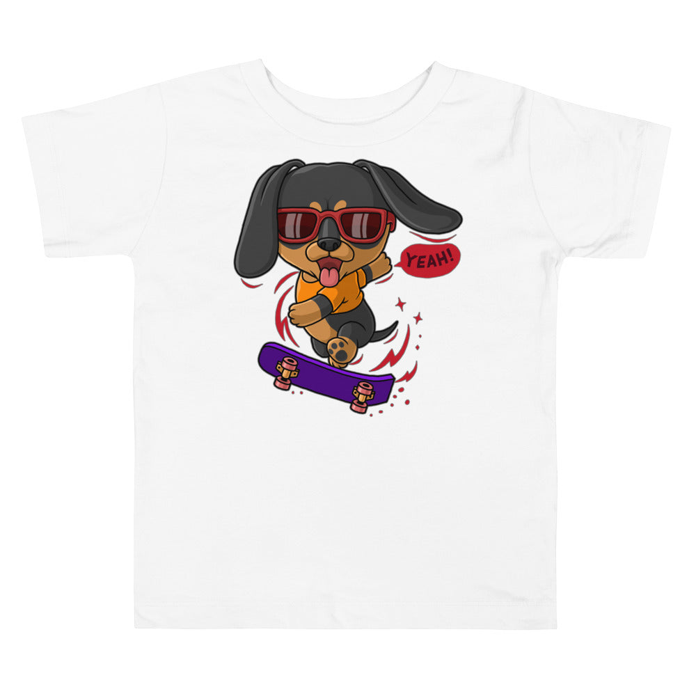 Cool Dachshund Dog Playing Skateboard T-shirt, No. 0257