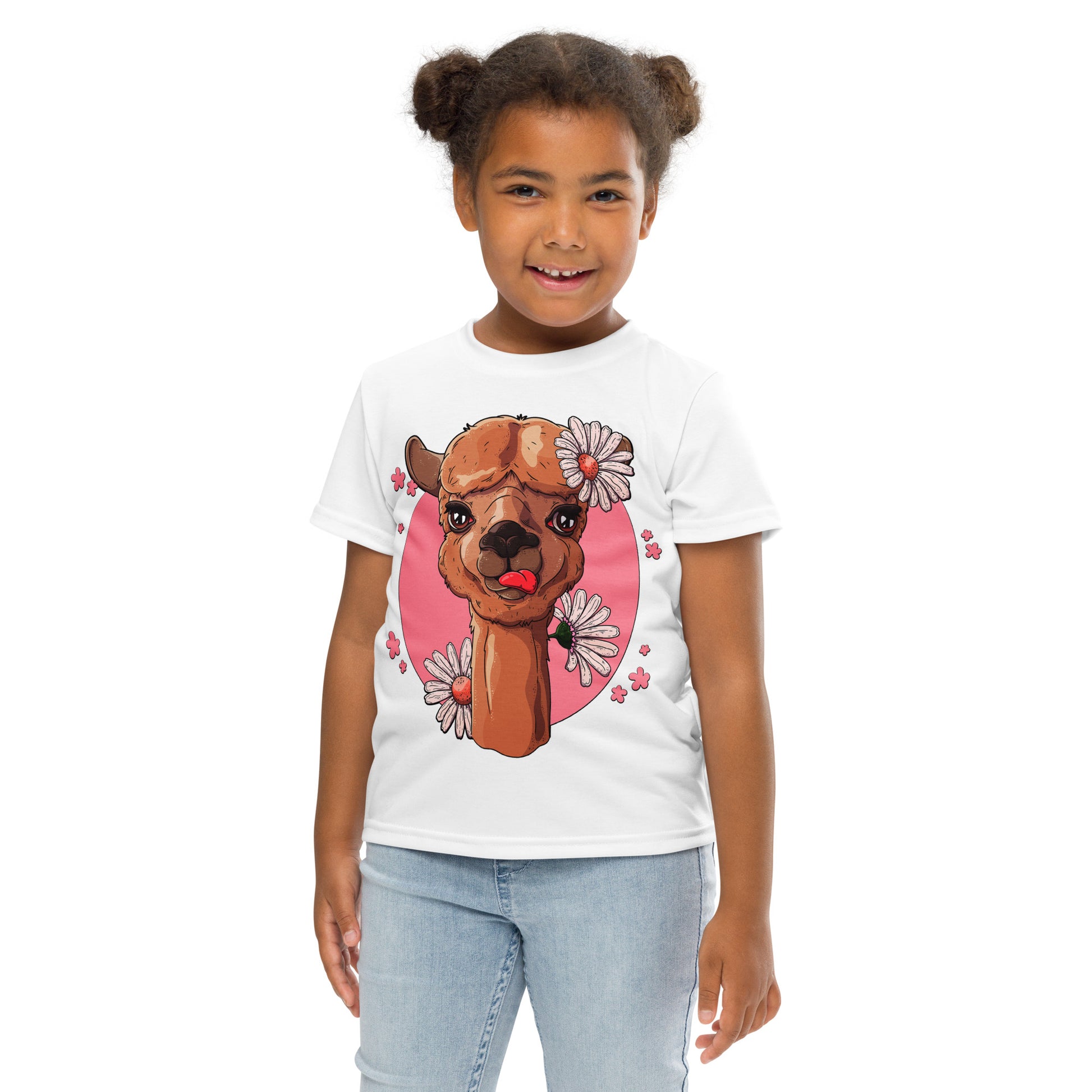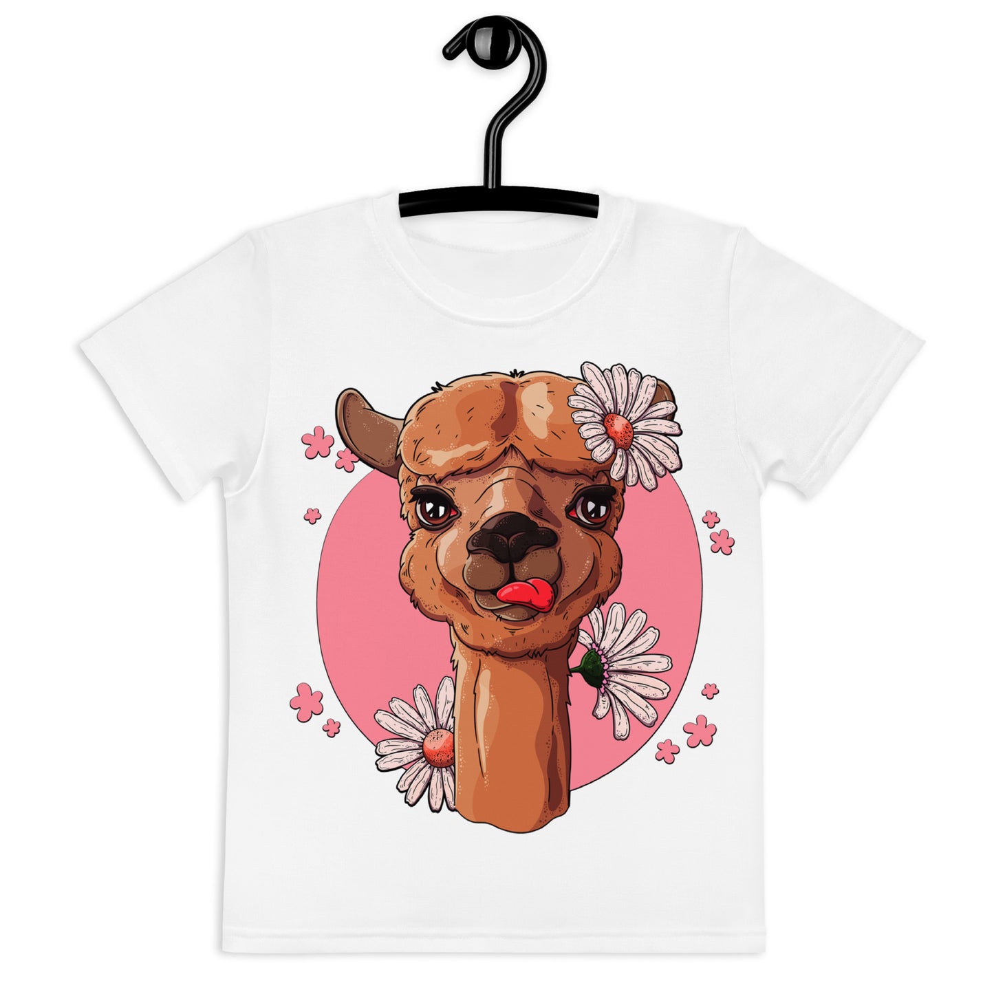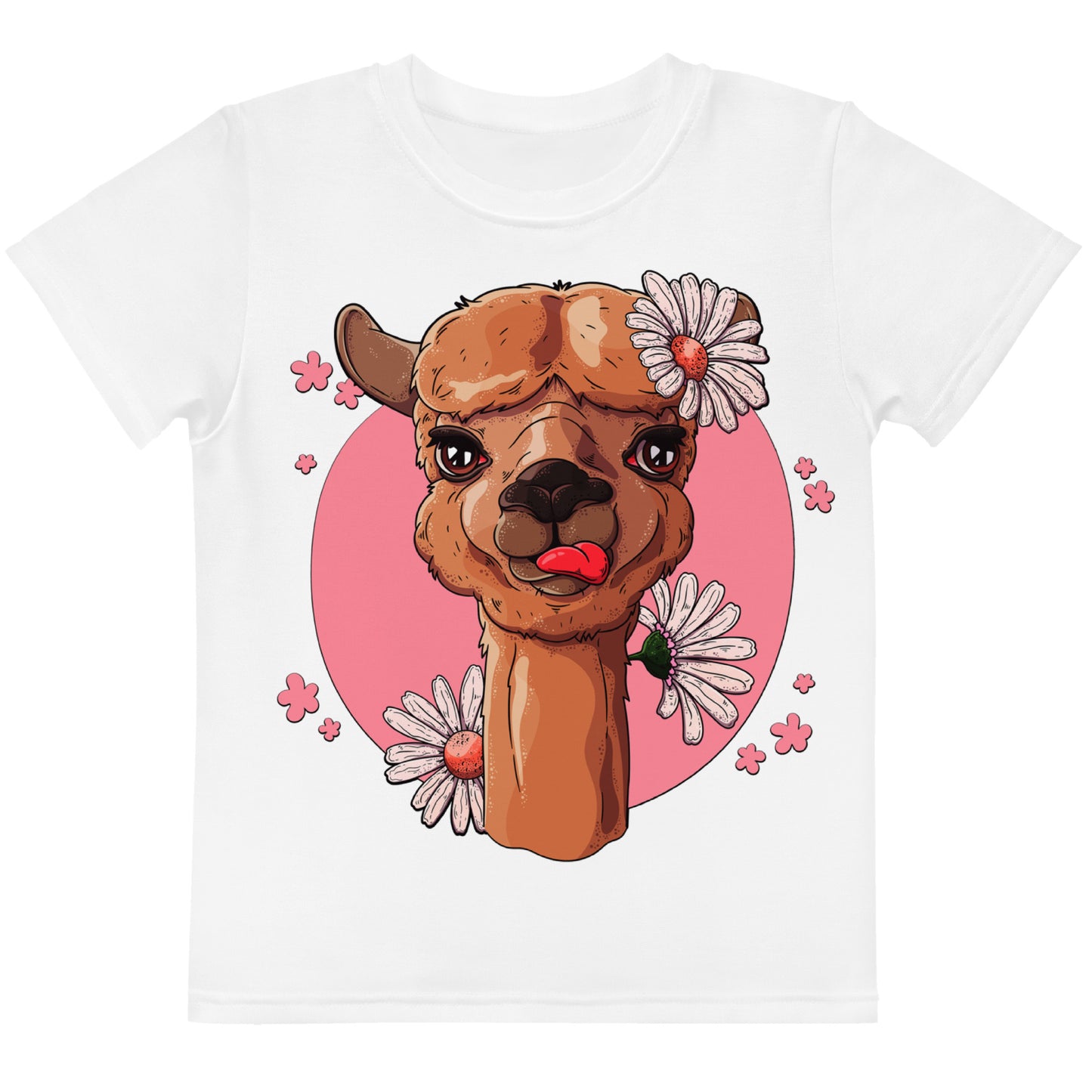 Cute Alpaca with Flowers T-Shirt, No. 0059