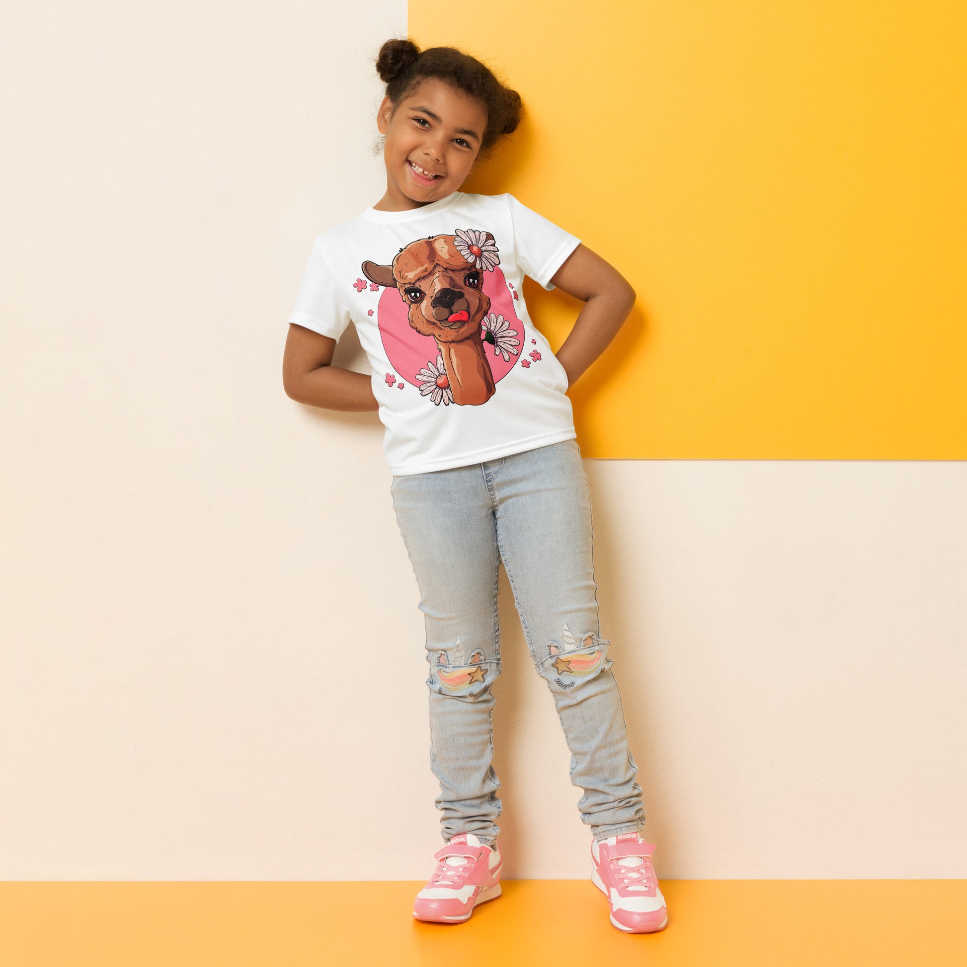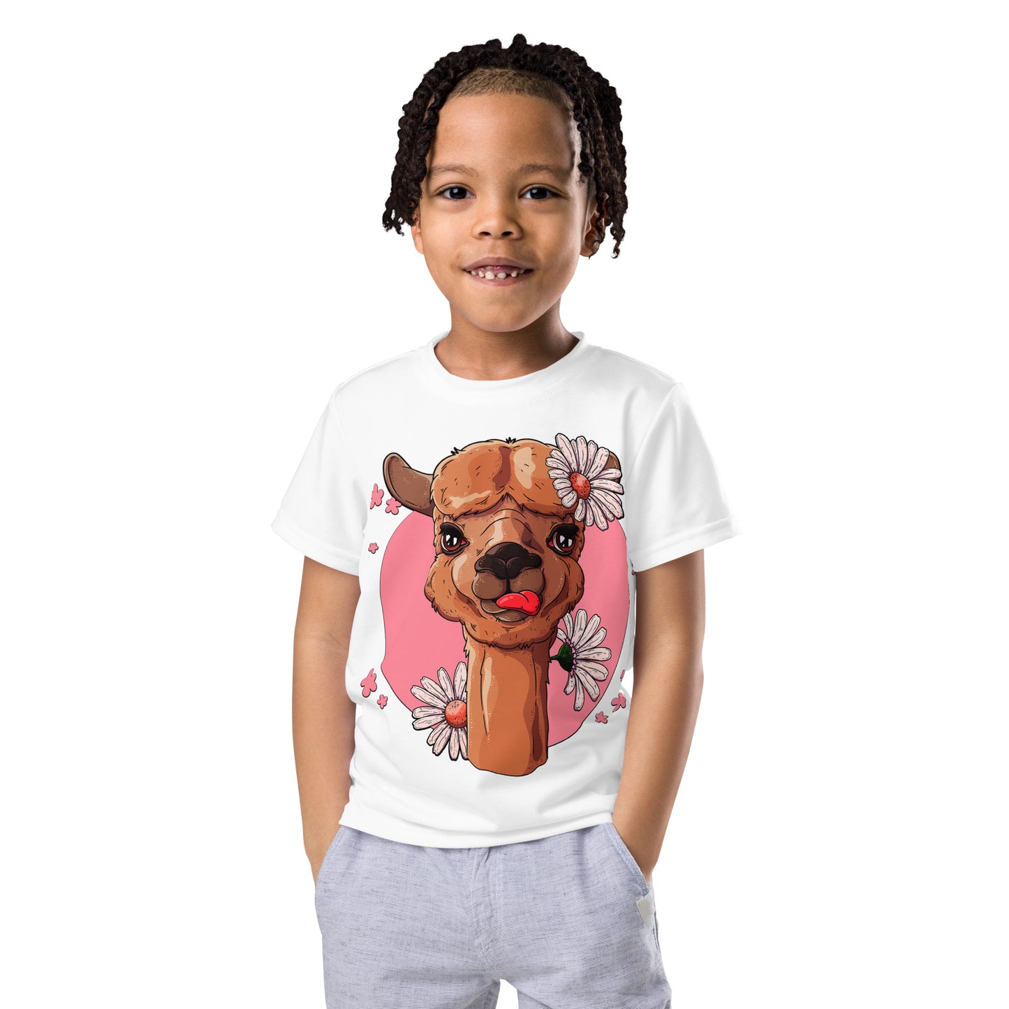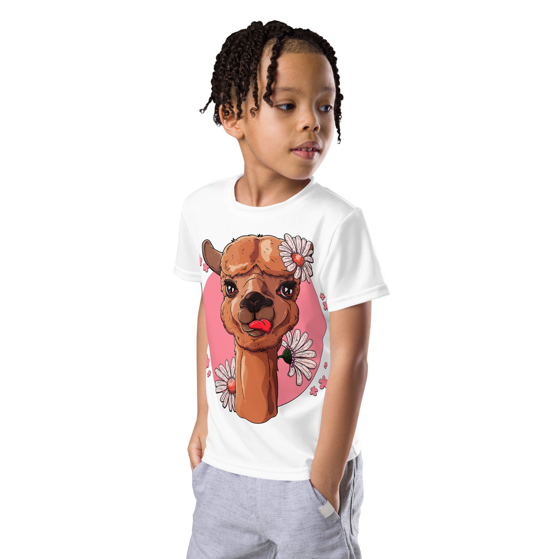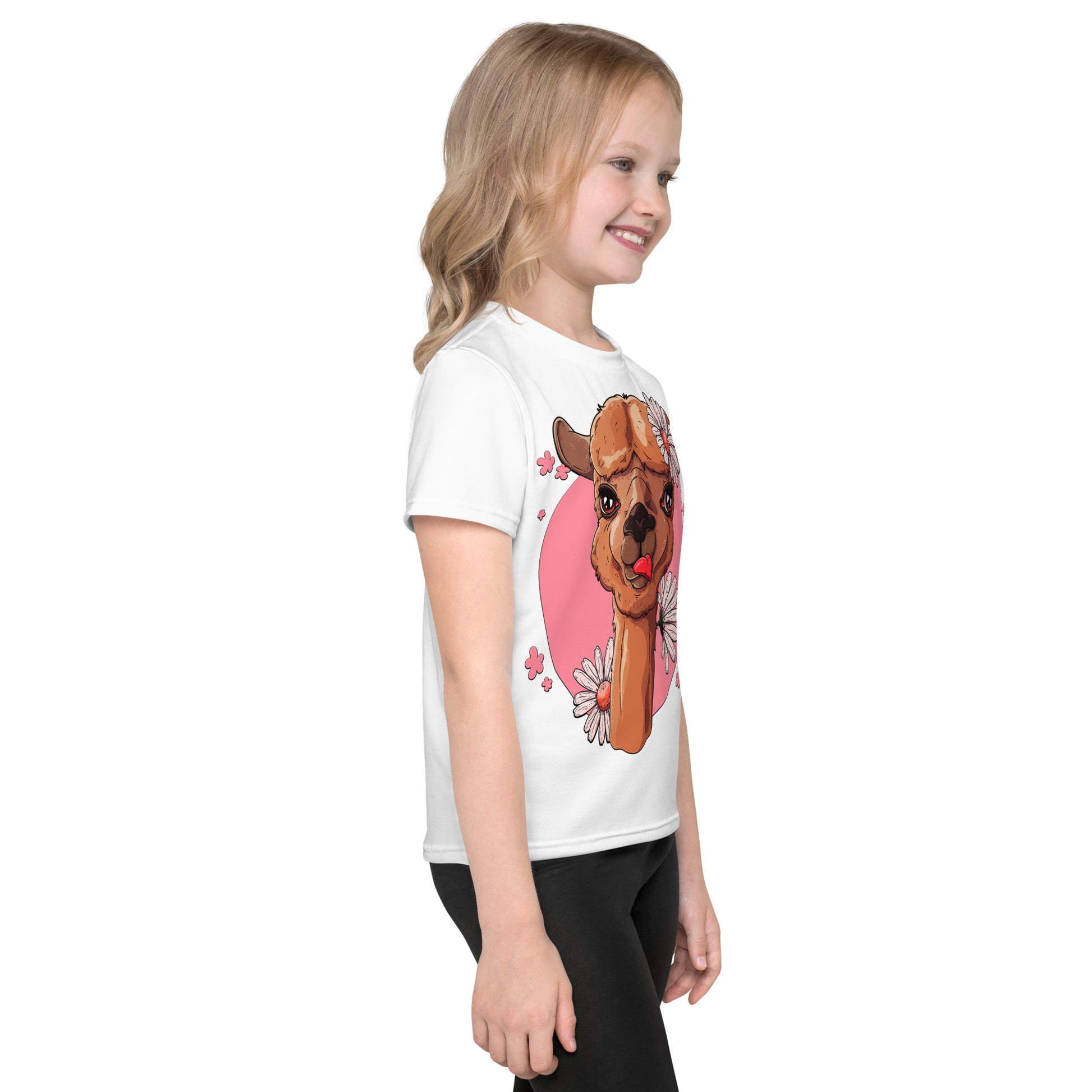 Cute Alpaca with Flowers T-Shirt, No. 0059