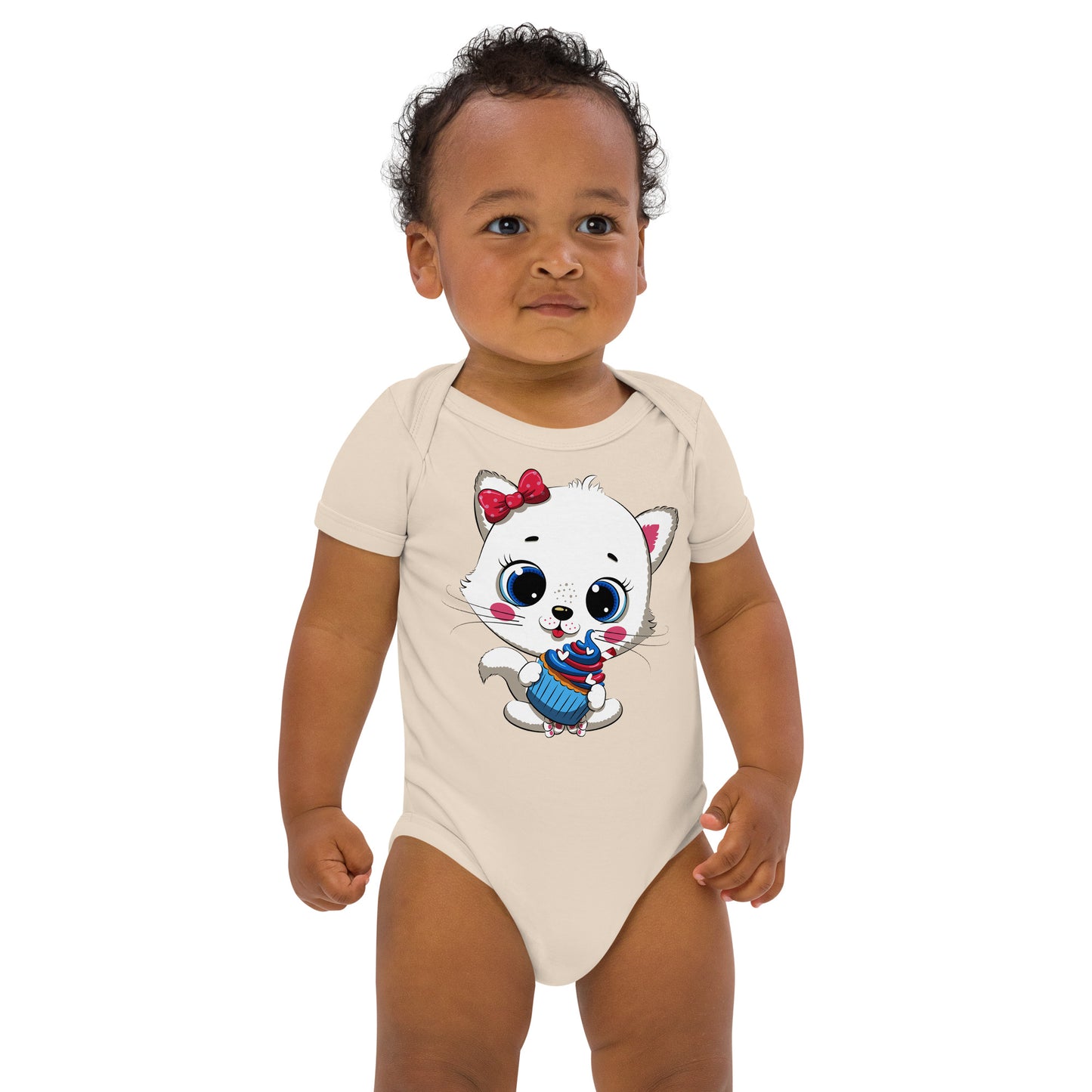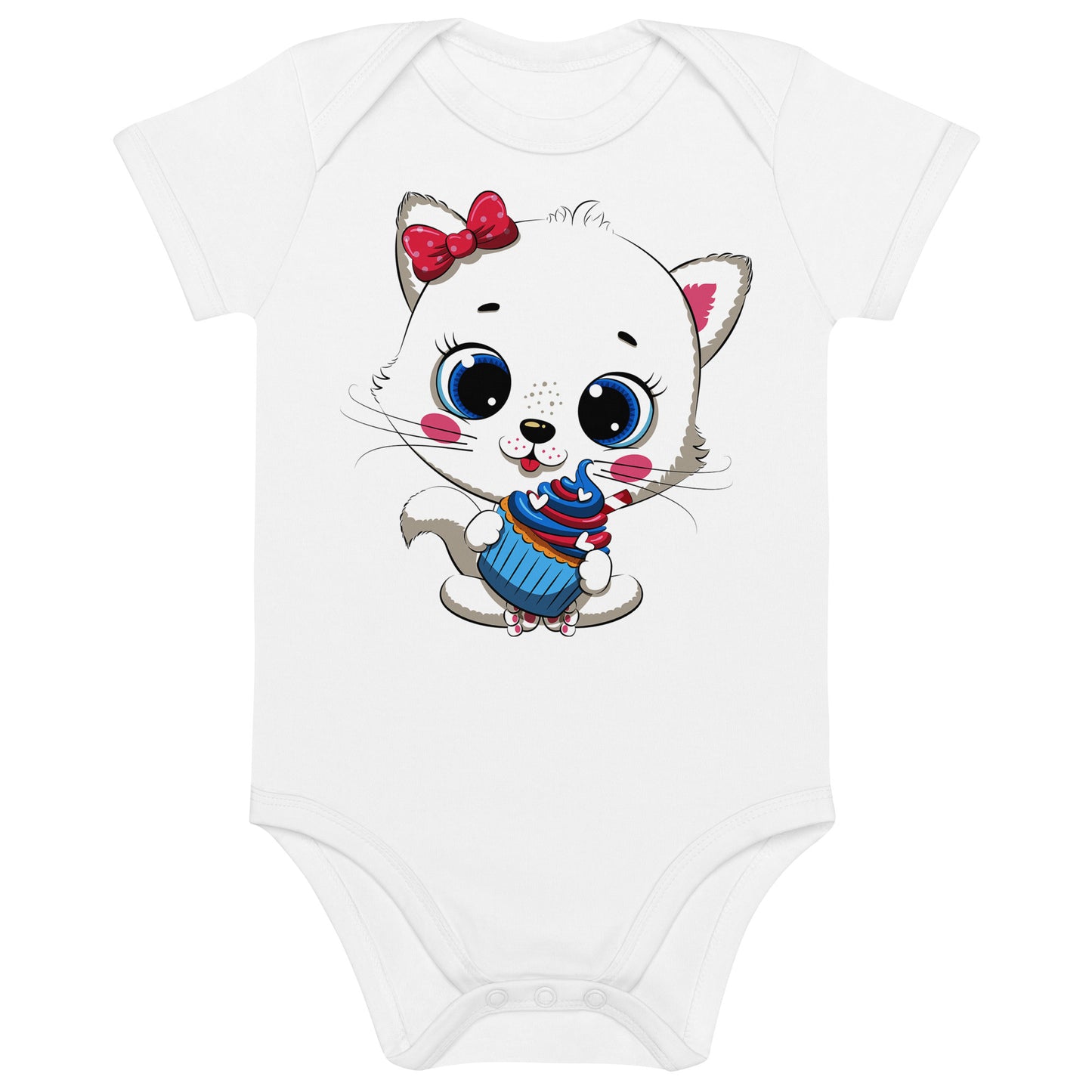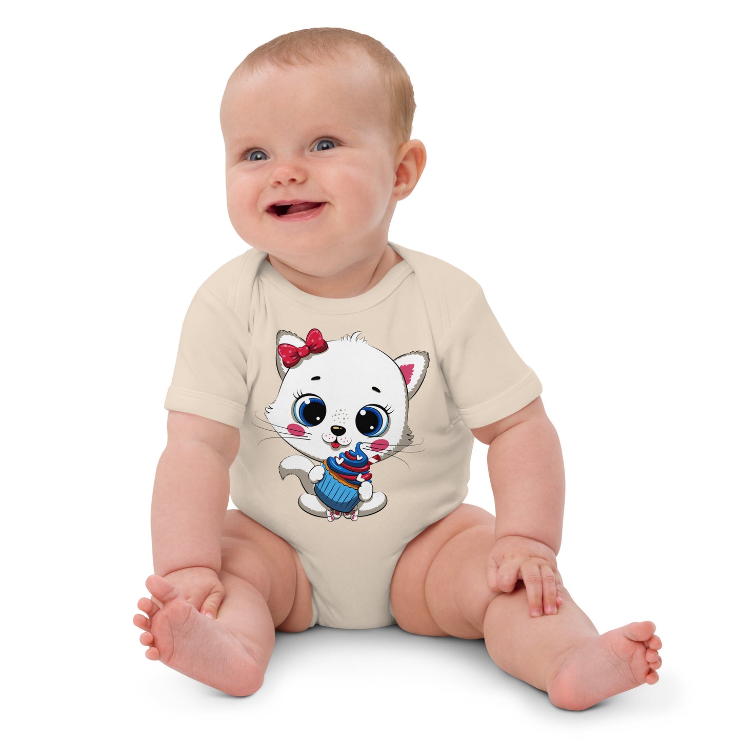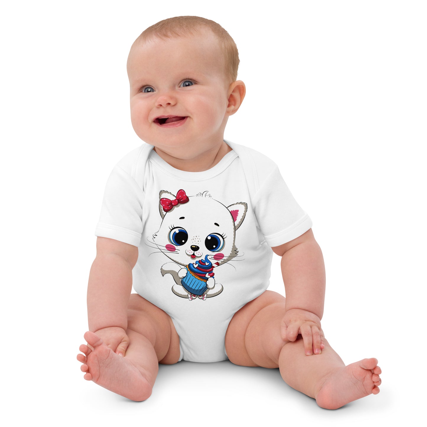 Cute Baby Cat Eating Cupcake Bodysuit, No. 0267