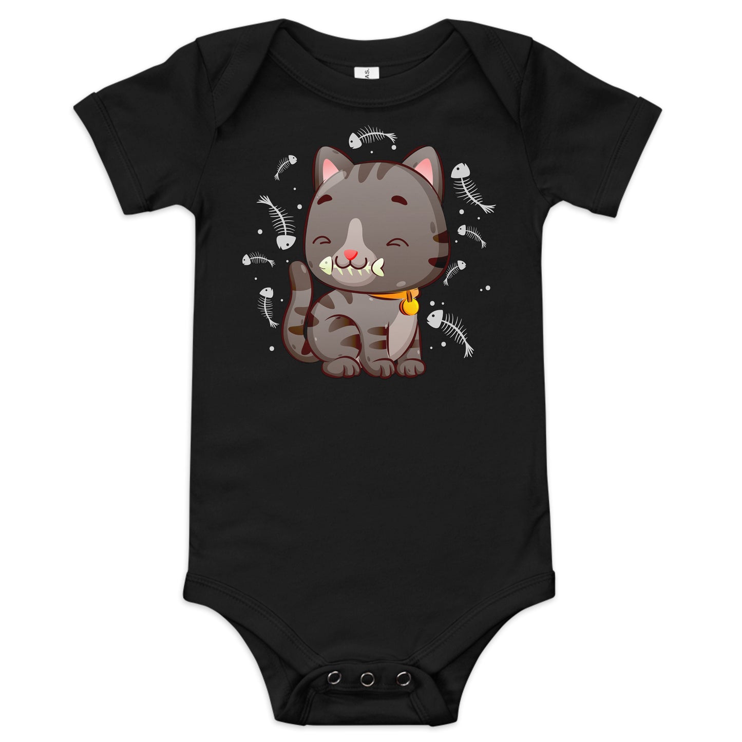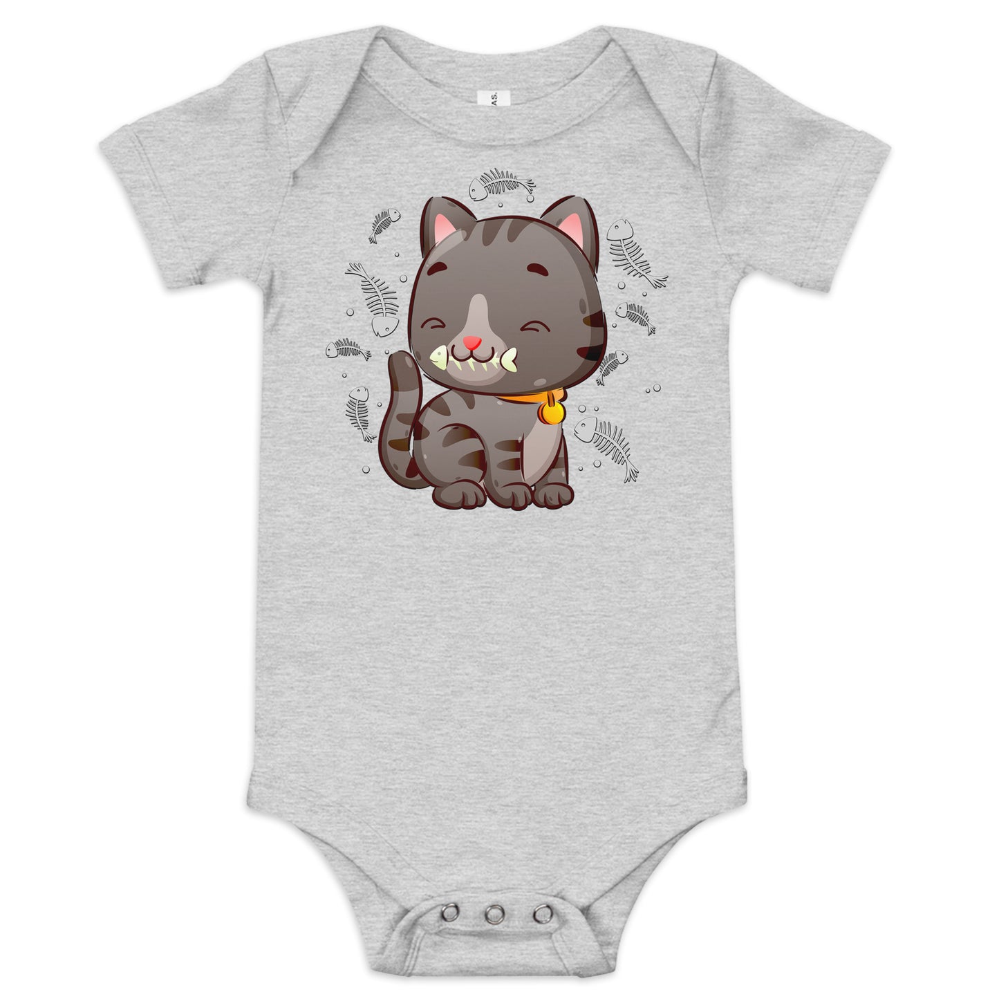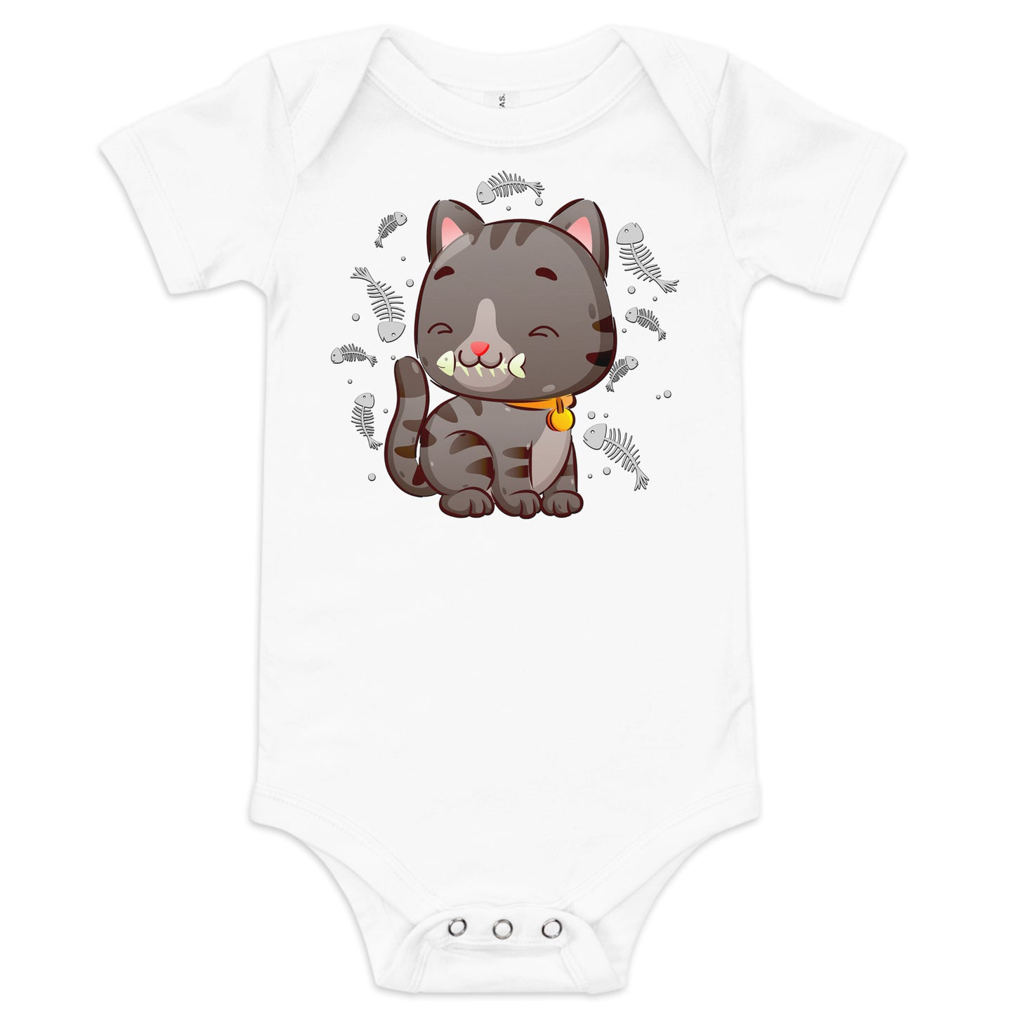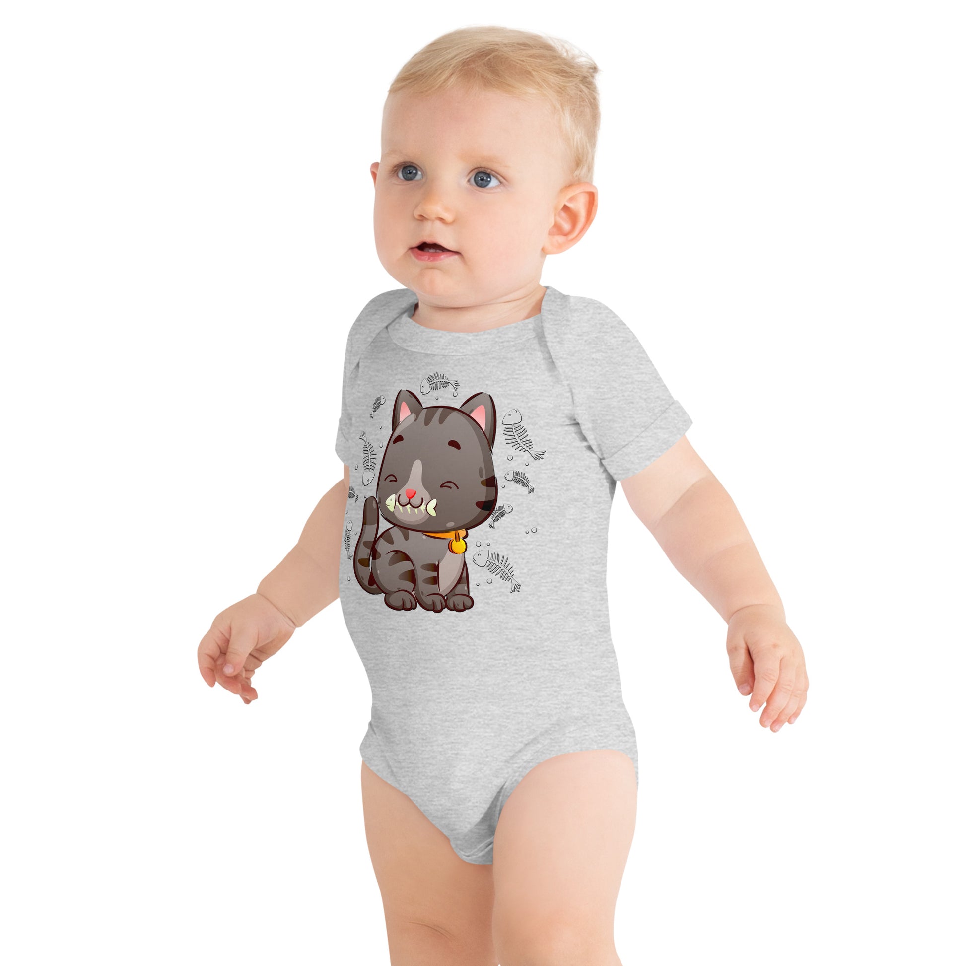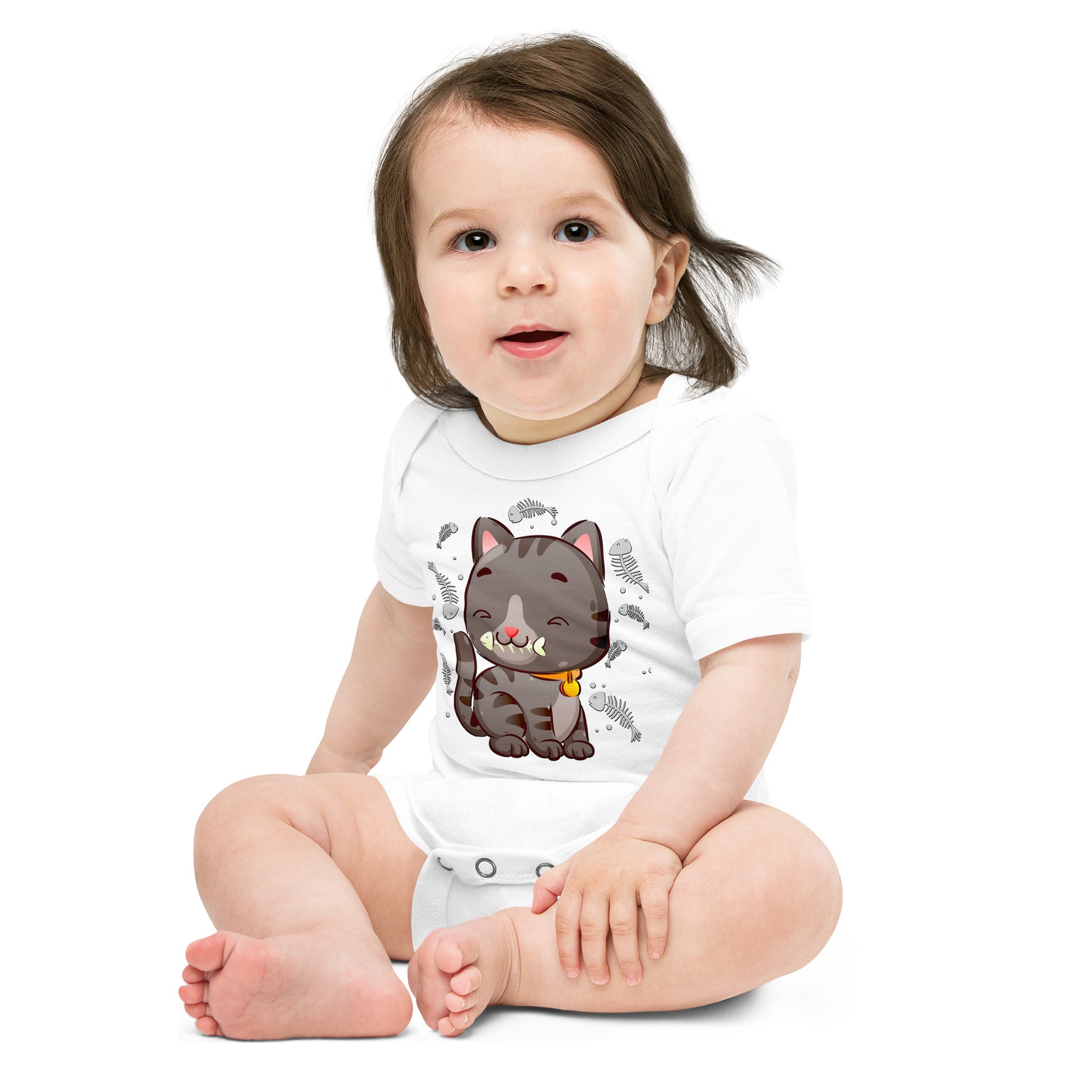 Cute Baby Cat Eating Fish Bone Bodysuit, No. 0138