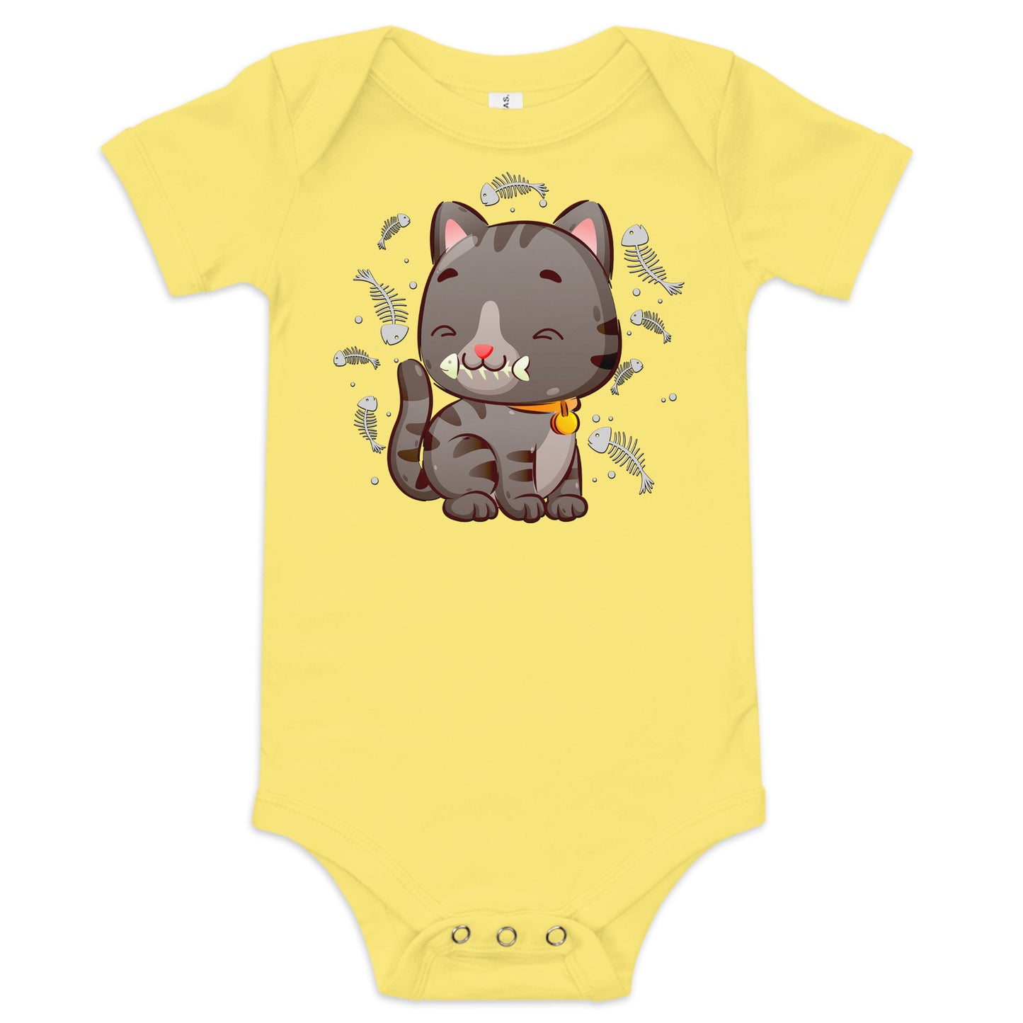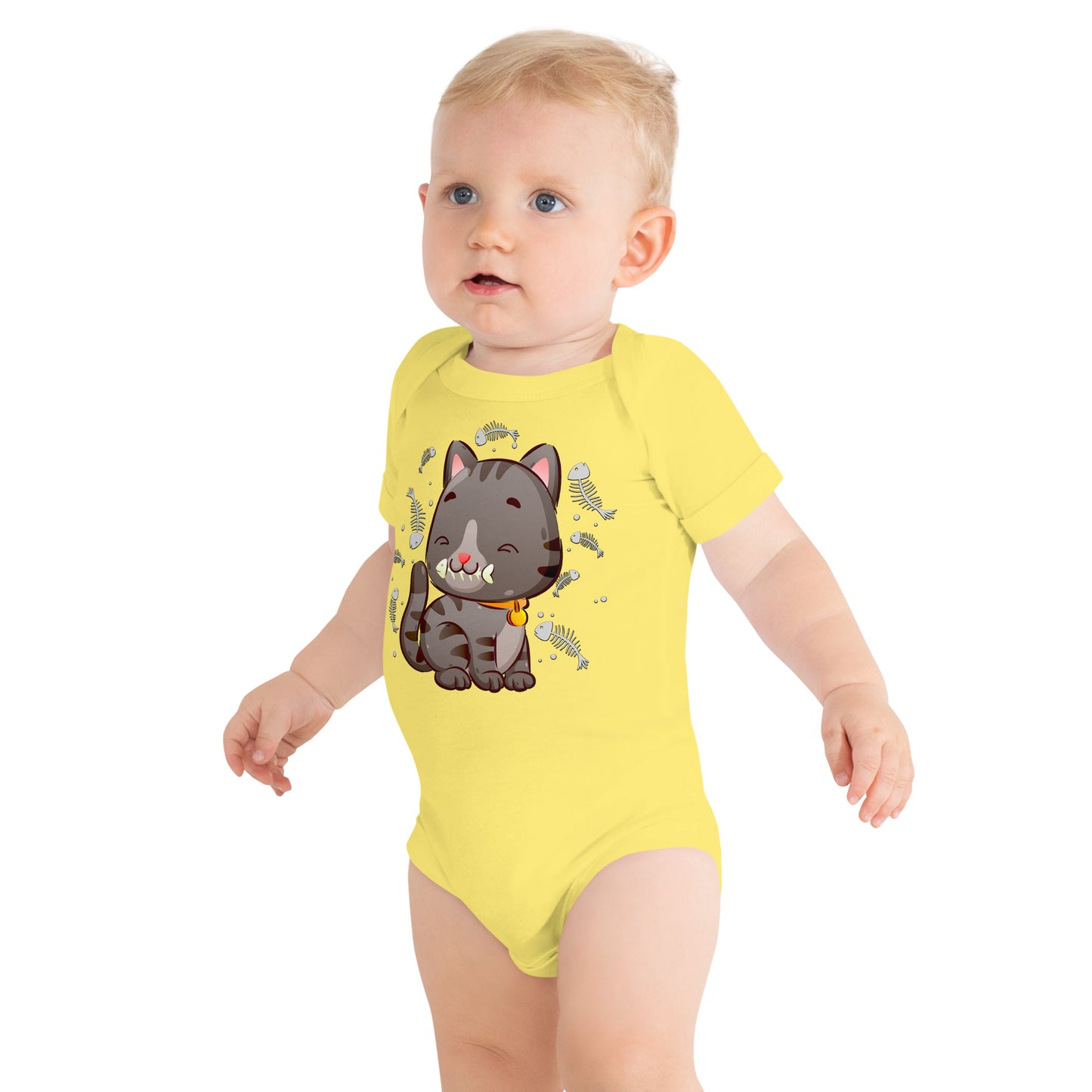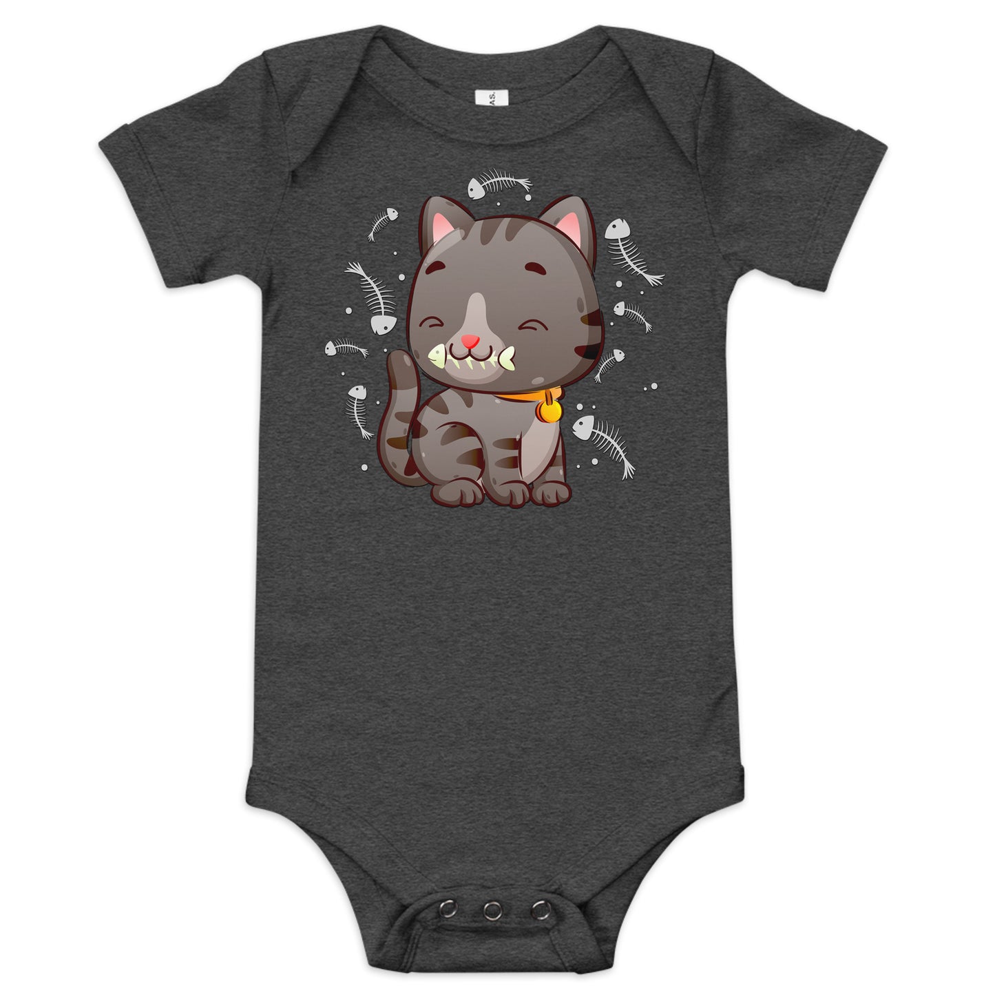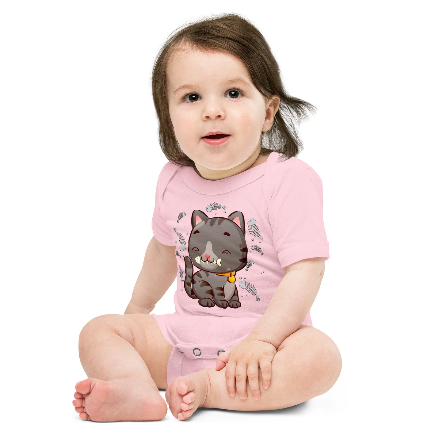 Cute Baby Cat Eating Fish Bone Bodysuit, No. 0138