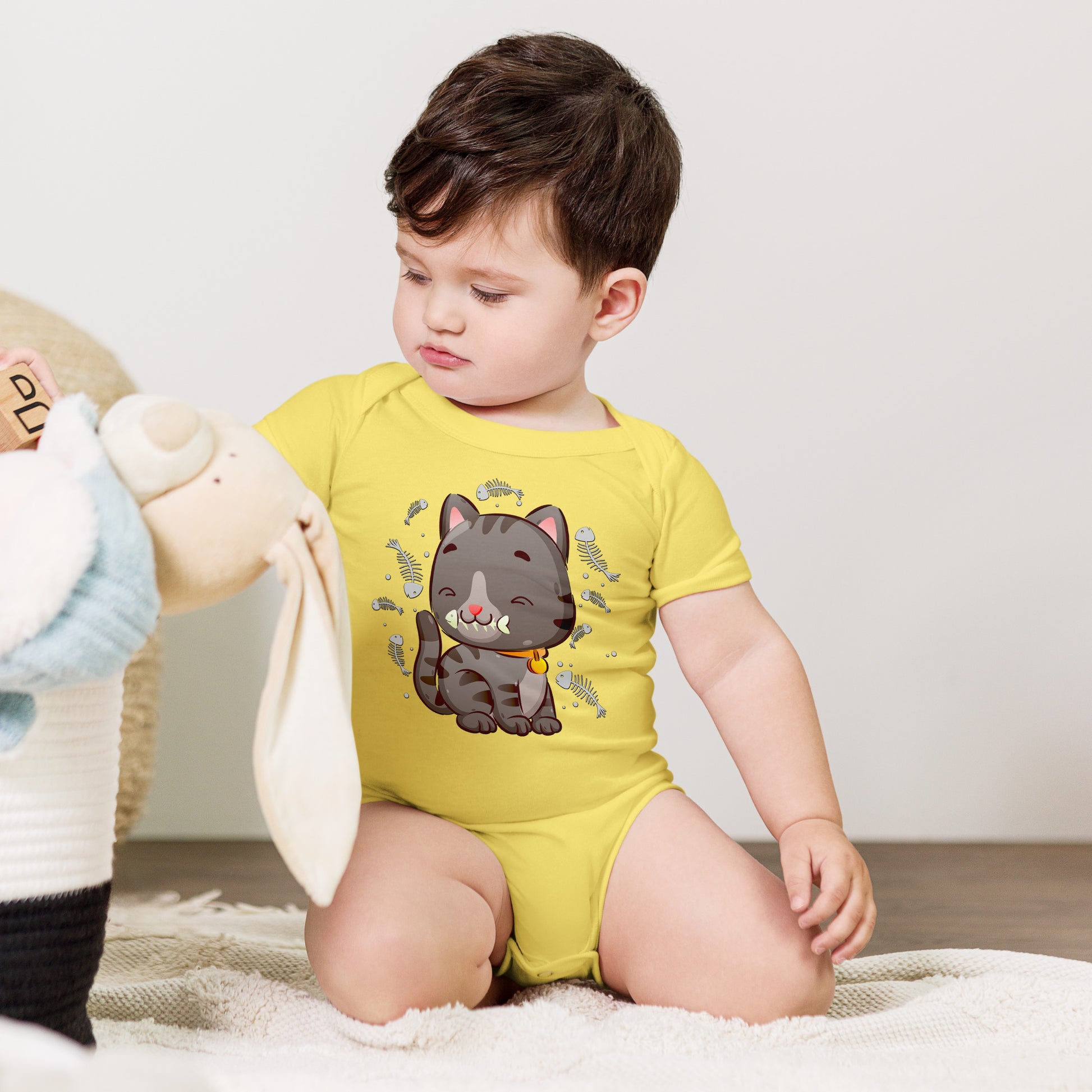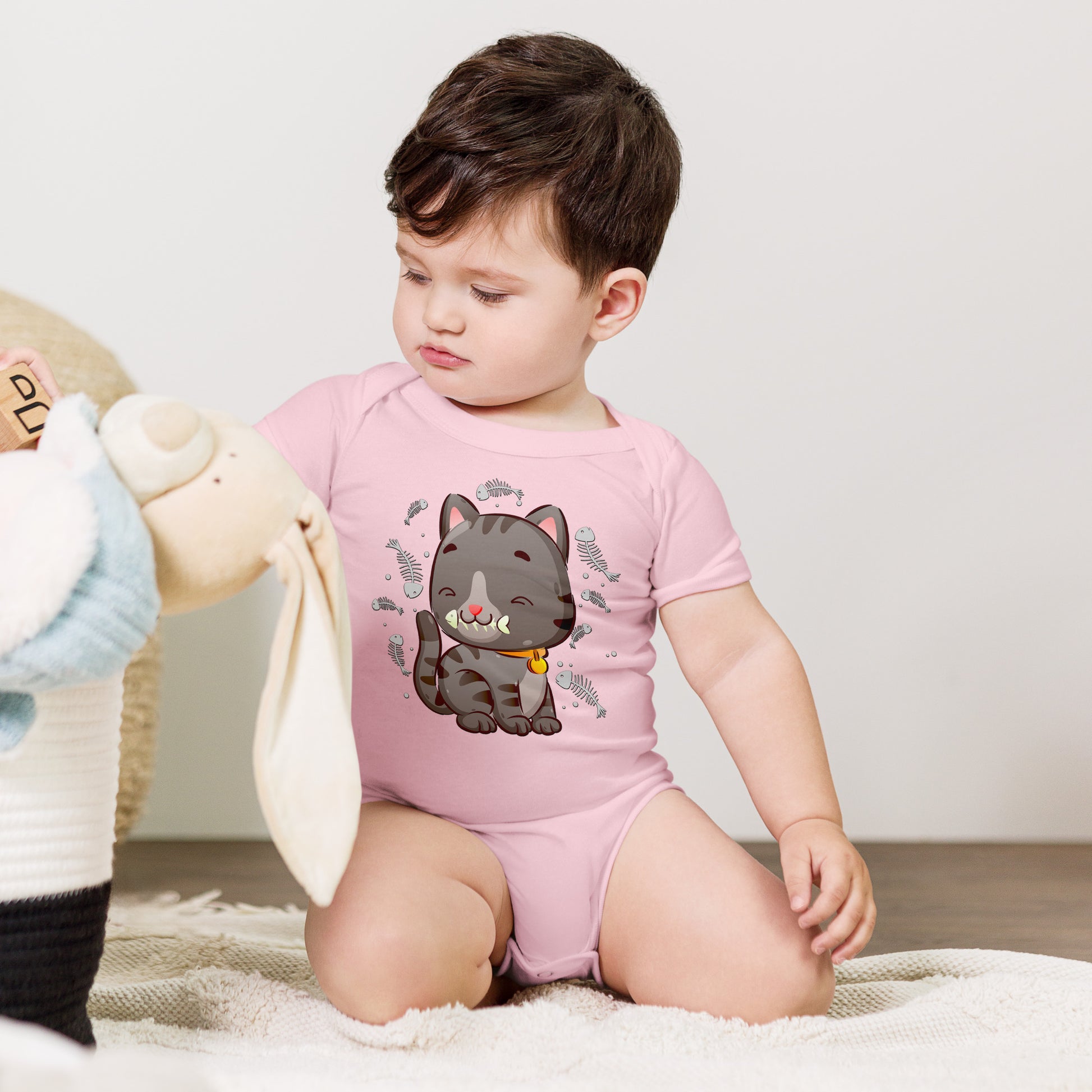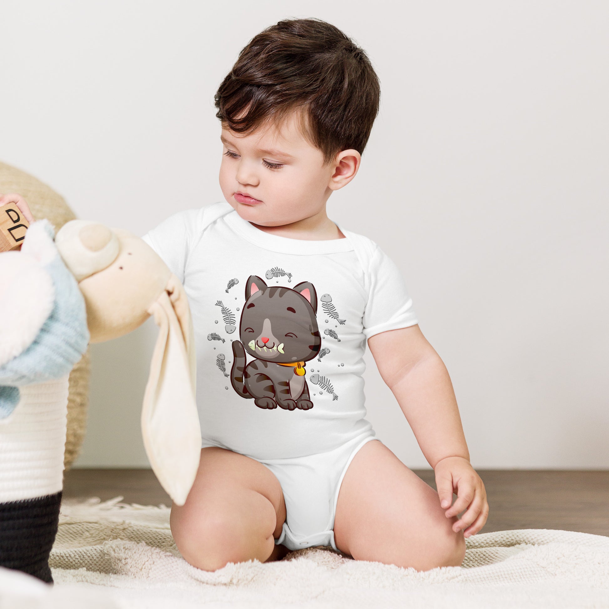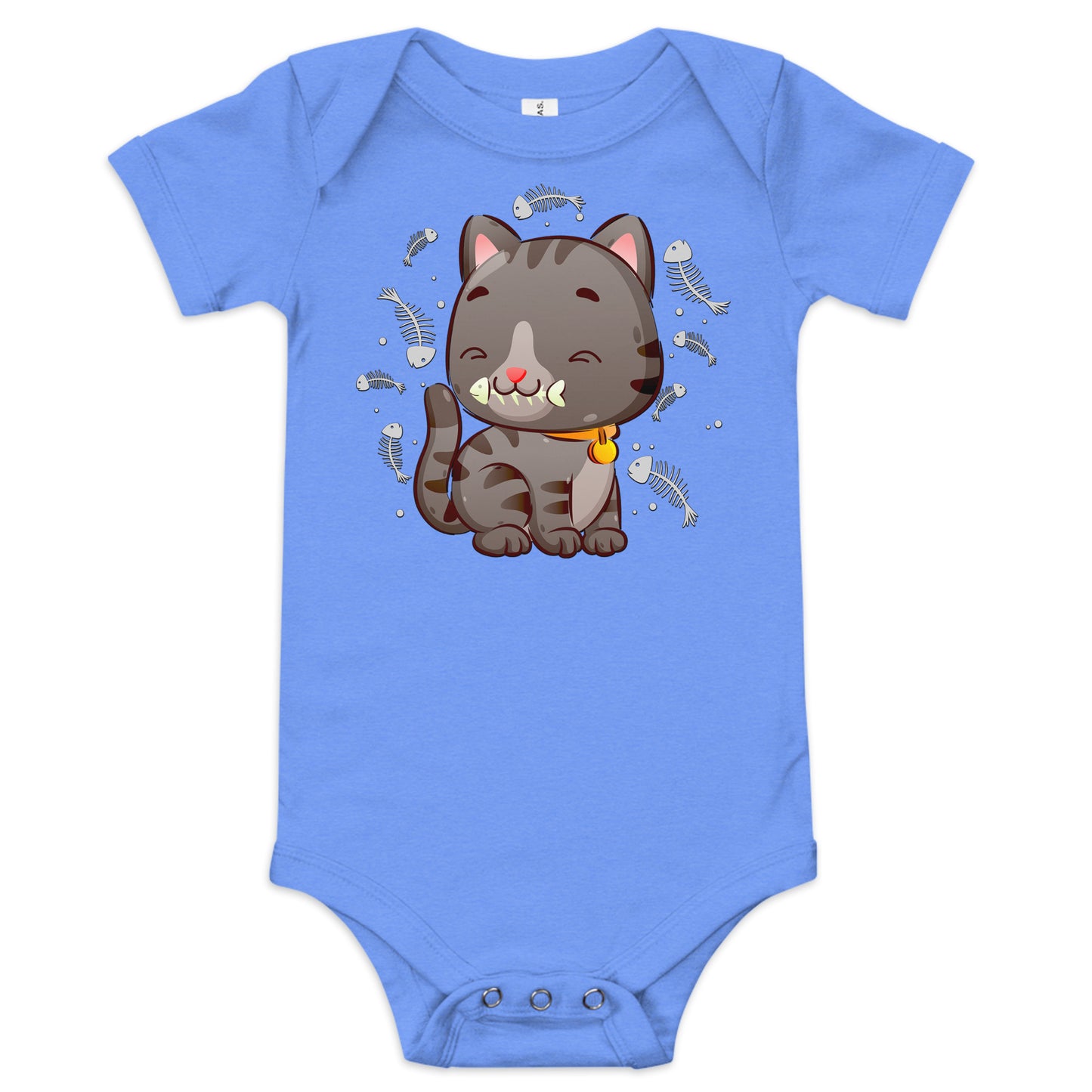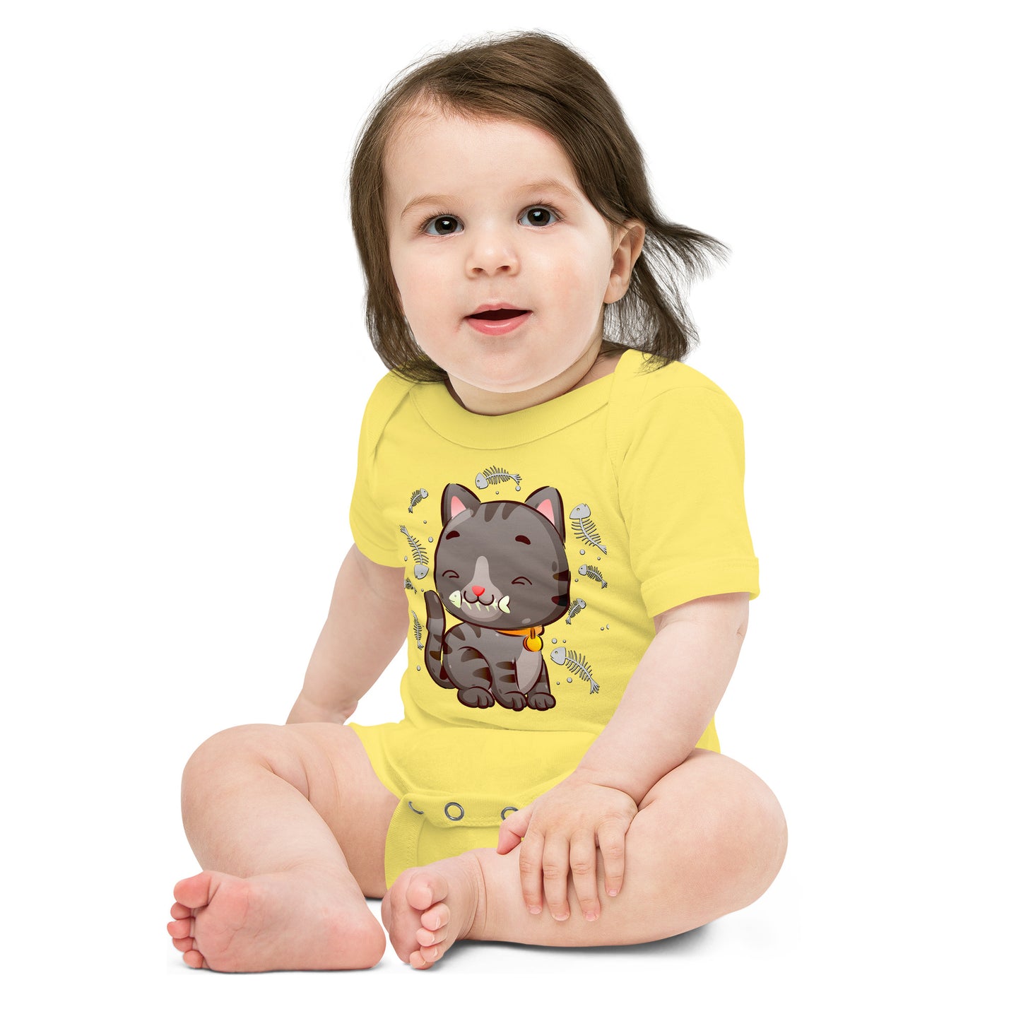 Cute Baby Cat Eating Fish Bone Bodysuit, No. 0138