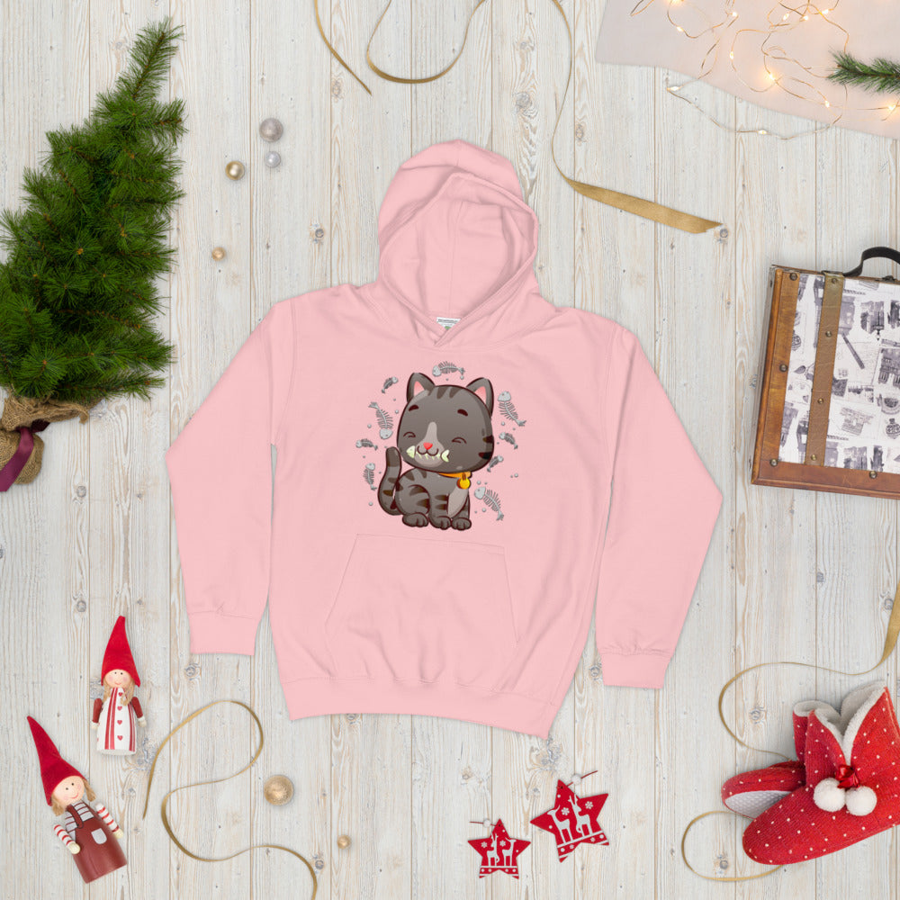 Cute Baby Cat Eating Fish Bone, Hoodies, No. 0138