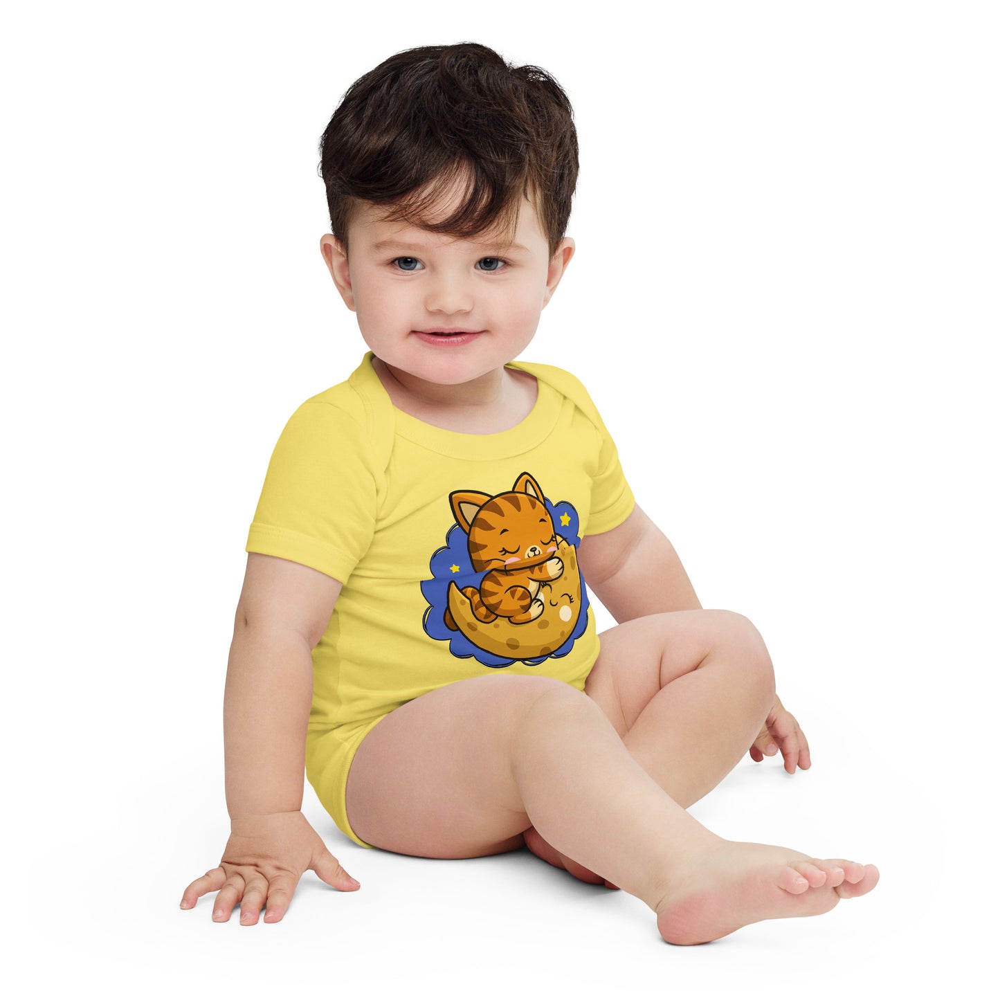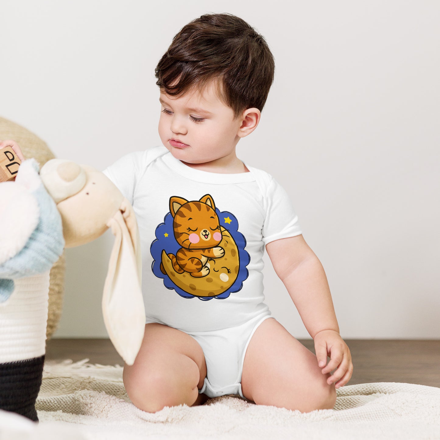 Cute Baby Cat Sleeping on the Moon Bodysuit, No. 0272