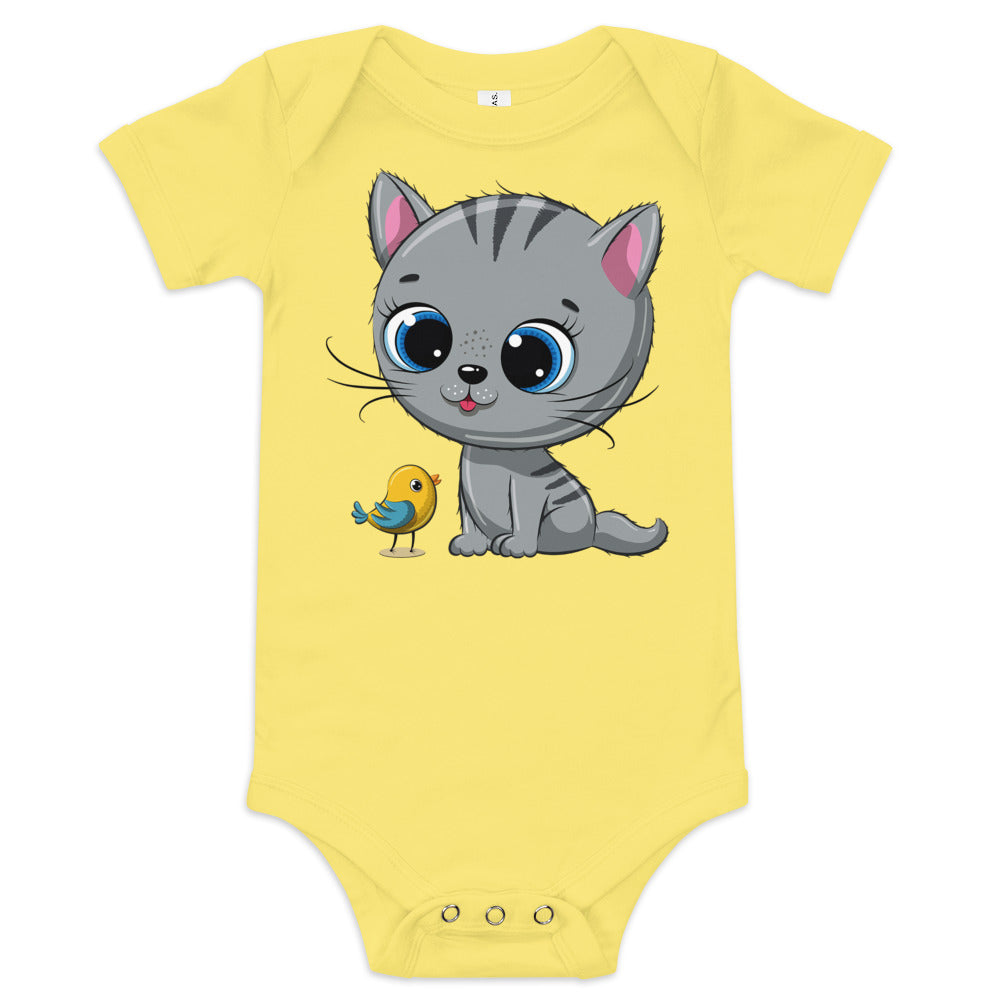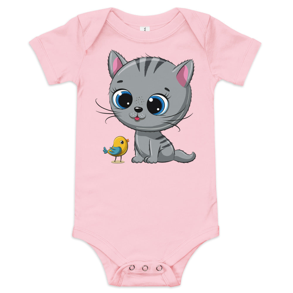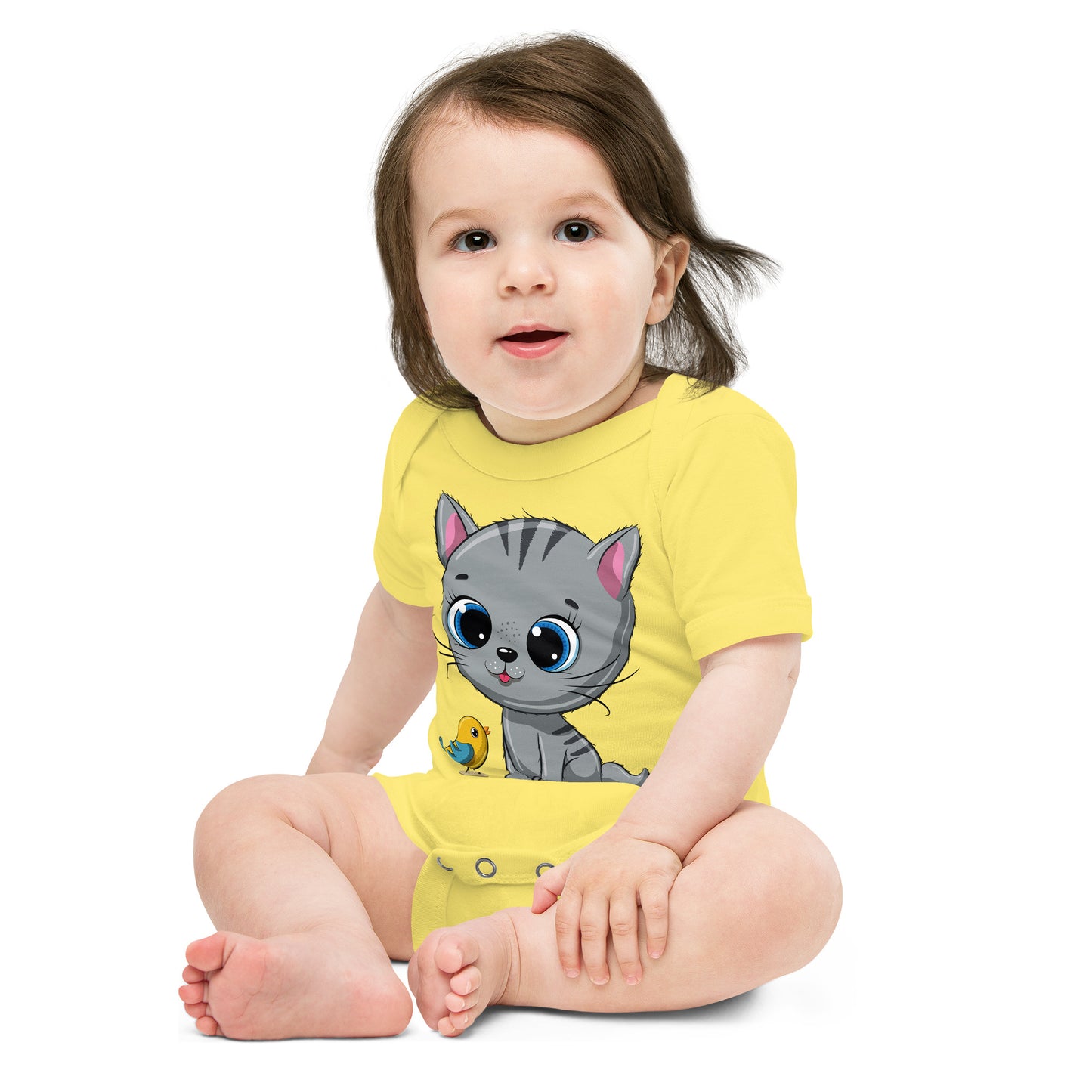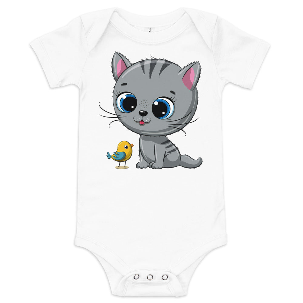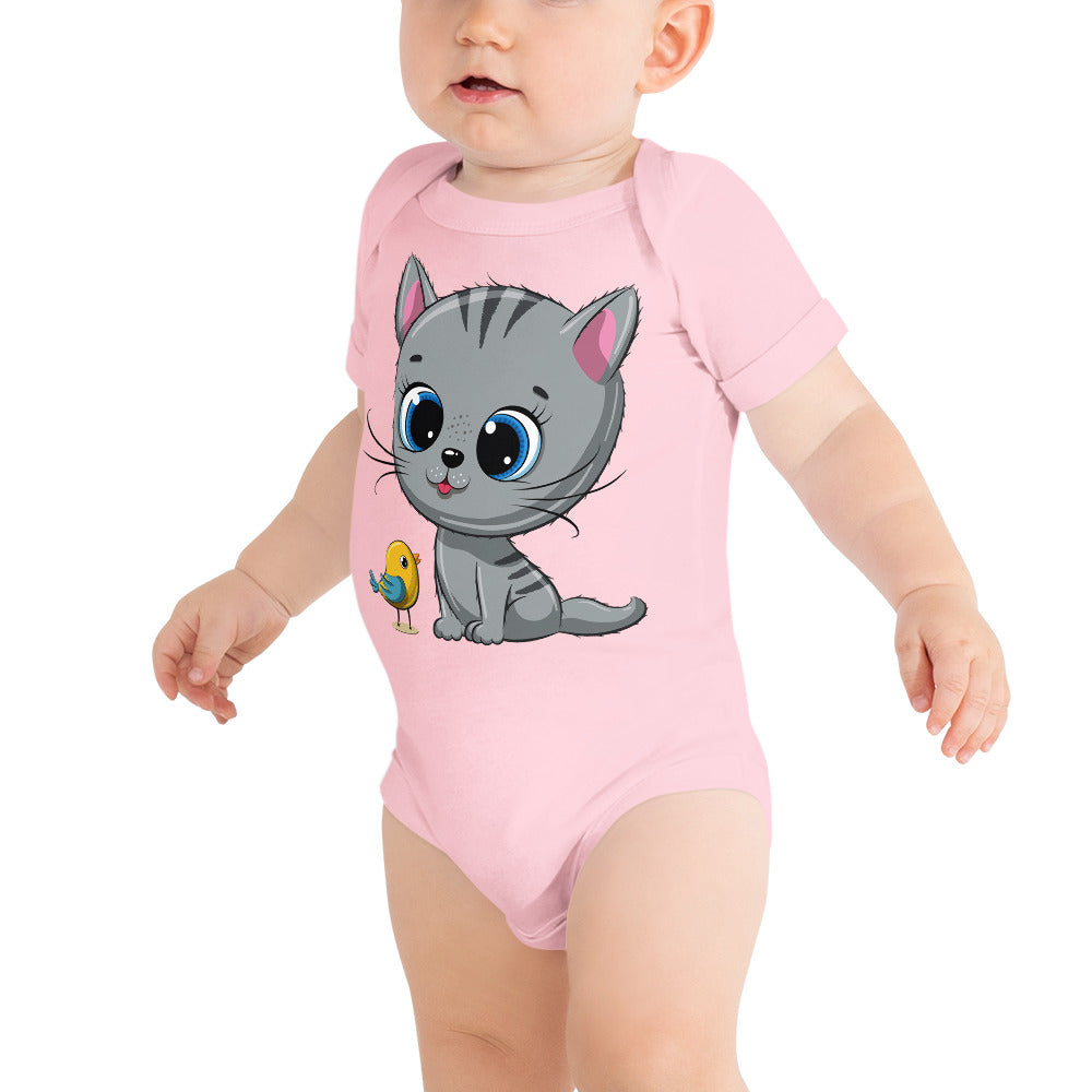 Cute Baby Cat with Bird Bodysuit, No. 0139