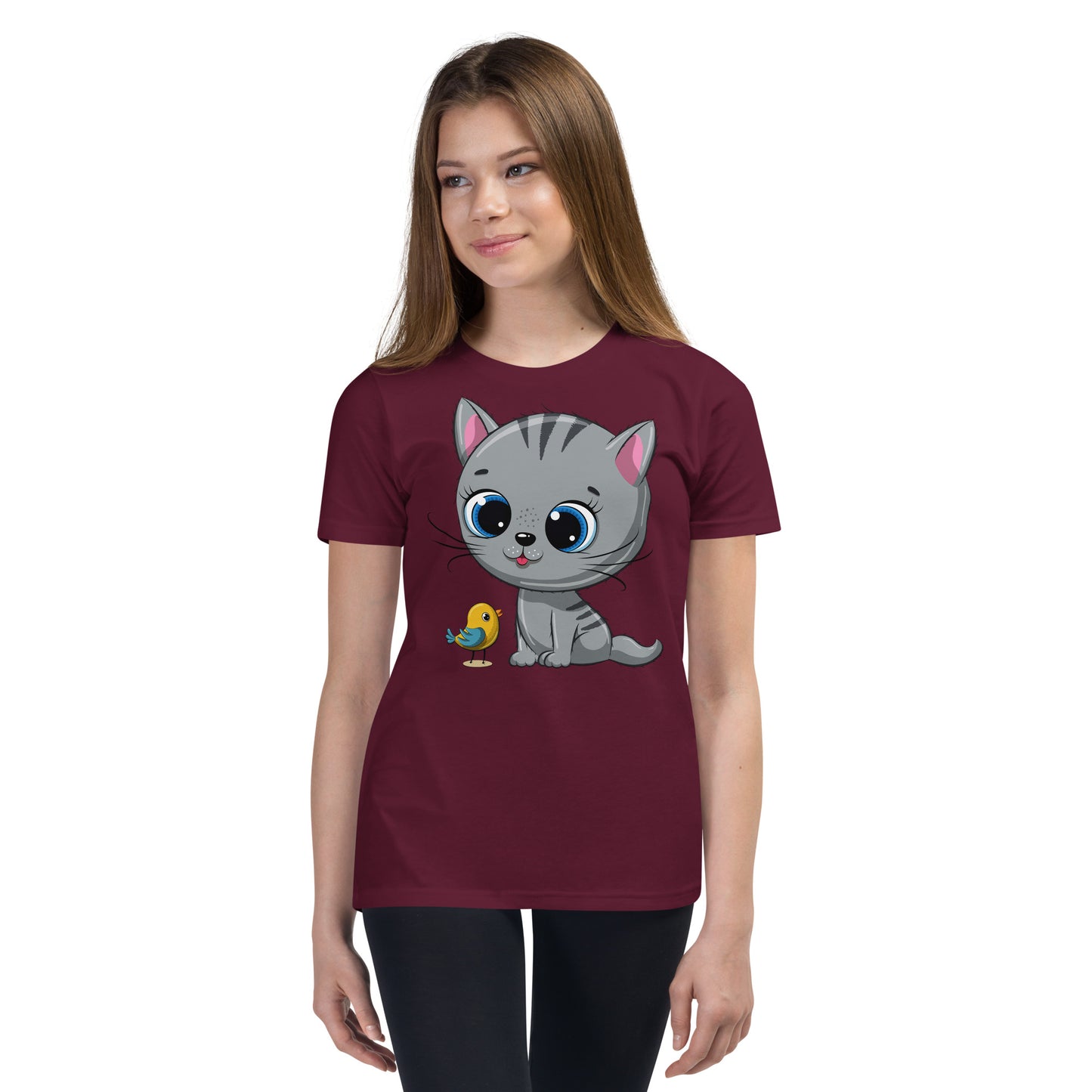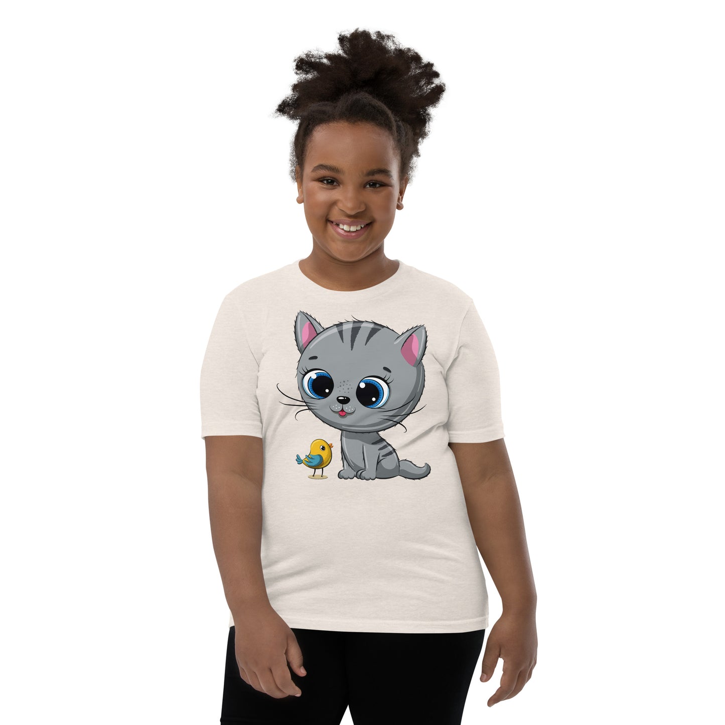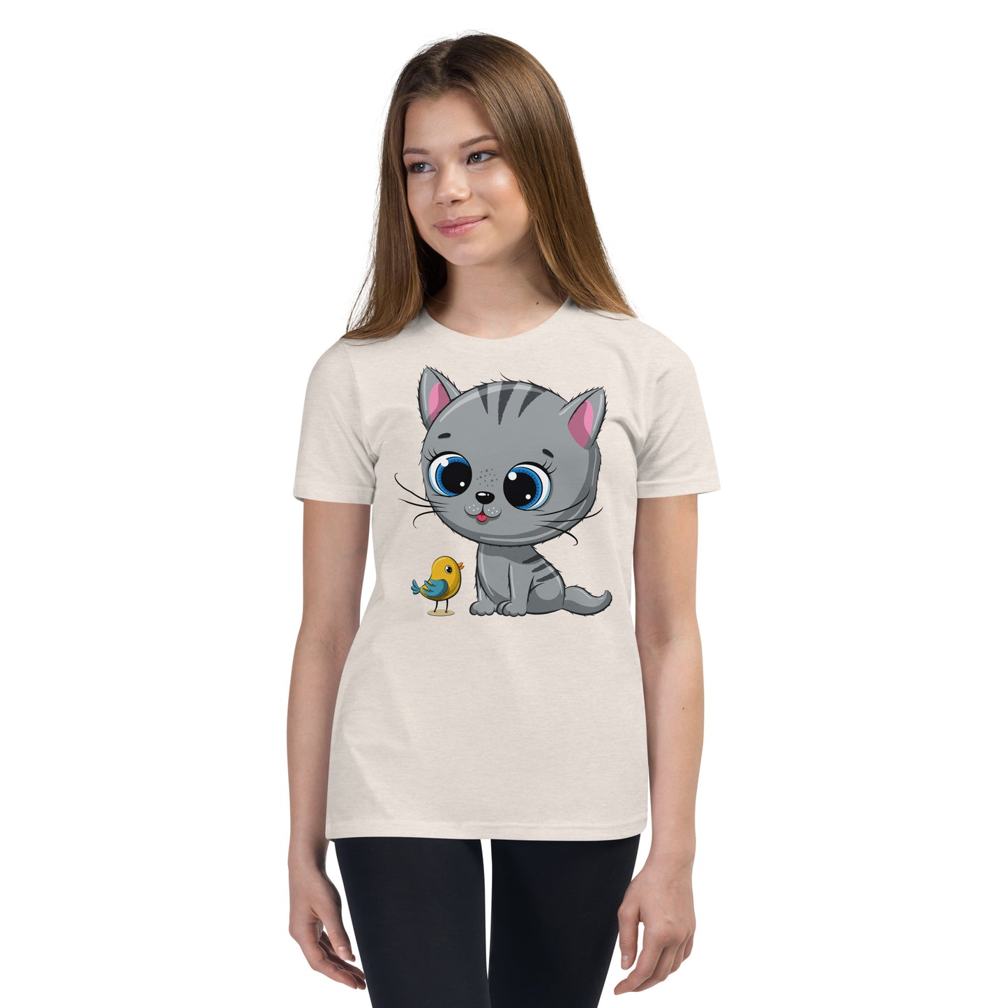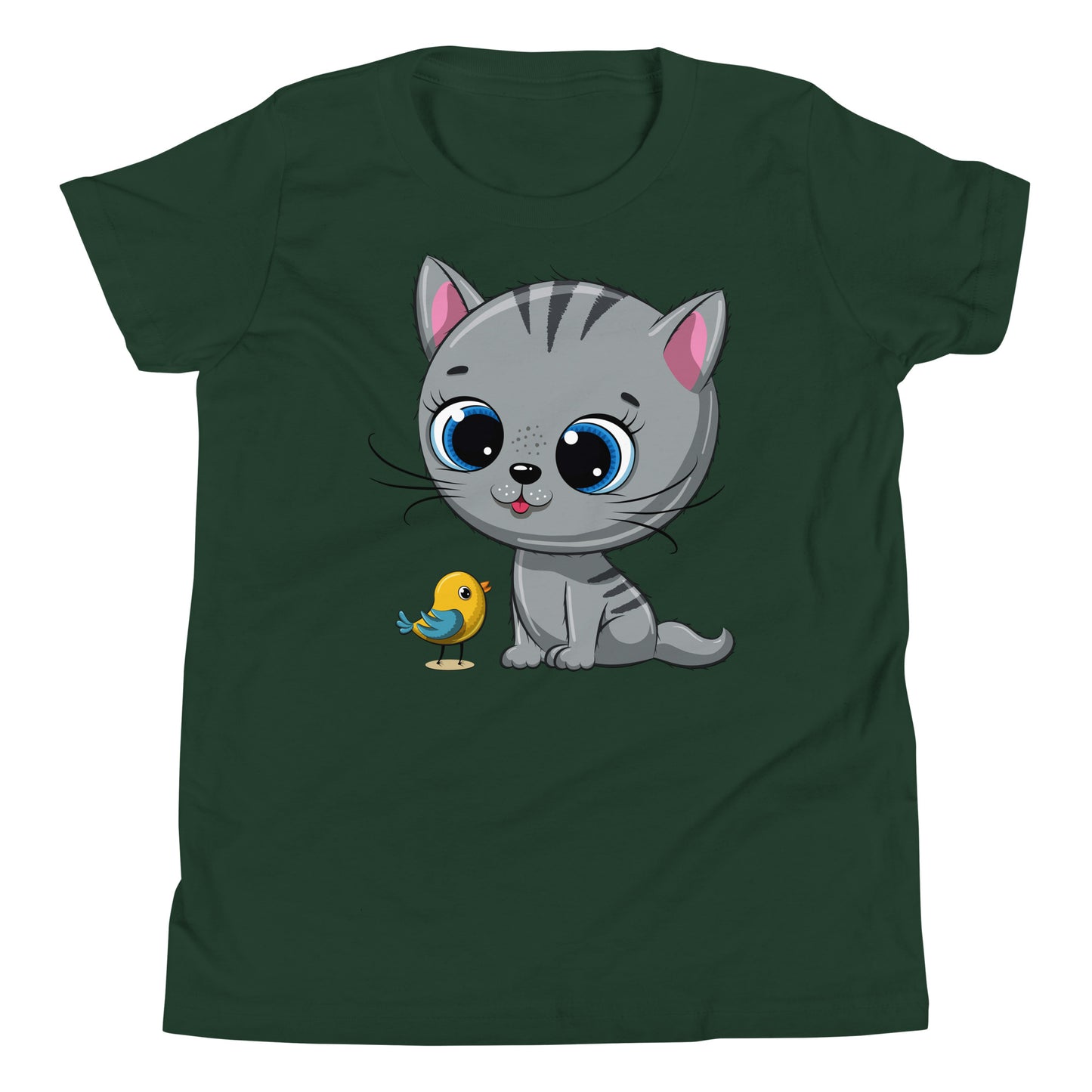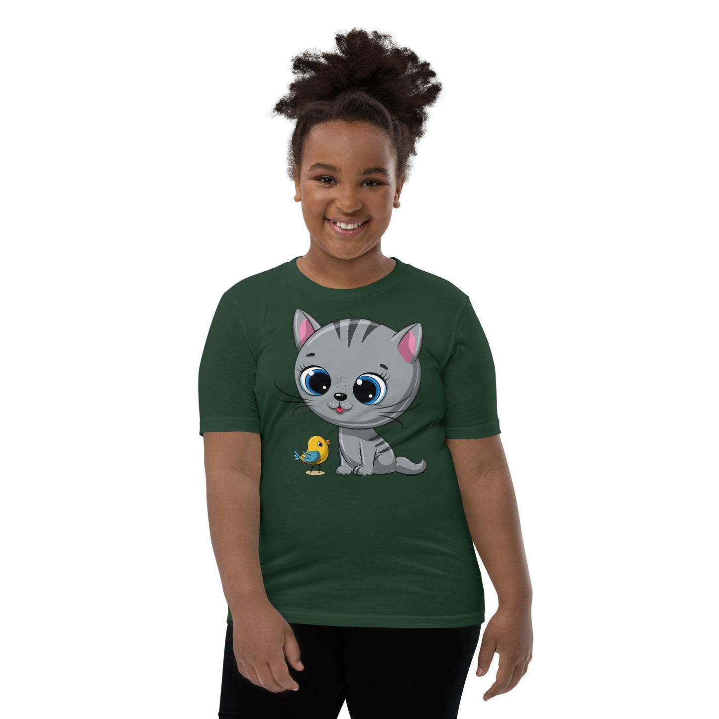 Cute Baby Cat with Bird T-Shirt, No. 0139