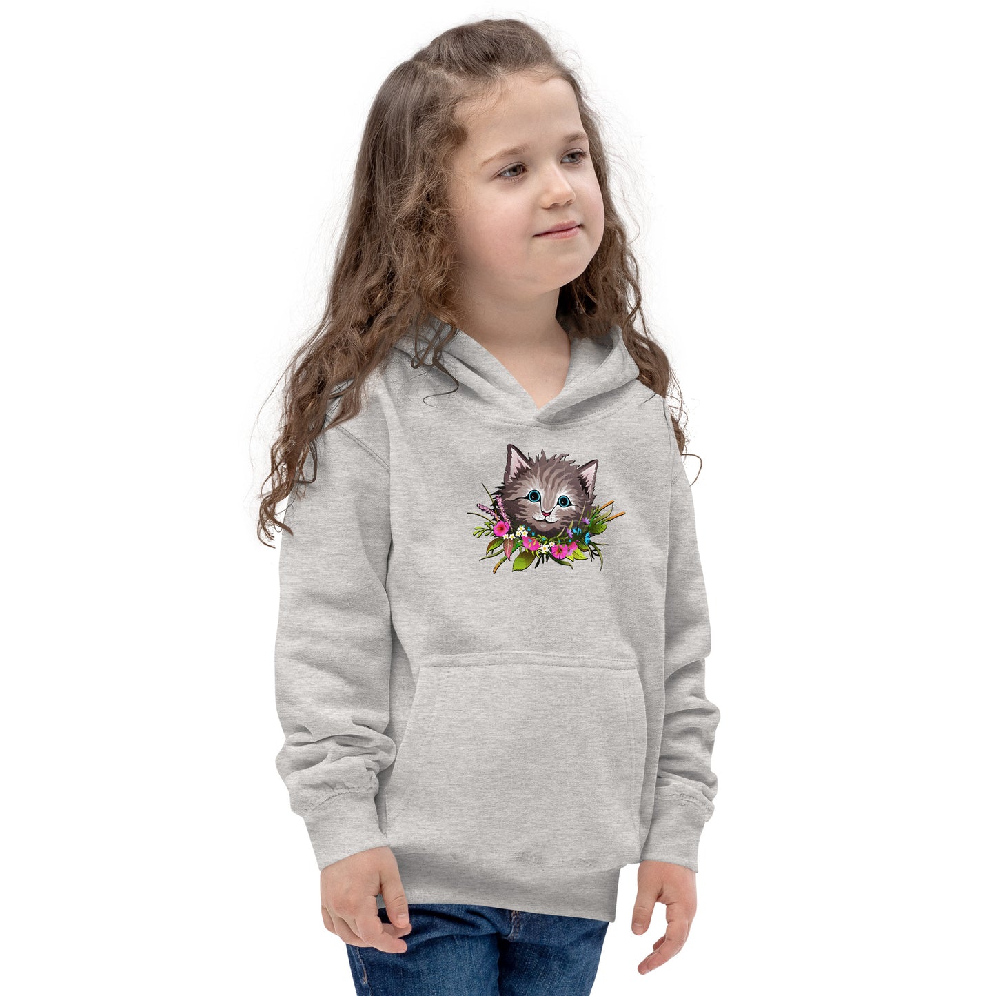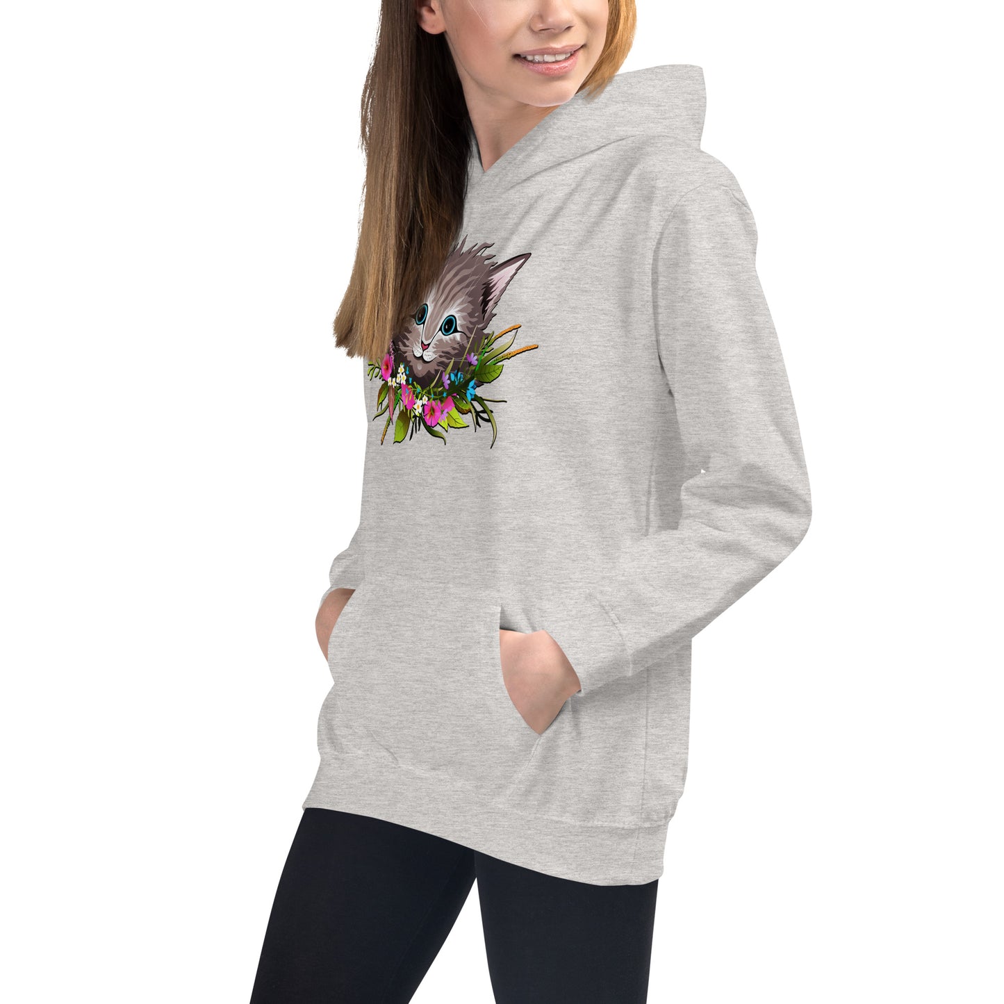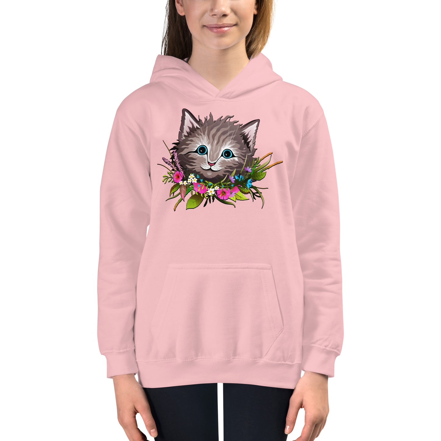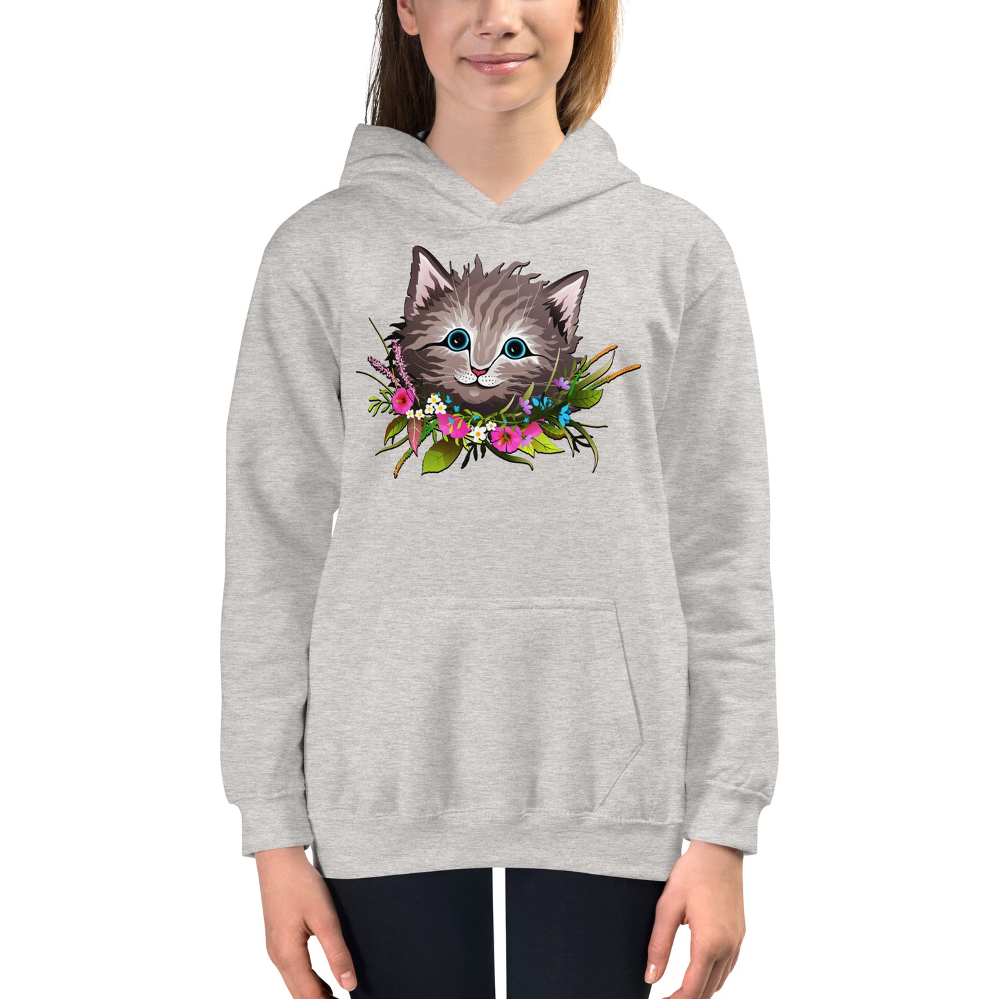 Cute Cat Face with Flowers Wreath Around the Neck Hoodie, No. 0155