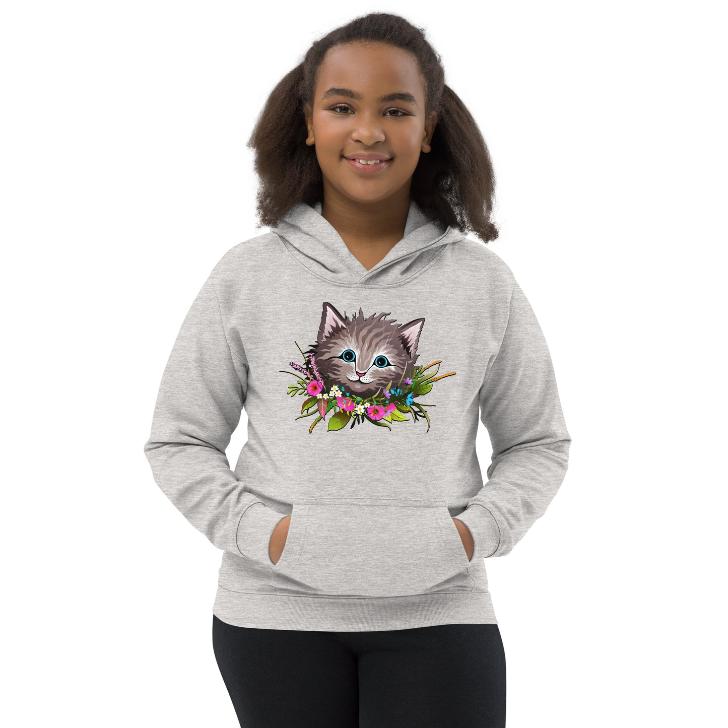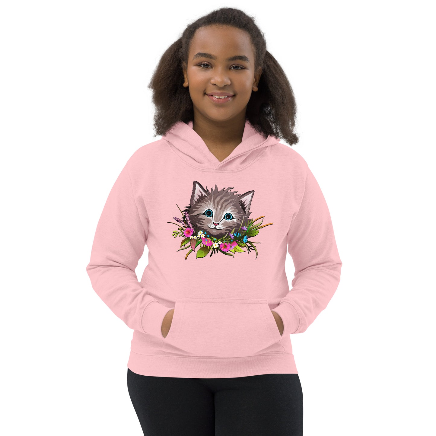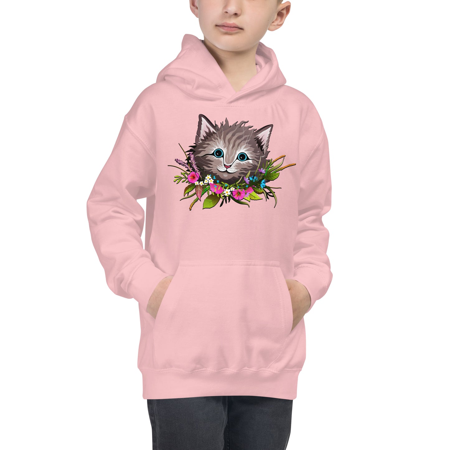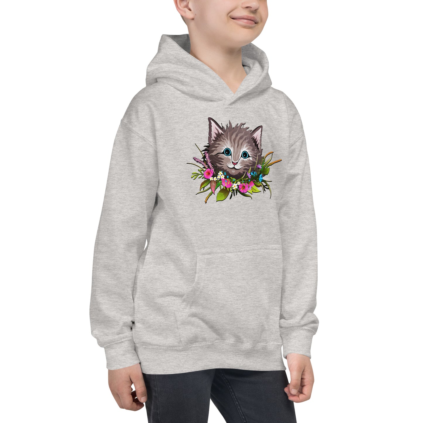 Cute Cat Face with Flowers Wreath Around the Neck Hoodie, No. 0155